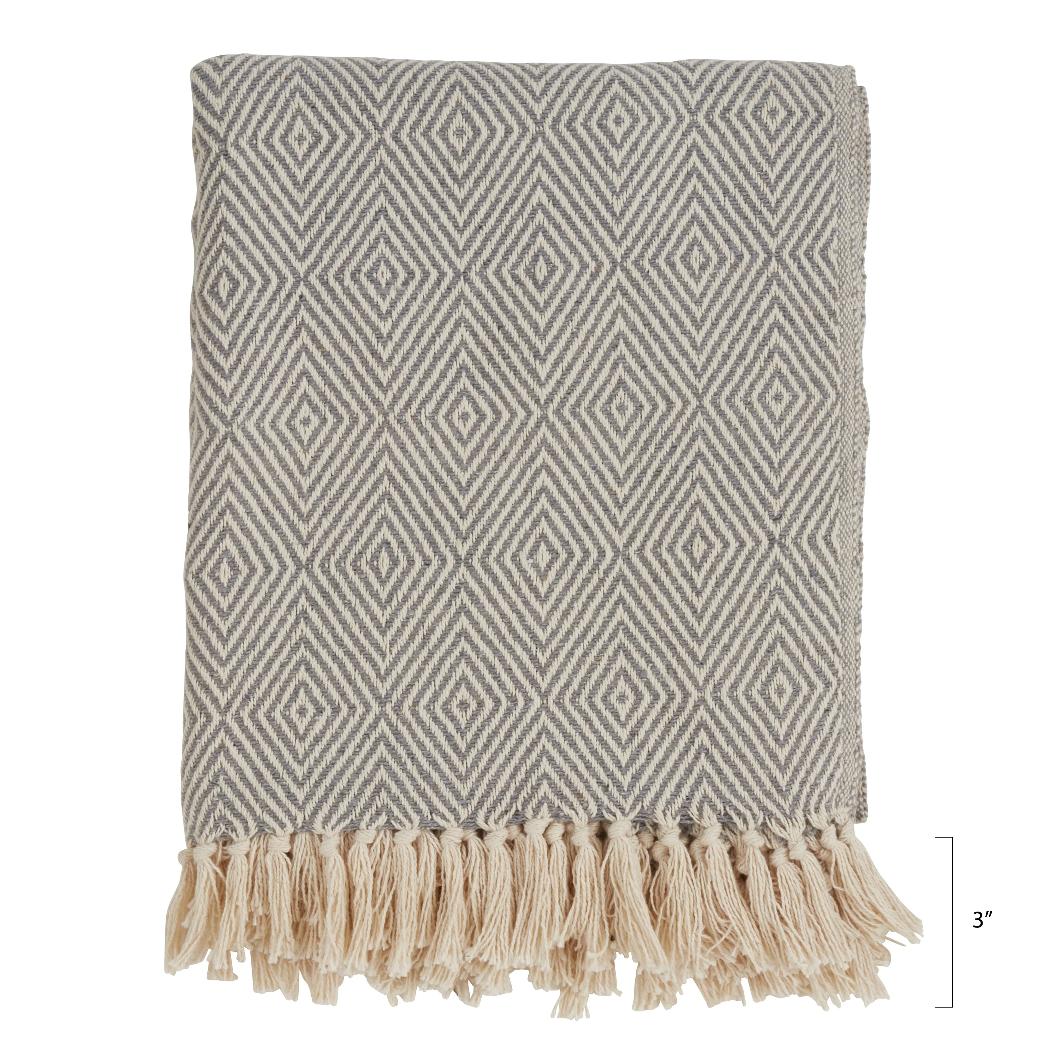 Get cozy with our versatile cotton throw blanket featuring a beautiful diamond weave design. Perfect for adding warmth and texture to any space, this blanket pairs well with wooden furniture for a rustic look or throw it over a sofa to create a cozy atmosphere. Made with 100% cotton and available in navy blue, red, grey, ivory, and pink.