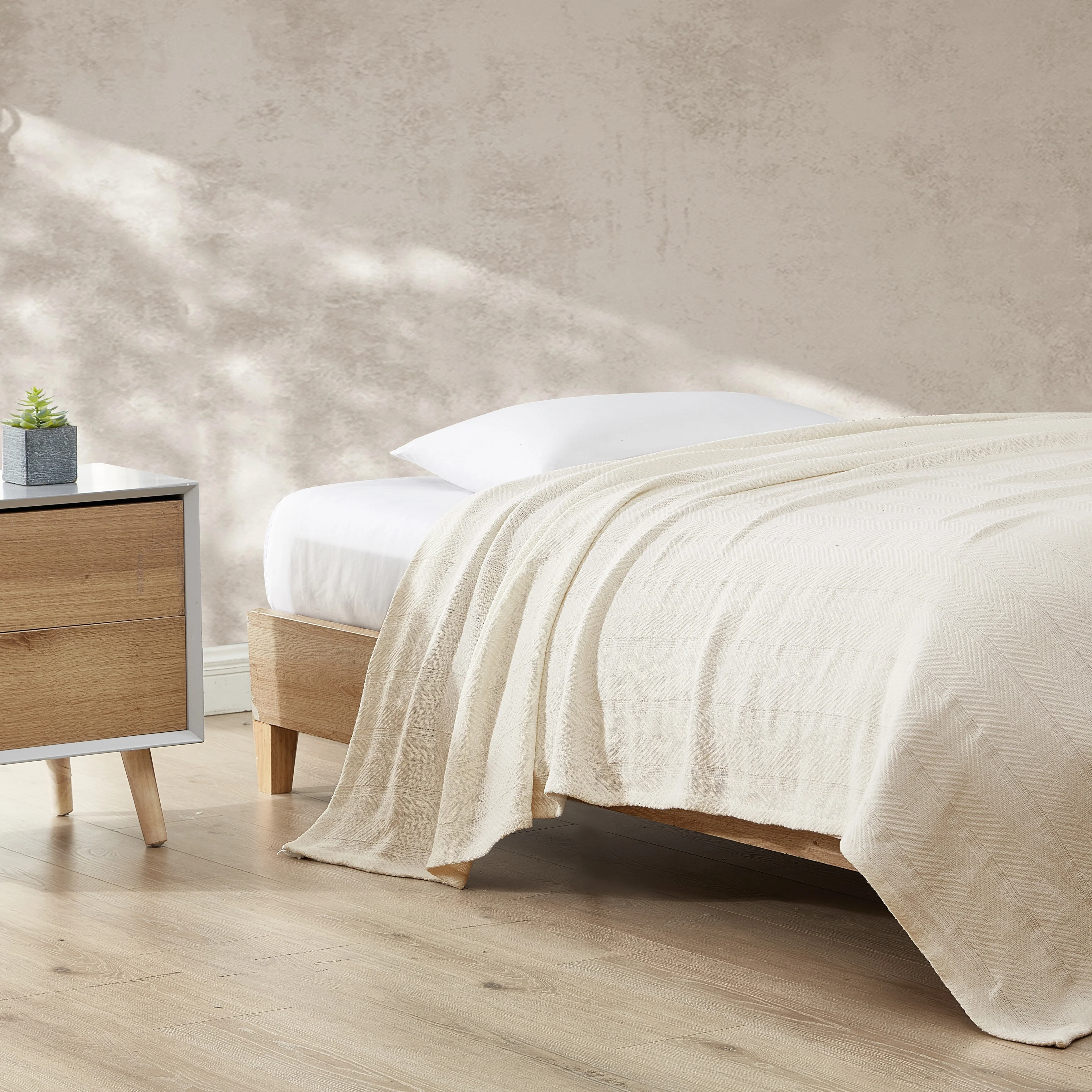 Eddie Bauer Cotton Herringbone Blankets are perfect to layer onto your bed or to snuggle up on the couch. 100% solid cotton blanket with a open end cotton weave in a north-south herringbone design. Blankets have a nice weight with a 325 GSM. Choose the color that best suits your home. Machine washable for easy care.