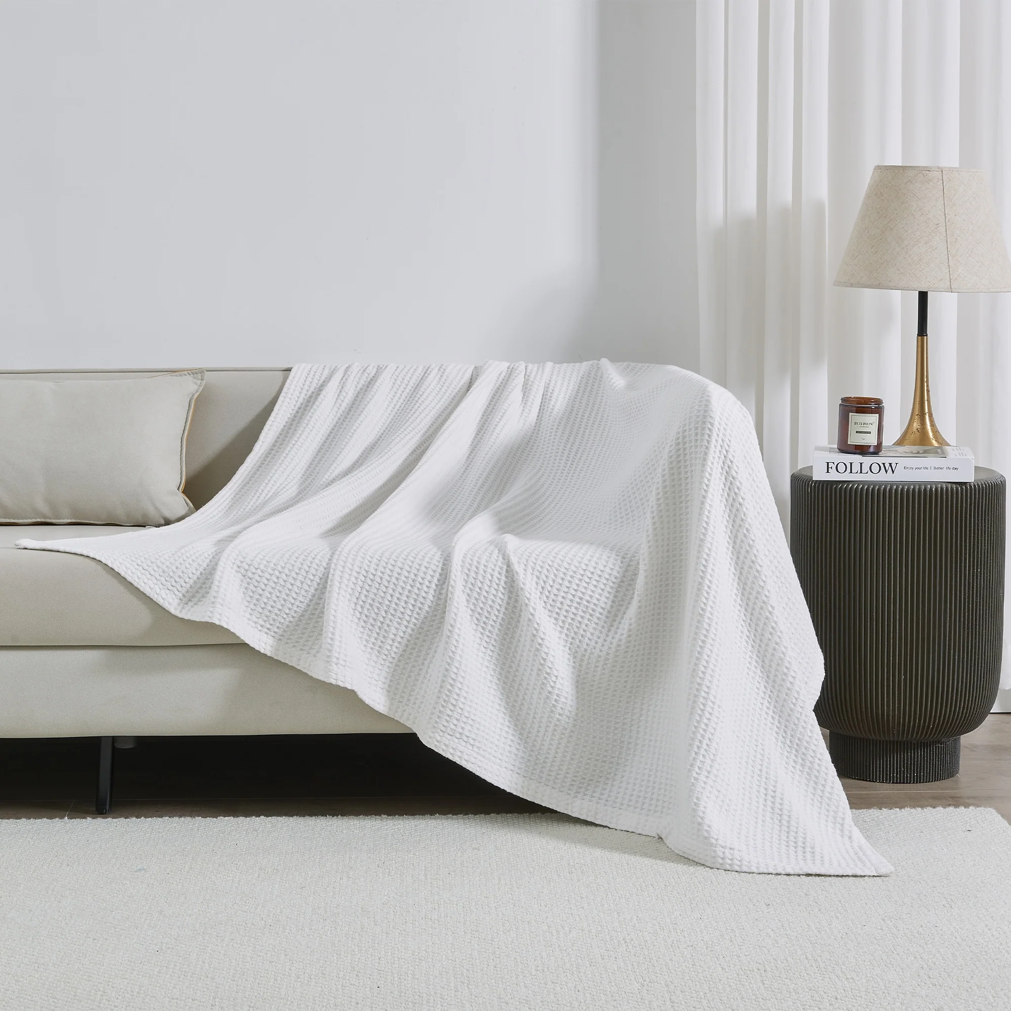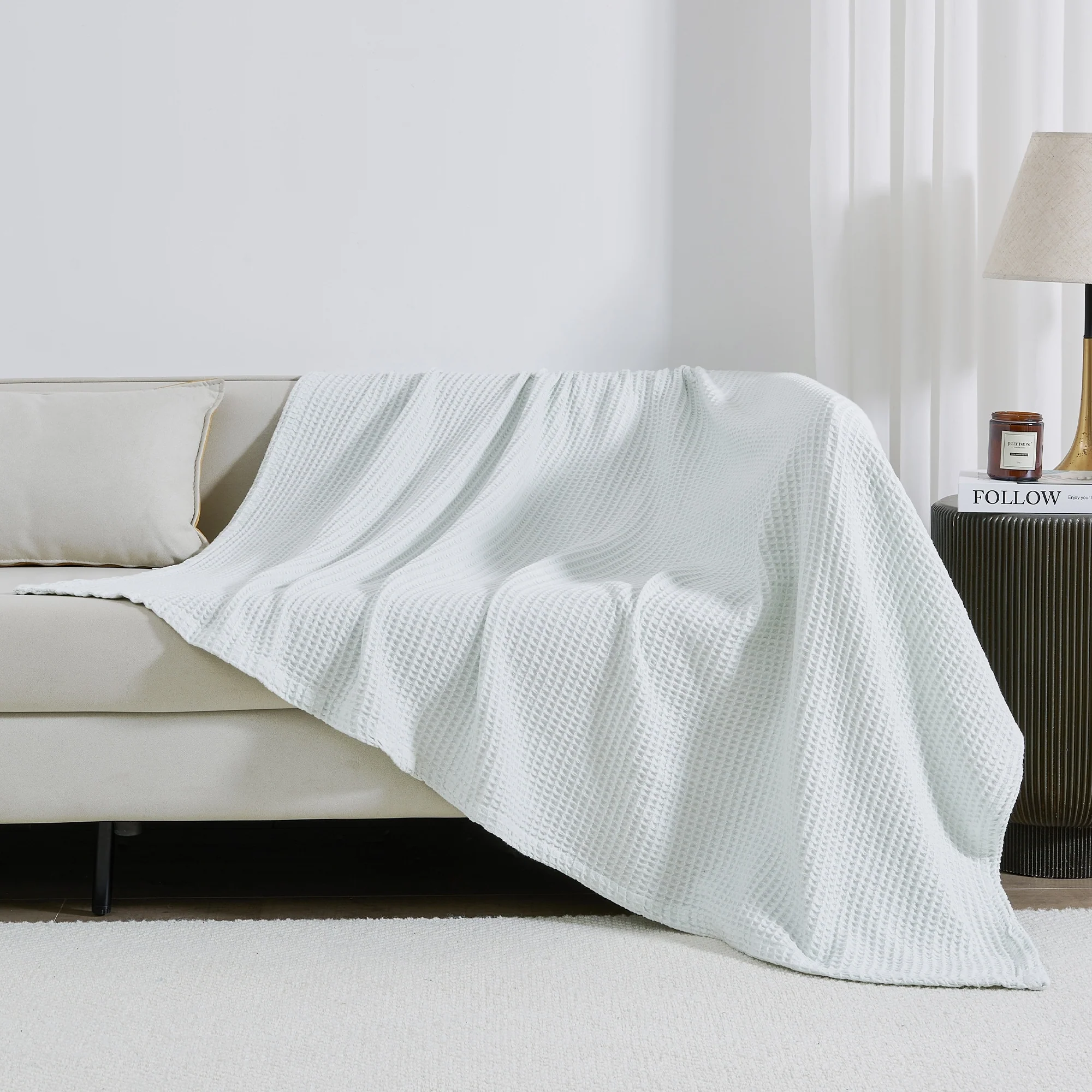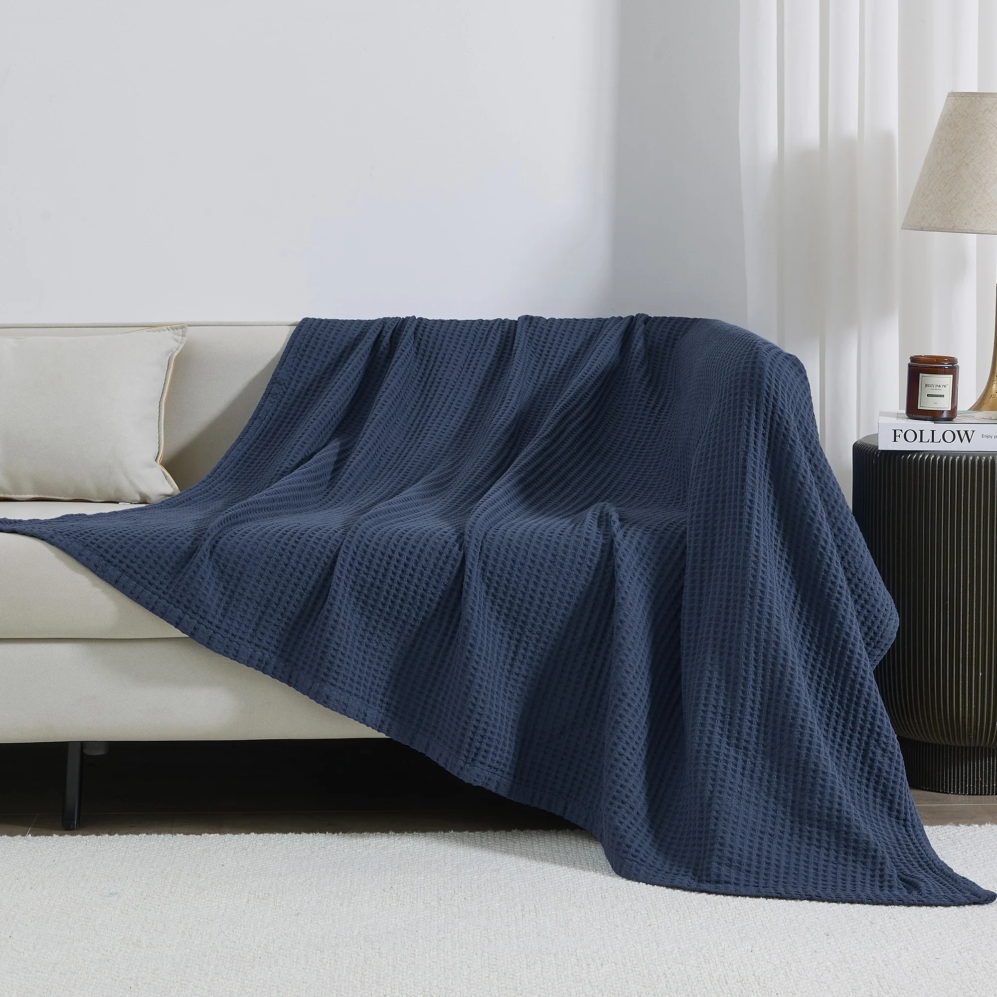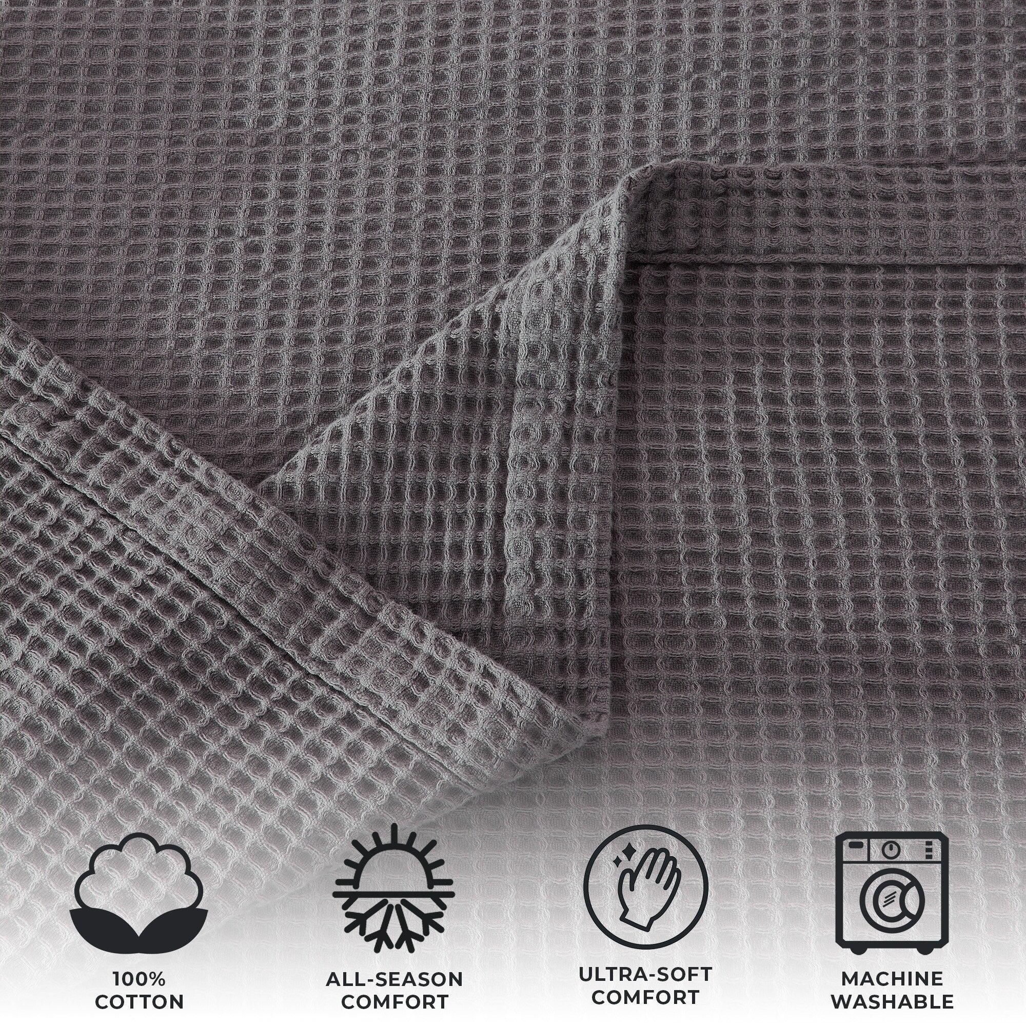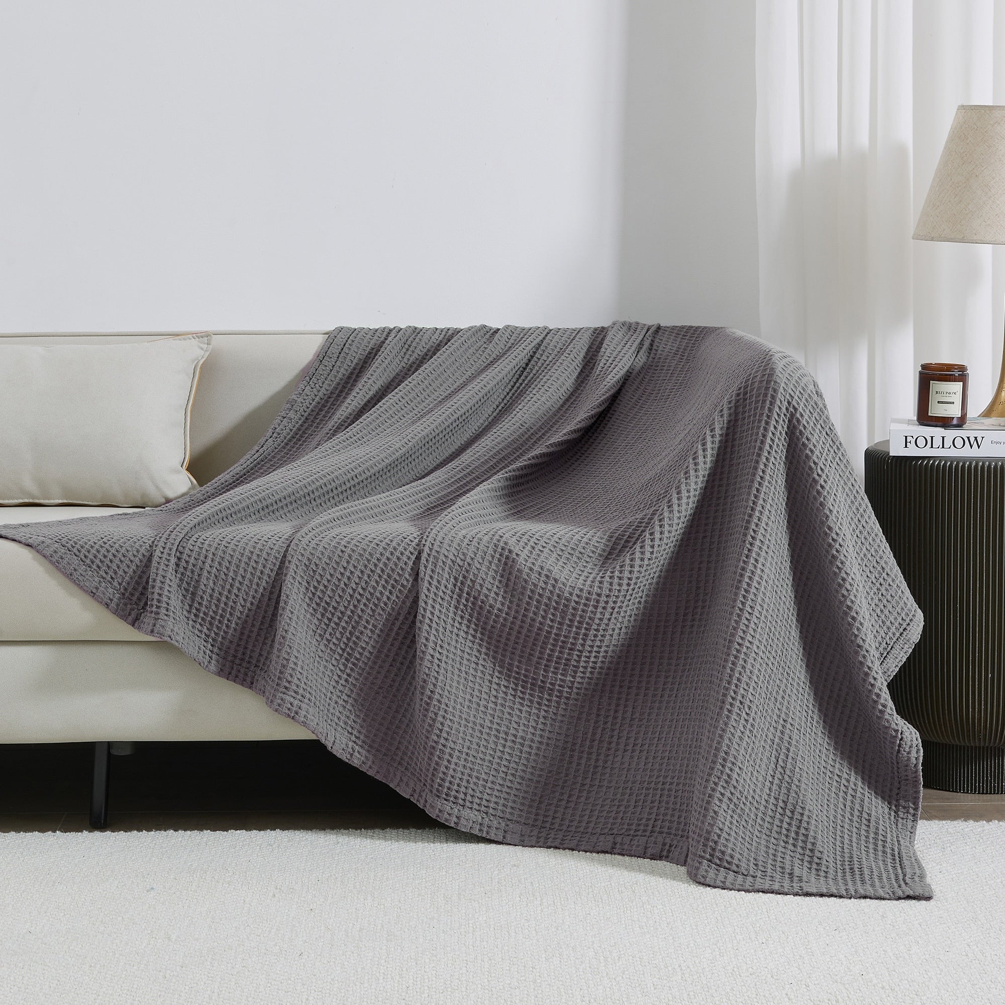 Add this blanket to your bed or couch and transform your versatile decor. This breathable waffle weave textures bed blanket is perfect for keeping you comfortable through every season. The modern color assortment will match your decor no matter the theme and will complement your style throughout every season. Use this cotton throw blanket for your couch or bed. Not only is this throw blanket versatile, but it's also easy to care for. This textured blanket is prewashed & preshrunk to enhance the cotton's softness and ensure the blanket stays the same size, even after washing.