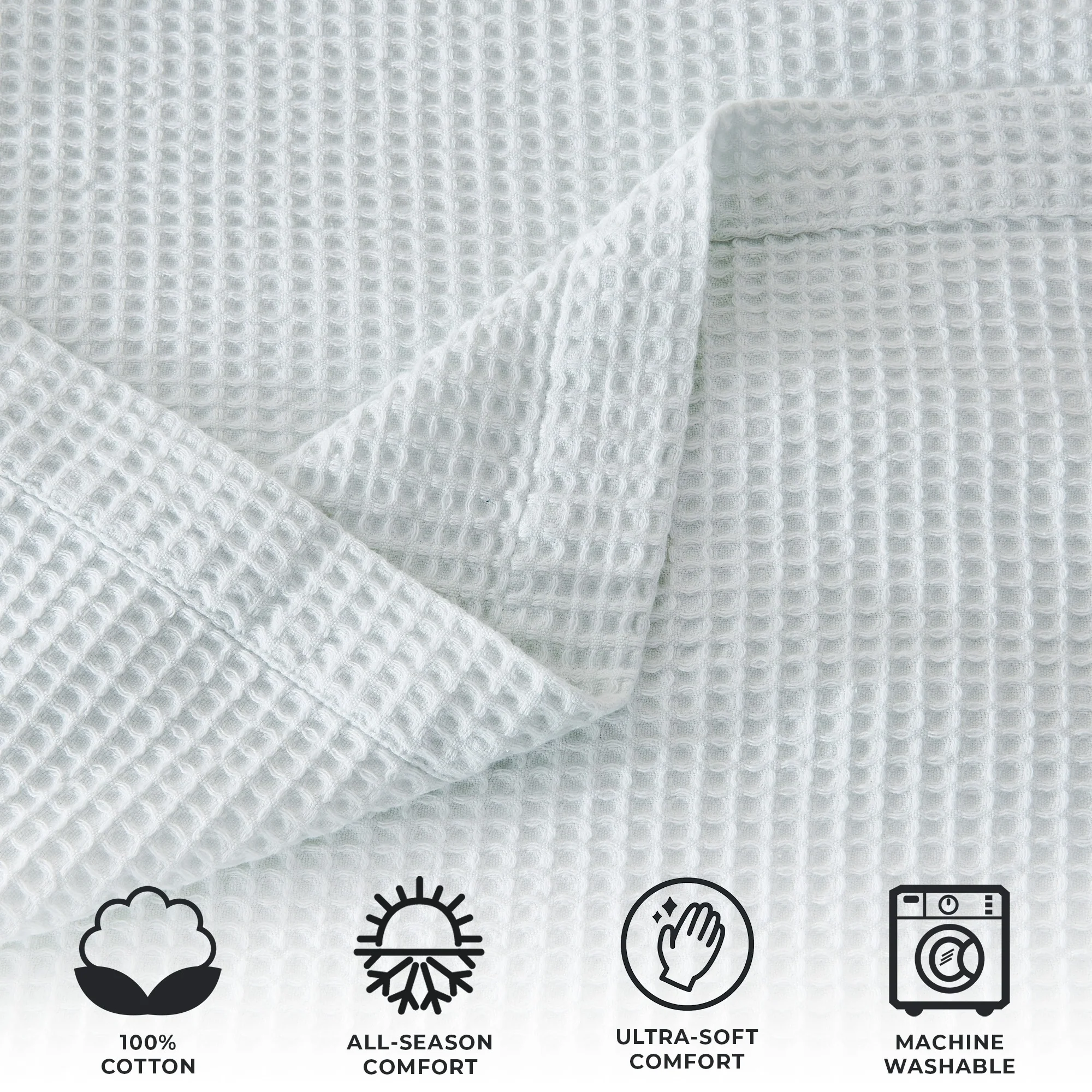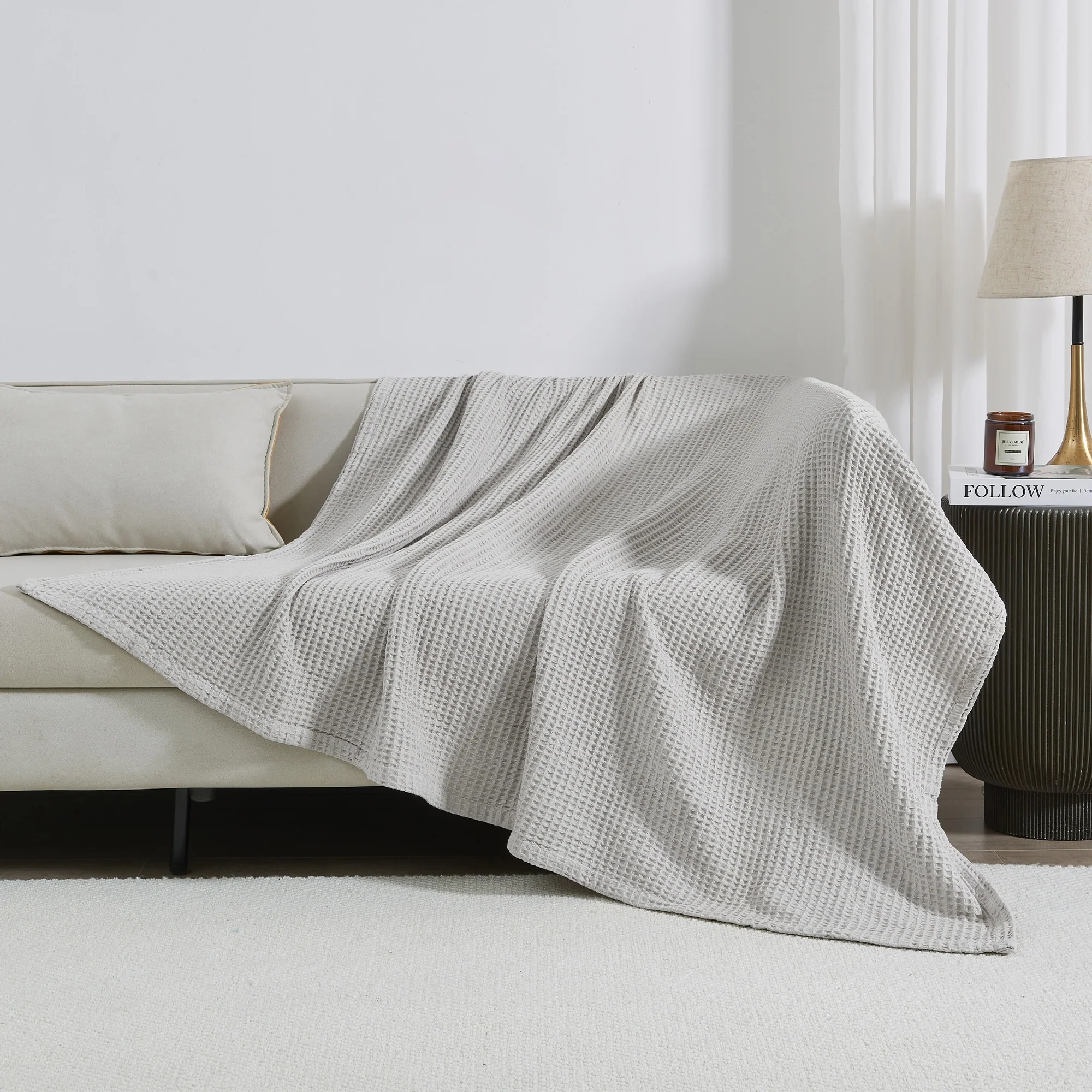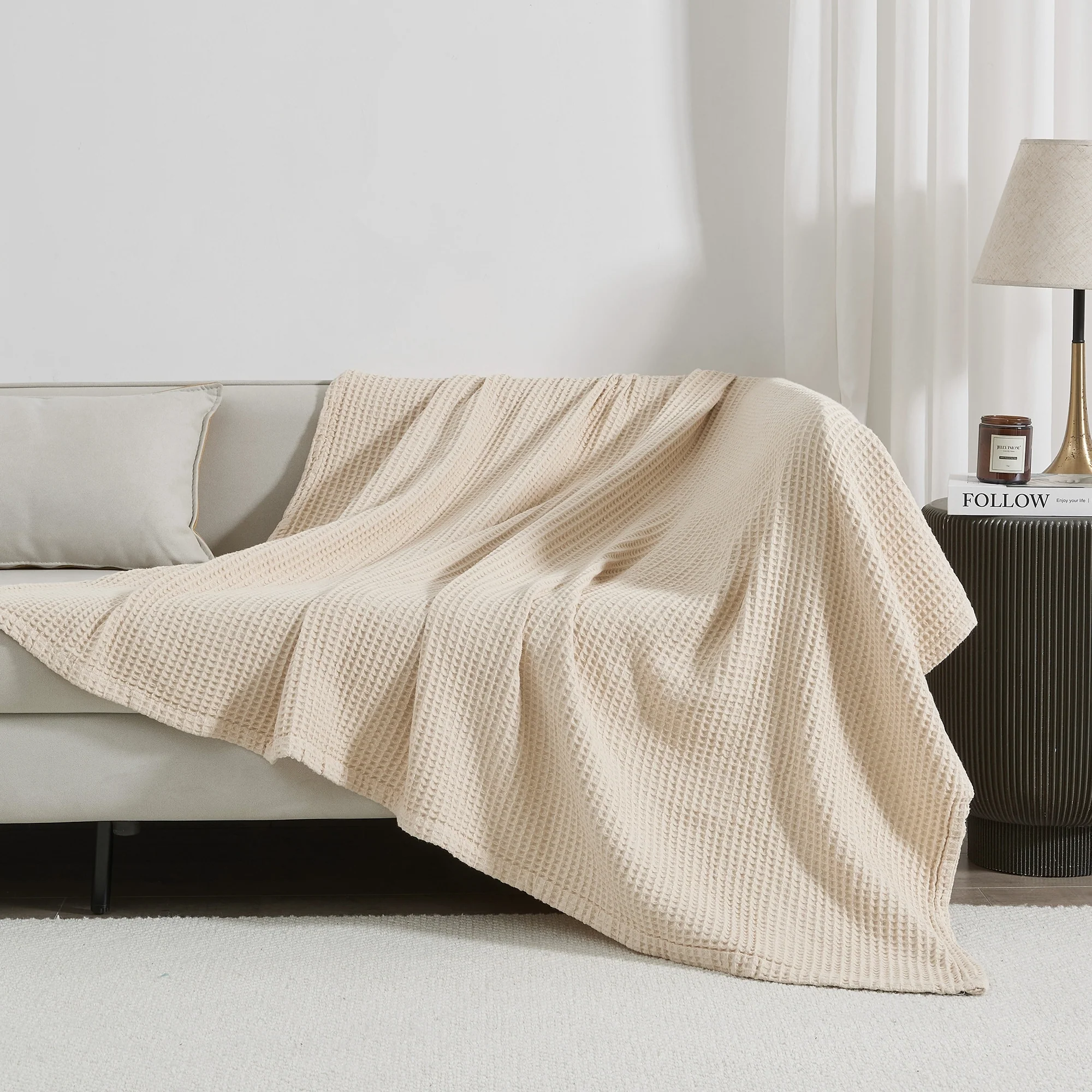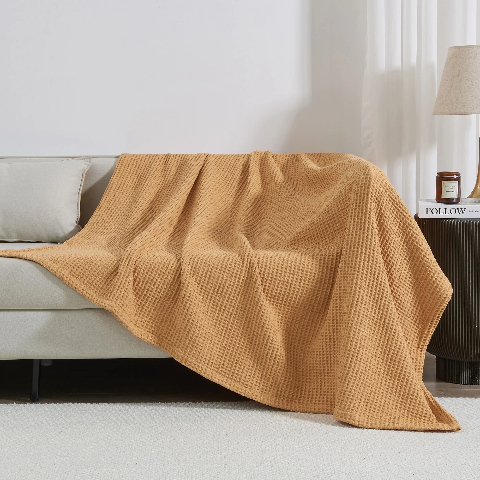 Add this blanket to your bed or couch and transform your versatile decor. This breathable waffle weave textures bed blanket is perfect for keeping you comfortable through every season. The modern color assortment will match your decor no matter the theme and will complement your style throughout every season. Use this cotton throw blanket for your couch or bed. Not only is this throw blanket versatile, but it's also easy to care for. This textured blanket is prewashed & preshrunk to enhance the cotton's softness and ensure the blanket stays the same size, even after washing.