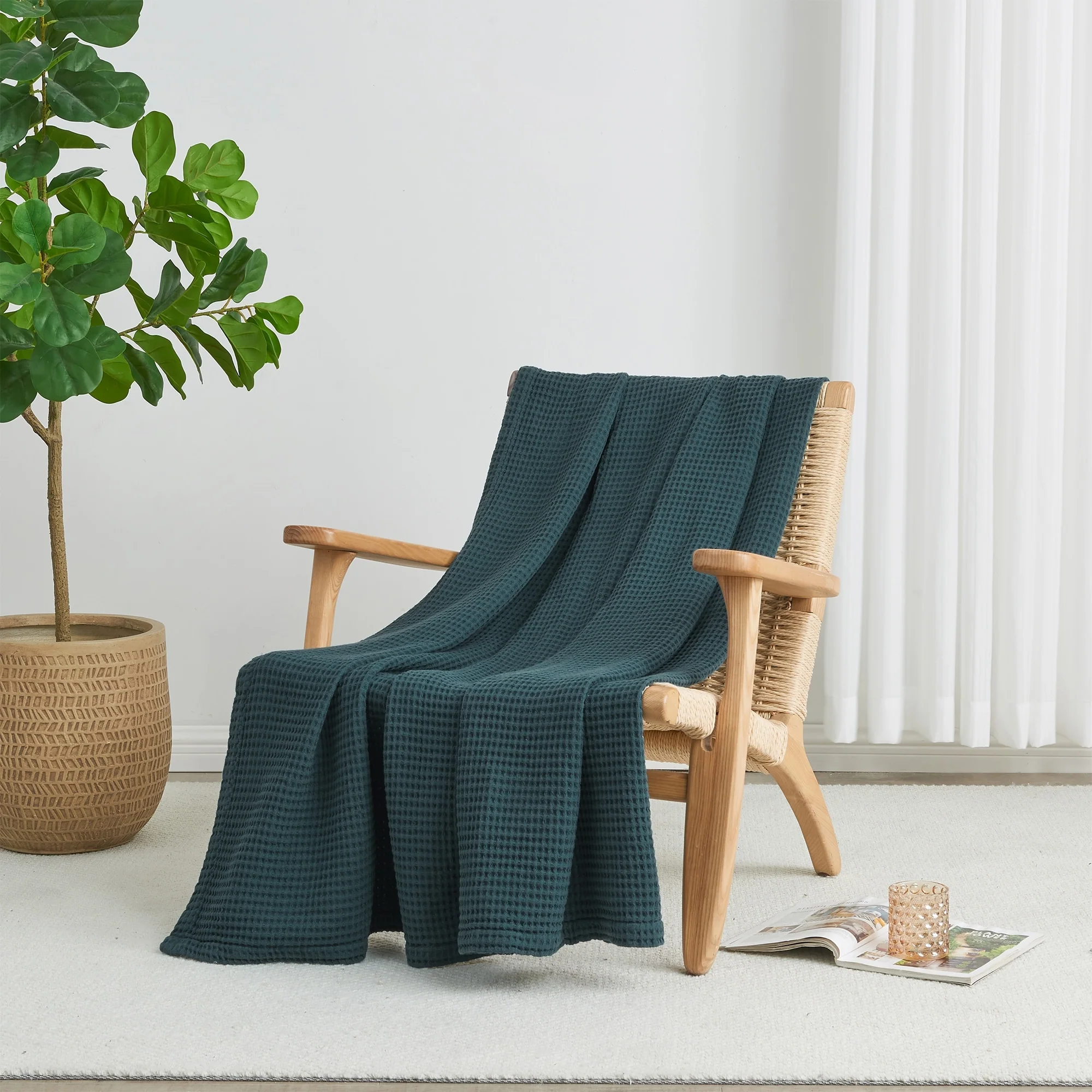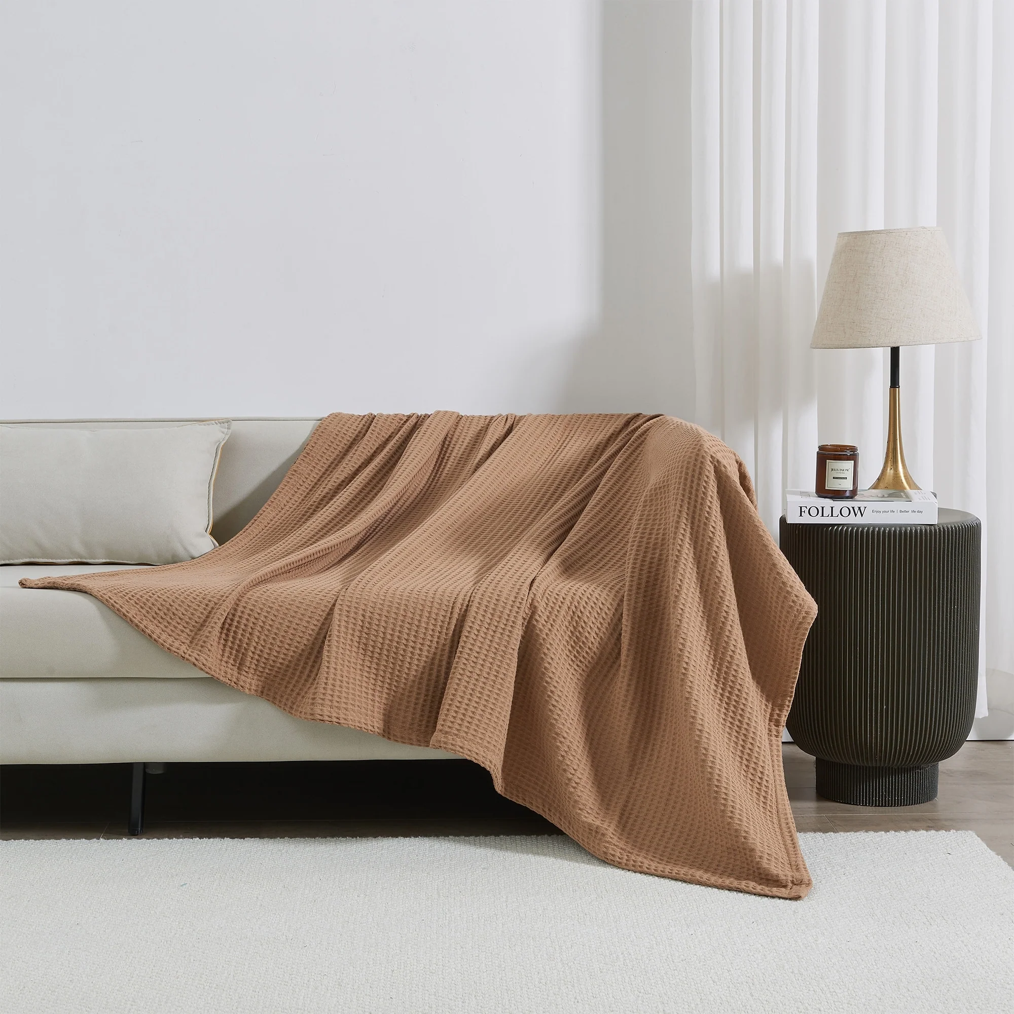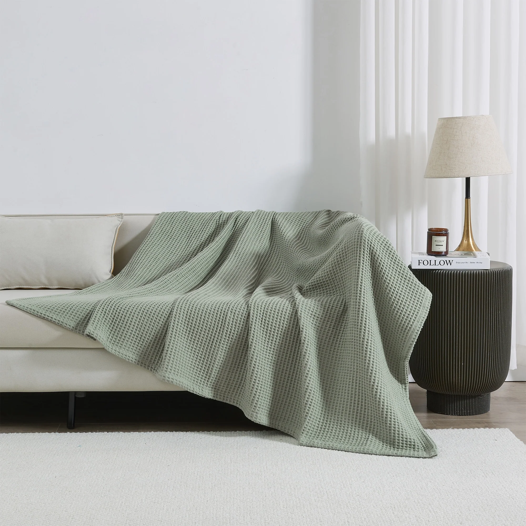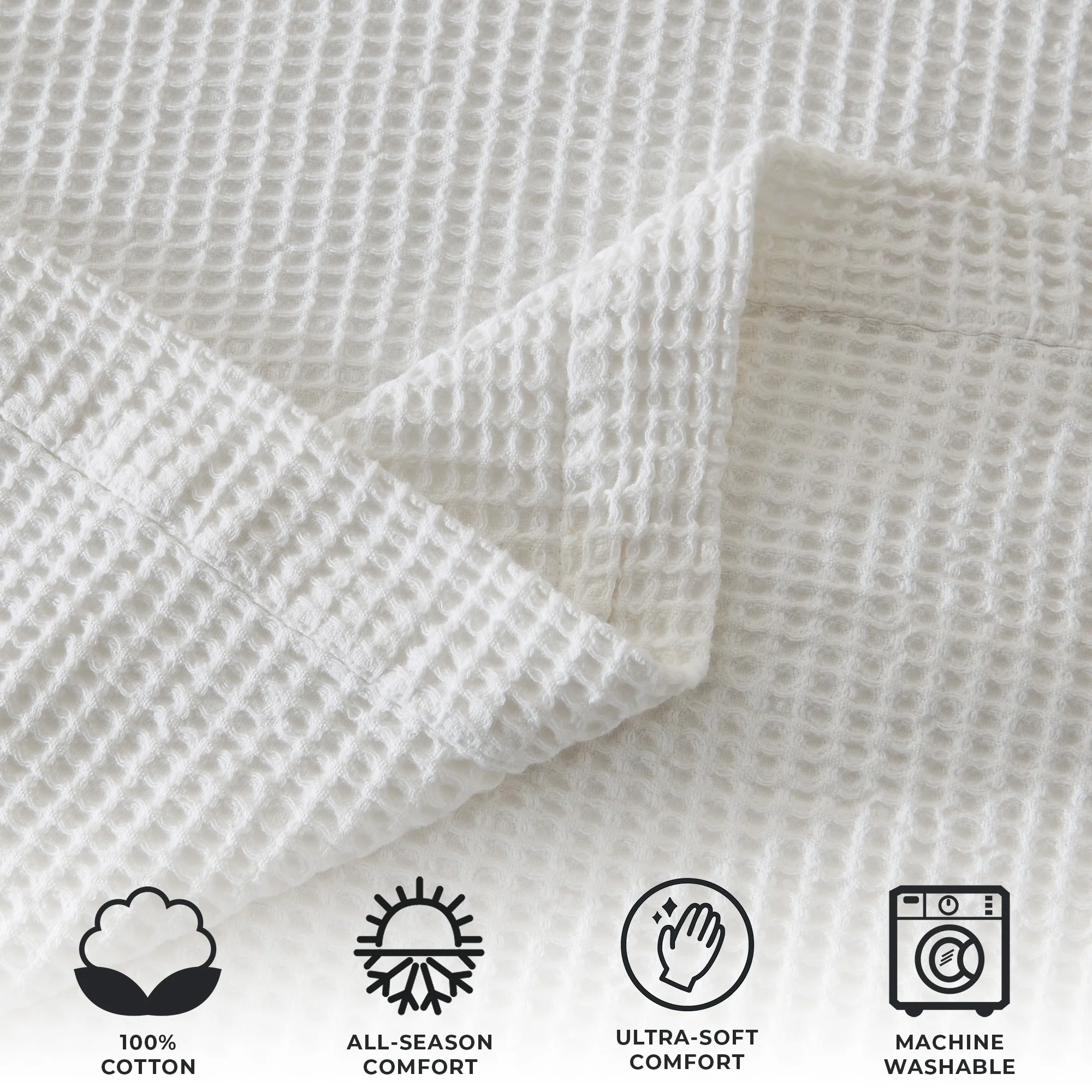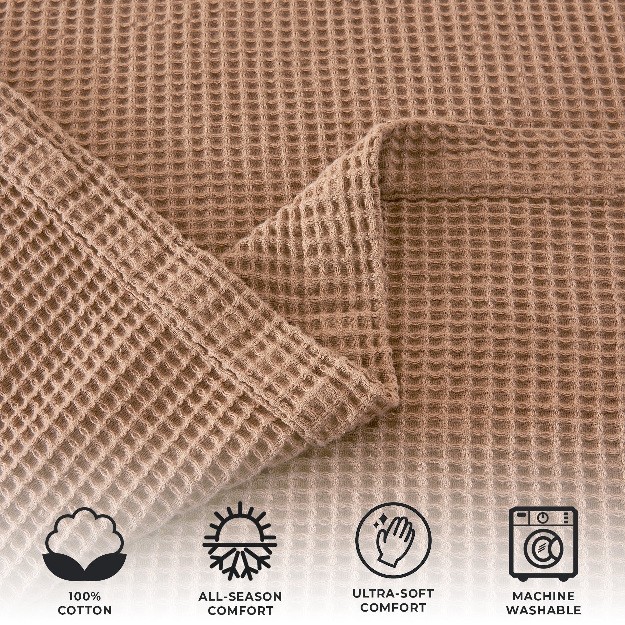 Add this blanket to your bed or couch and transform your versatile decor. This breathable waffle weave textures bed blanket is perfect for keeping you comfortable through every season. The modern color assortment will match your decor no matter the theme and will complement your style throughout every season. Use this cotton throw blanket for your couch or bed. Not only is this throw blanket versatile, but it's also easy to care for. This textured blanket is prewashed & preshrunk to enhance the cotton's softness and ensure the blanket stays the same size, even after washing.