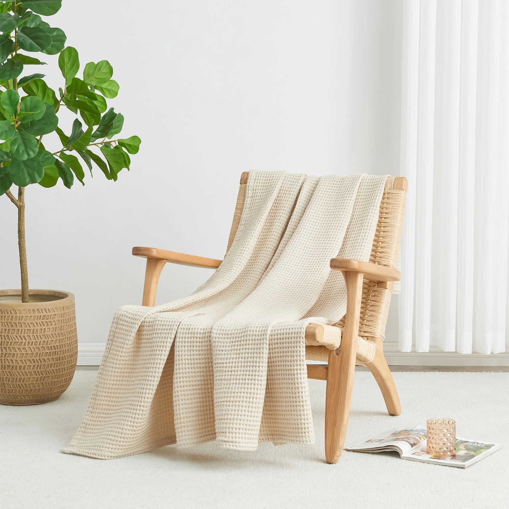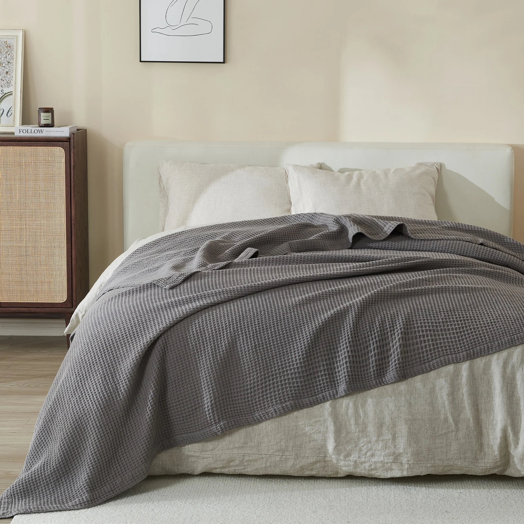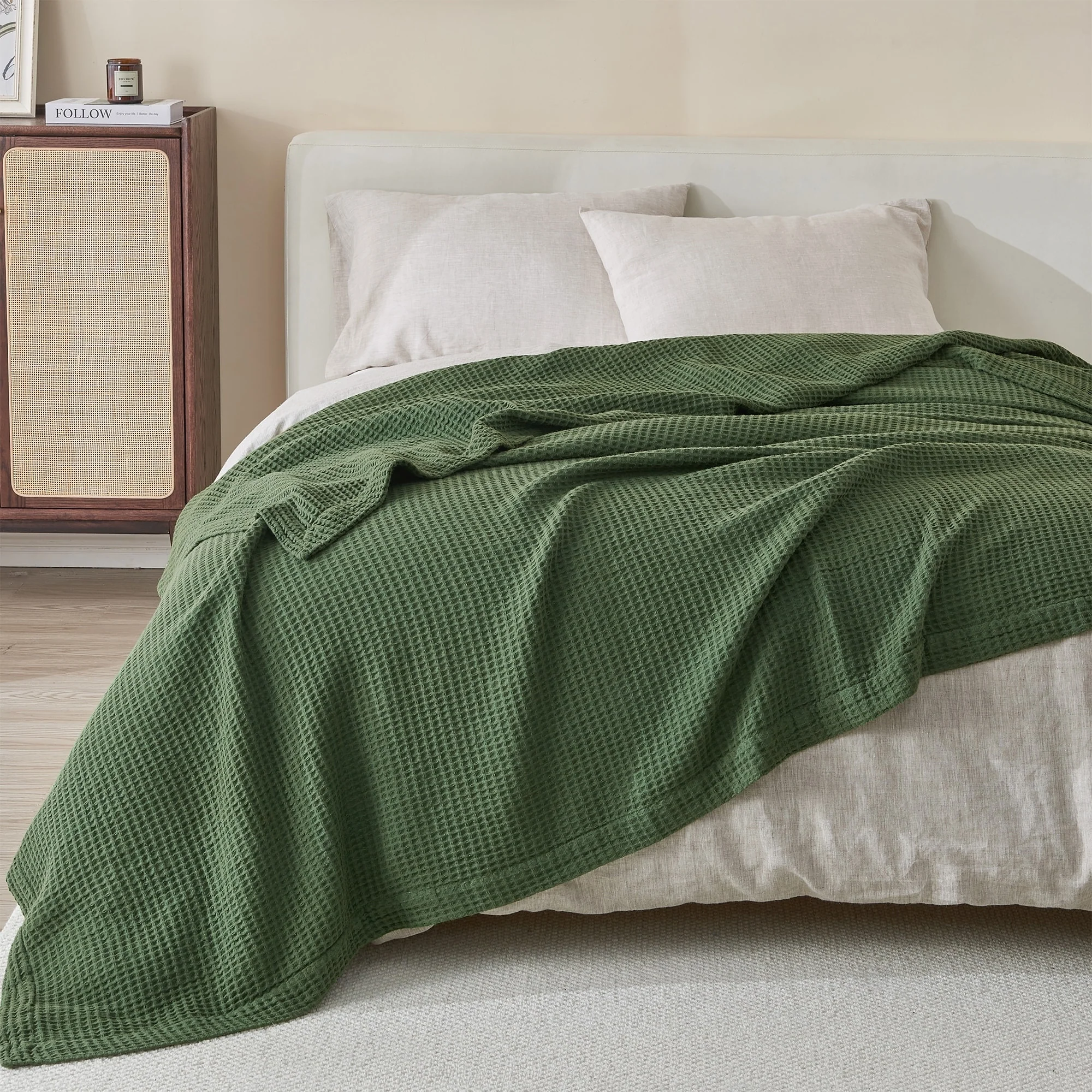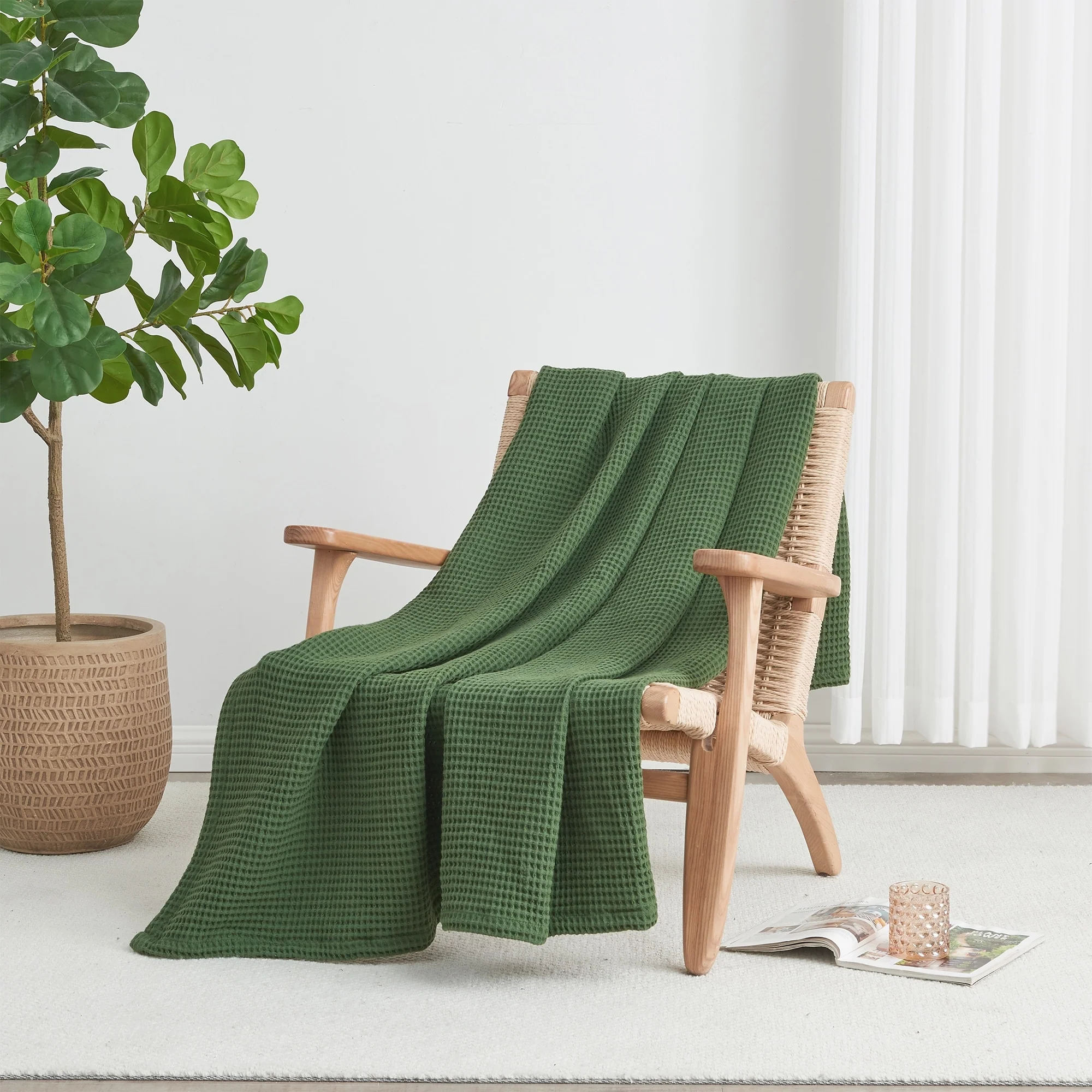 Add this blanket to your bed or couch and transform your versatile decor. This breathable waffle weave textures bed blanket is perfect for keeping you comfortable through every season. The modern color assortment will match your decor no matter the theme and will complement your style throughout every season. Use this cotton throw blanket for your couch or bed. Not only is this throw blanket versatile, but it's also easy to care for. This textured blanket is prewashed & preshrunk to enhance the cotton's softness and ensure the blanket stays the same size, even after washing.