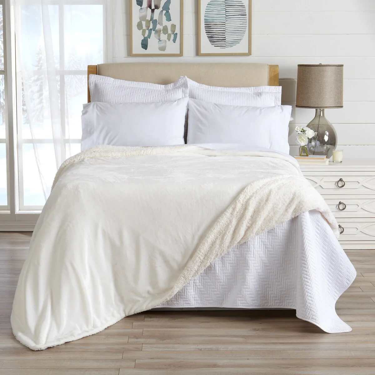 A solid velvet plush blanket with a cozy sherpa reverse is the perfect addition to your home decor during the colder seasons. The velvet plush is soft to the touch and offers a luxurious feel, while the sherpa reverse creates a comfortable warmth. It's the best way to drift off into a restful slumber on a chilly night.