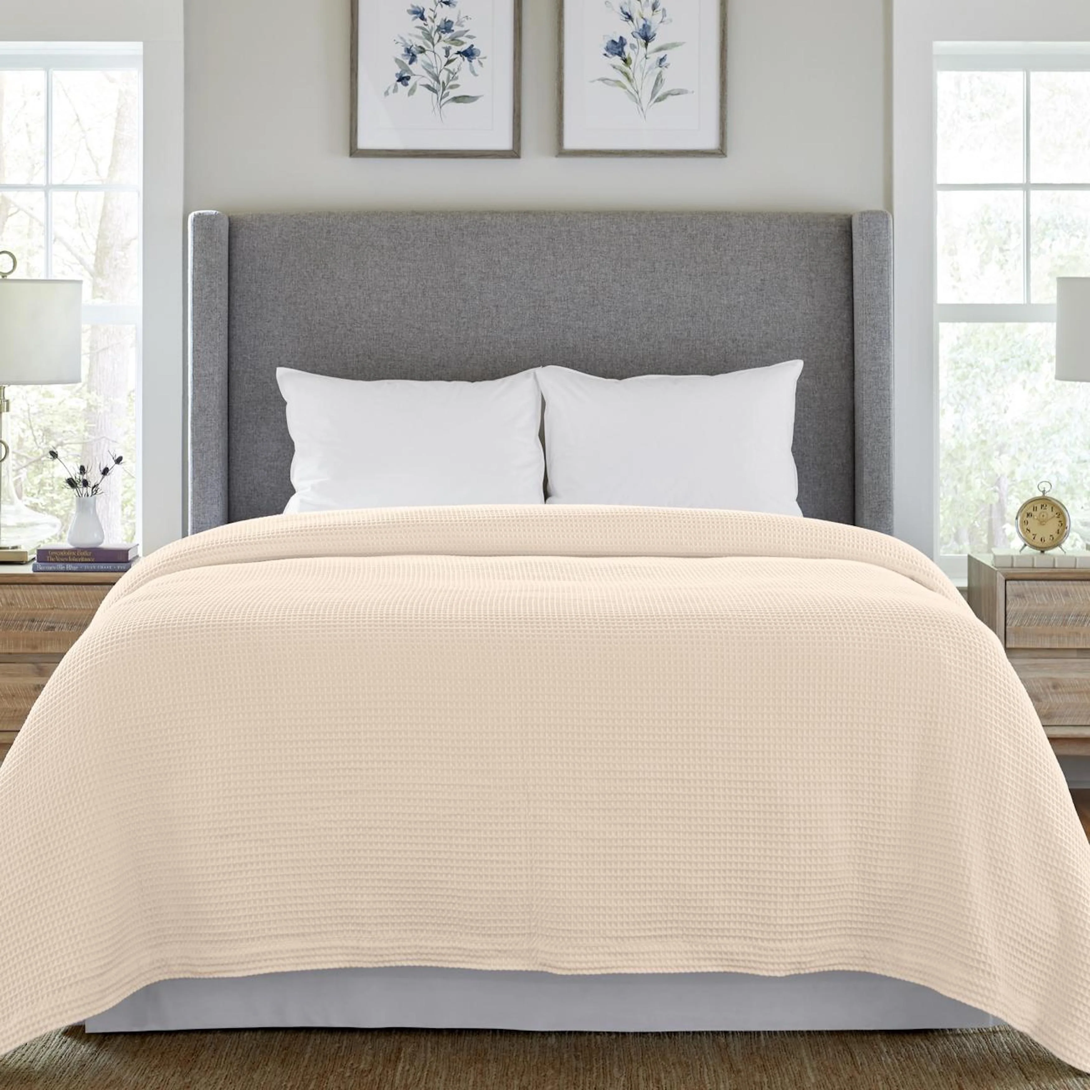 Experience exceptional comfort with our Pointehaven Long Staple Soft Cotton Waffle Blanket. Made of 100% long staple cotton, this all-year-round blanket features a super soft and breathable fabric that naturally wicks away moisture. Its tightly woven waffle weave design enhances durability for years to come. With mitered corners, this hypoallergenic and moisture absorbent blanket is available in Twin, Full/Queen, and King sizes. Includes 1 blanket in a package.