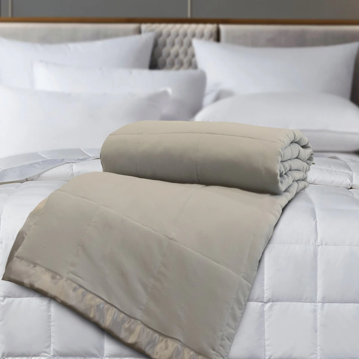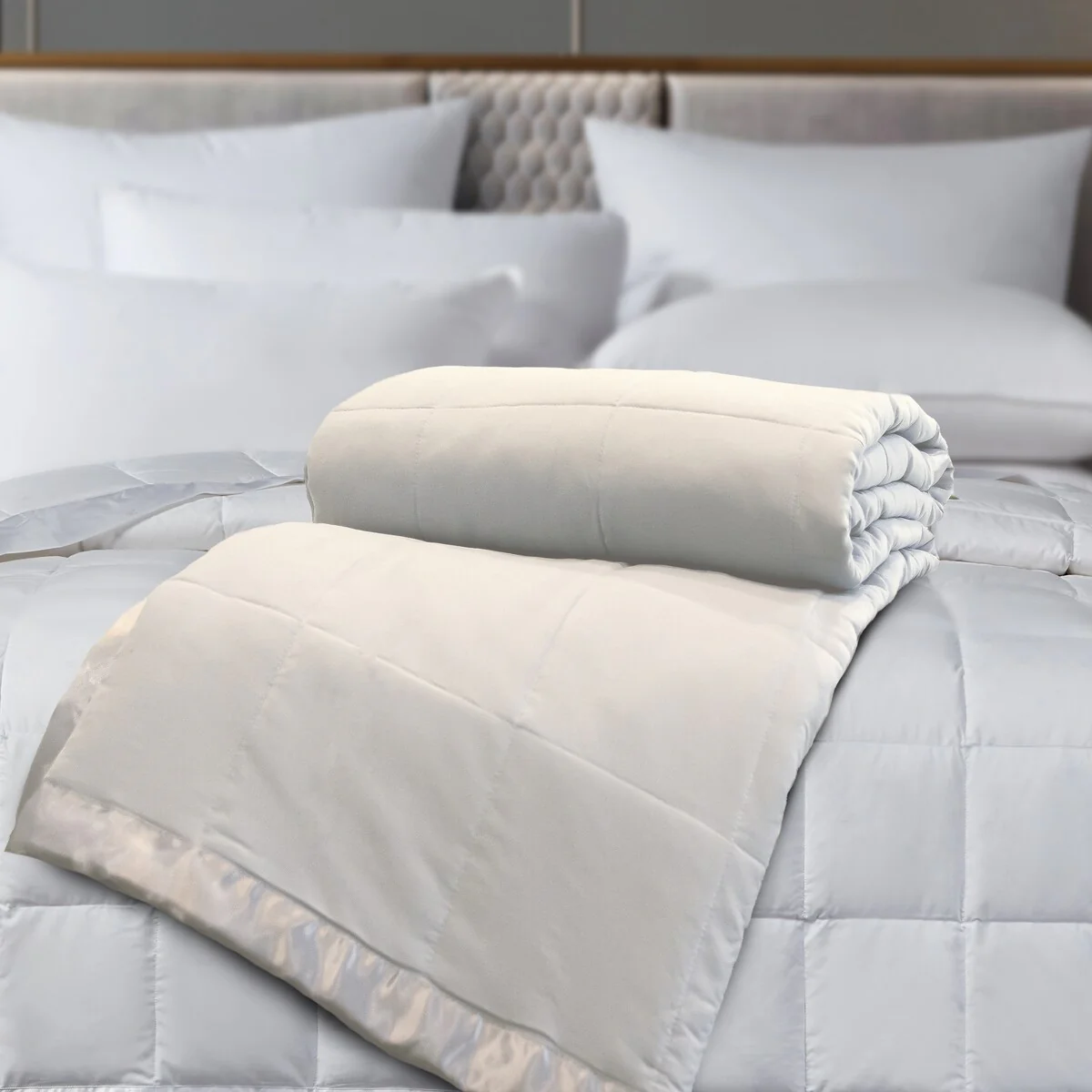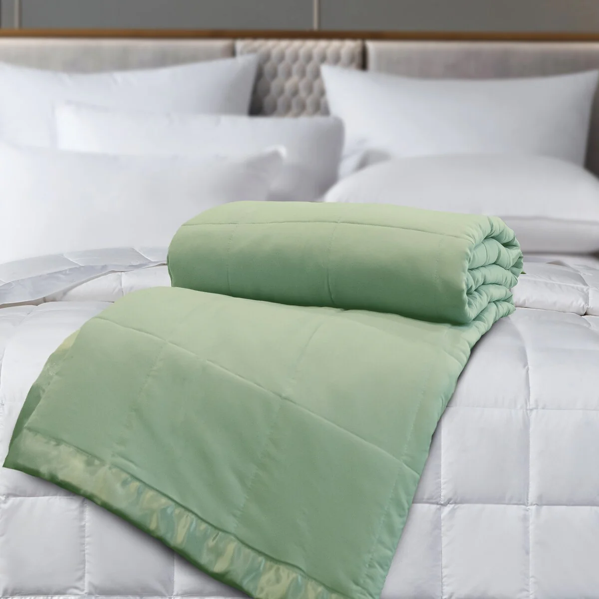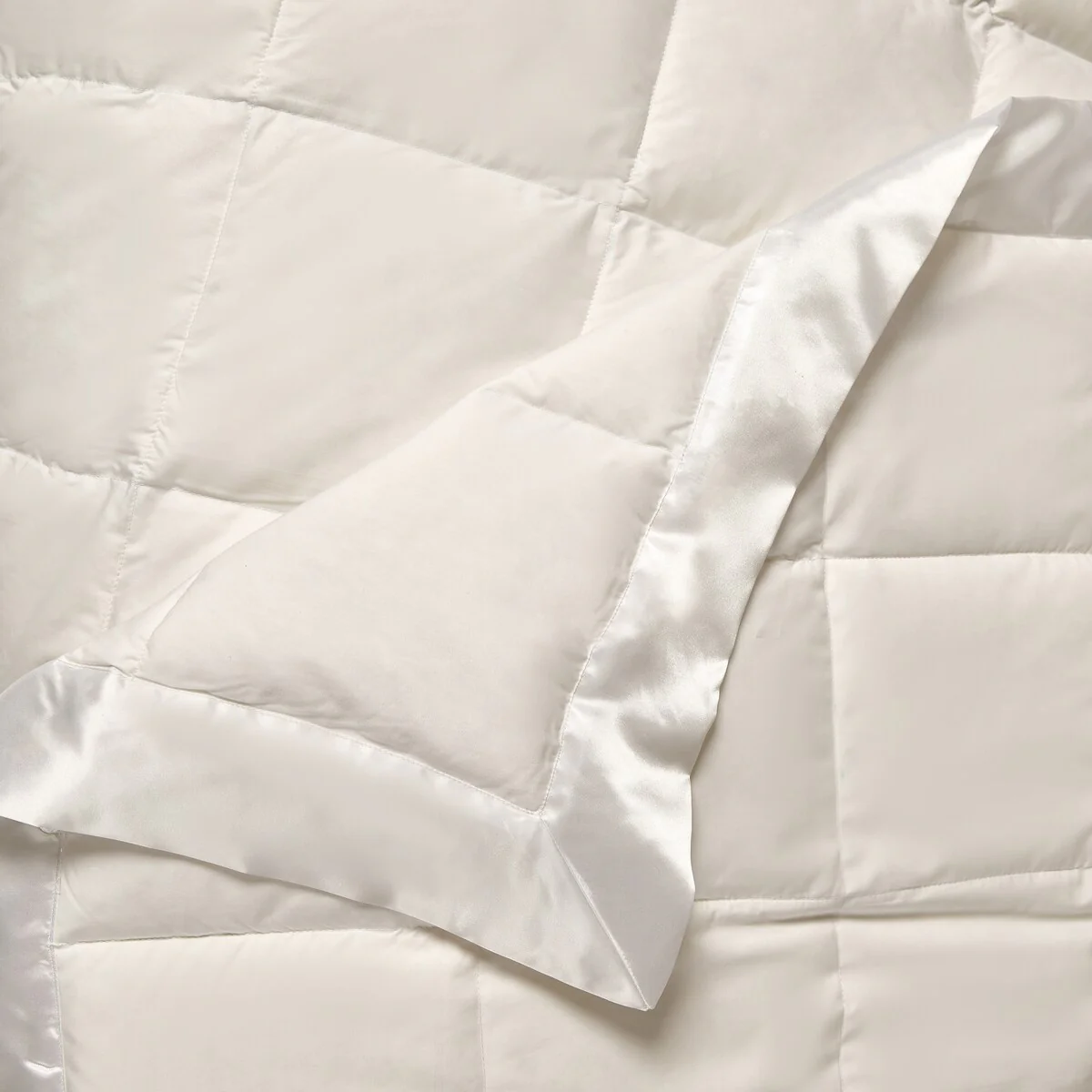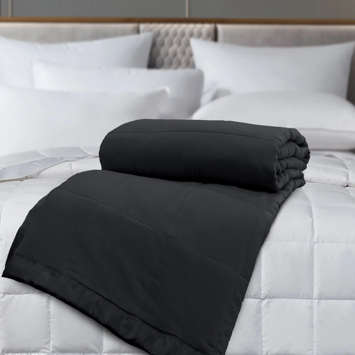 Warm up with this cozy down alternative blanket. The box-stitched microfiber face is finished with satin binding and filled with plush polyester for warmth. Choose from three sizes and many versatile colors to match your bedding.