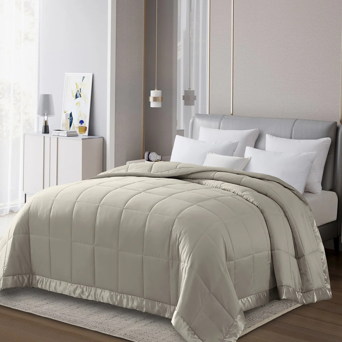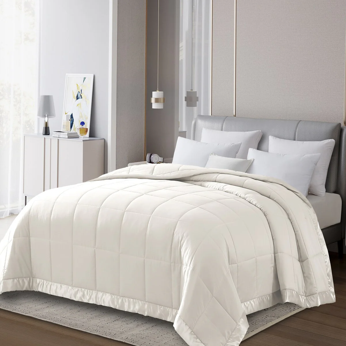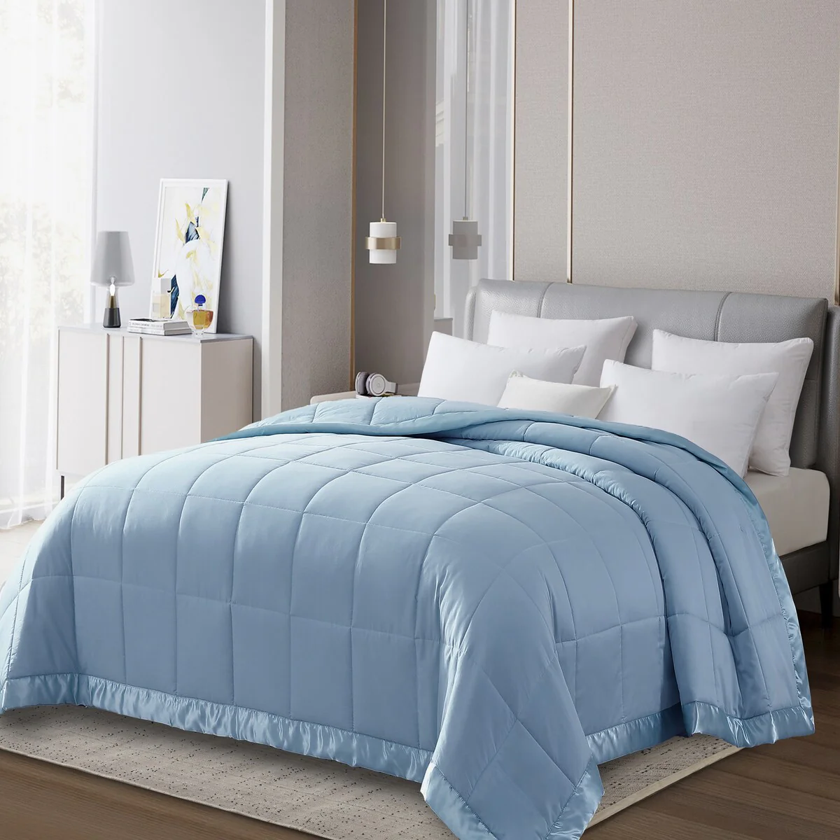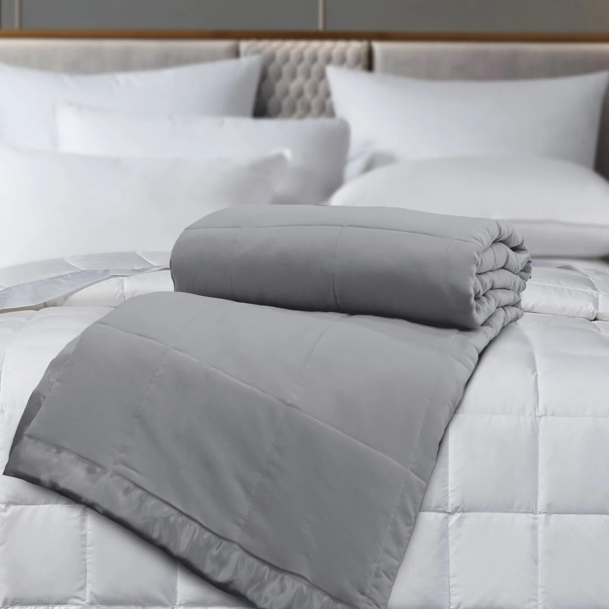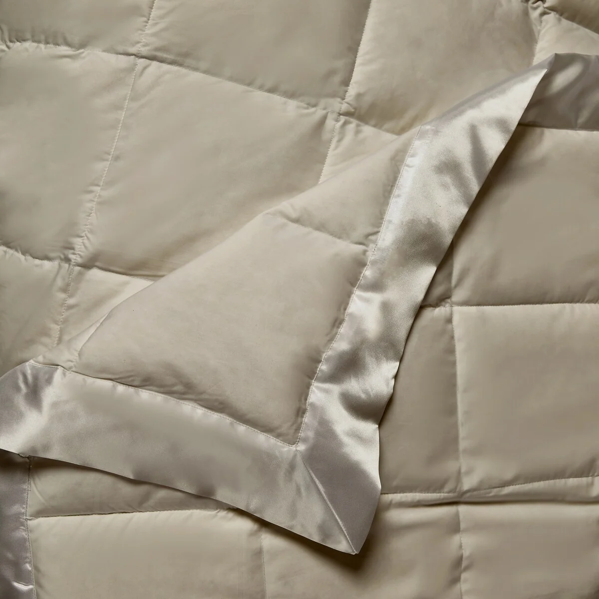 Warm up with this cozy down alternative blanket. The box-stitched microfiber face is finished with satin binding and filled with plush polyester for warmth. Choose from three sizes and many versatile colors to match your bedding.