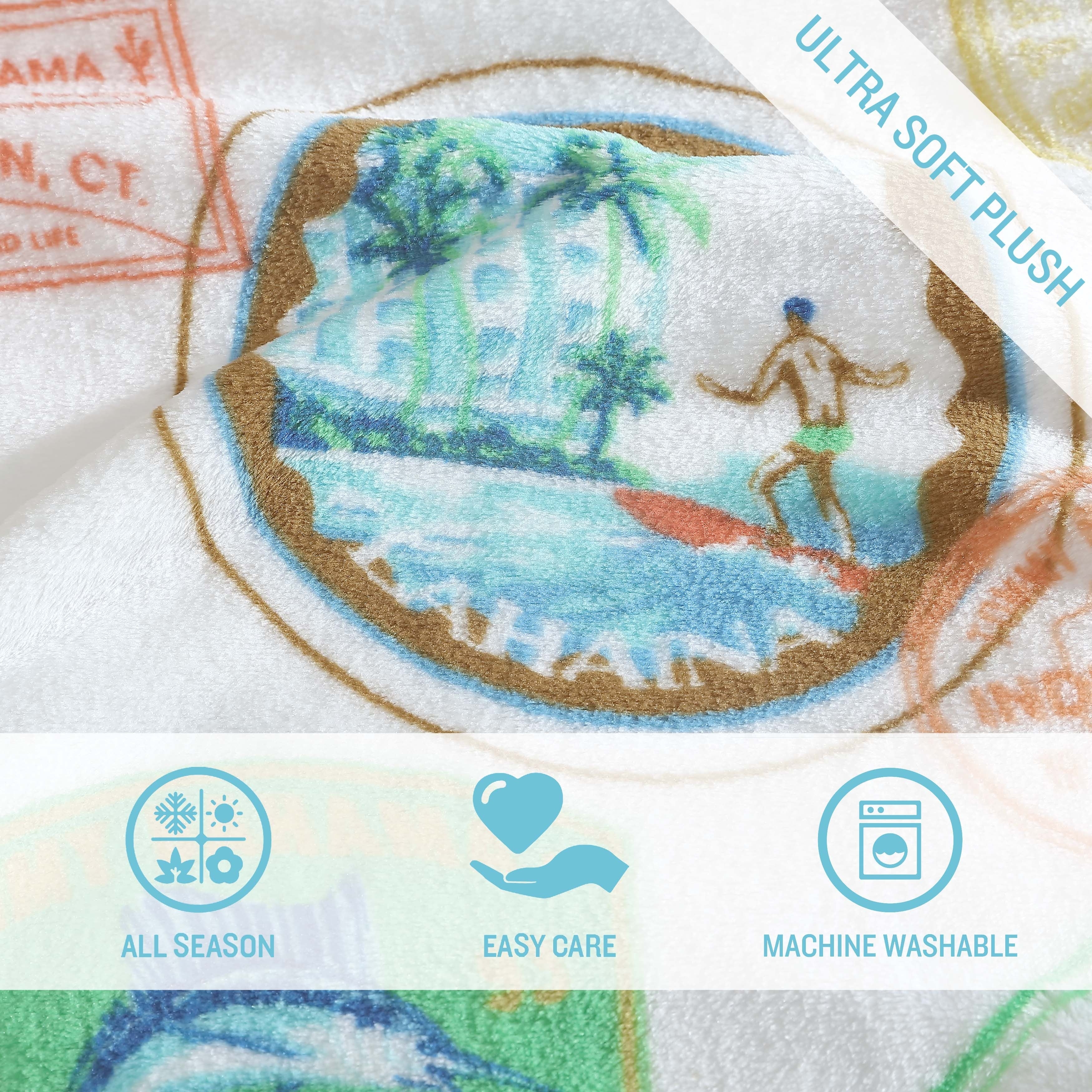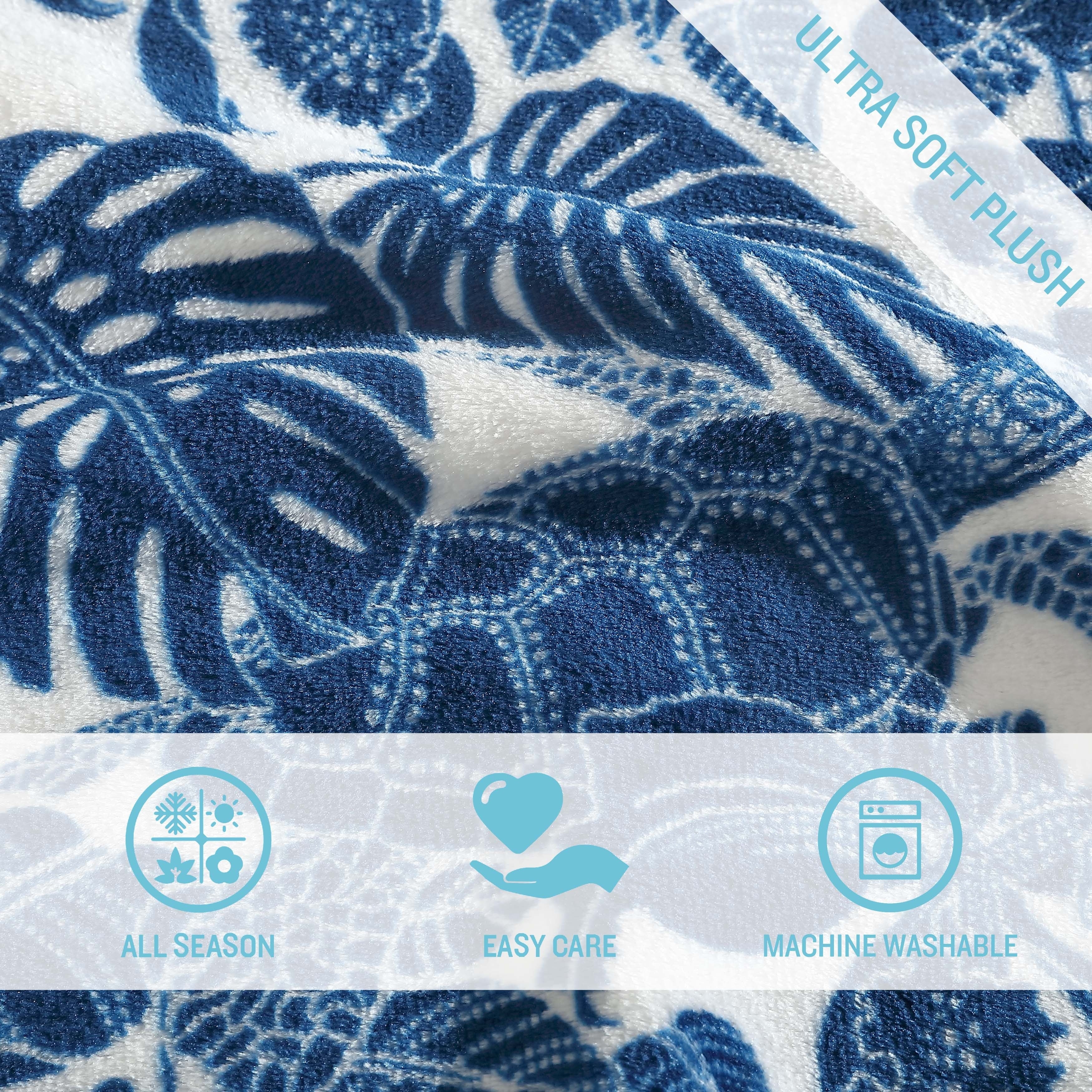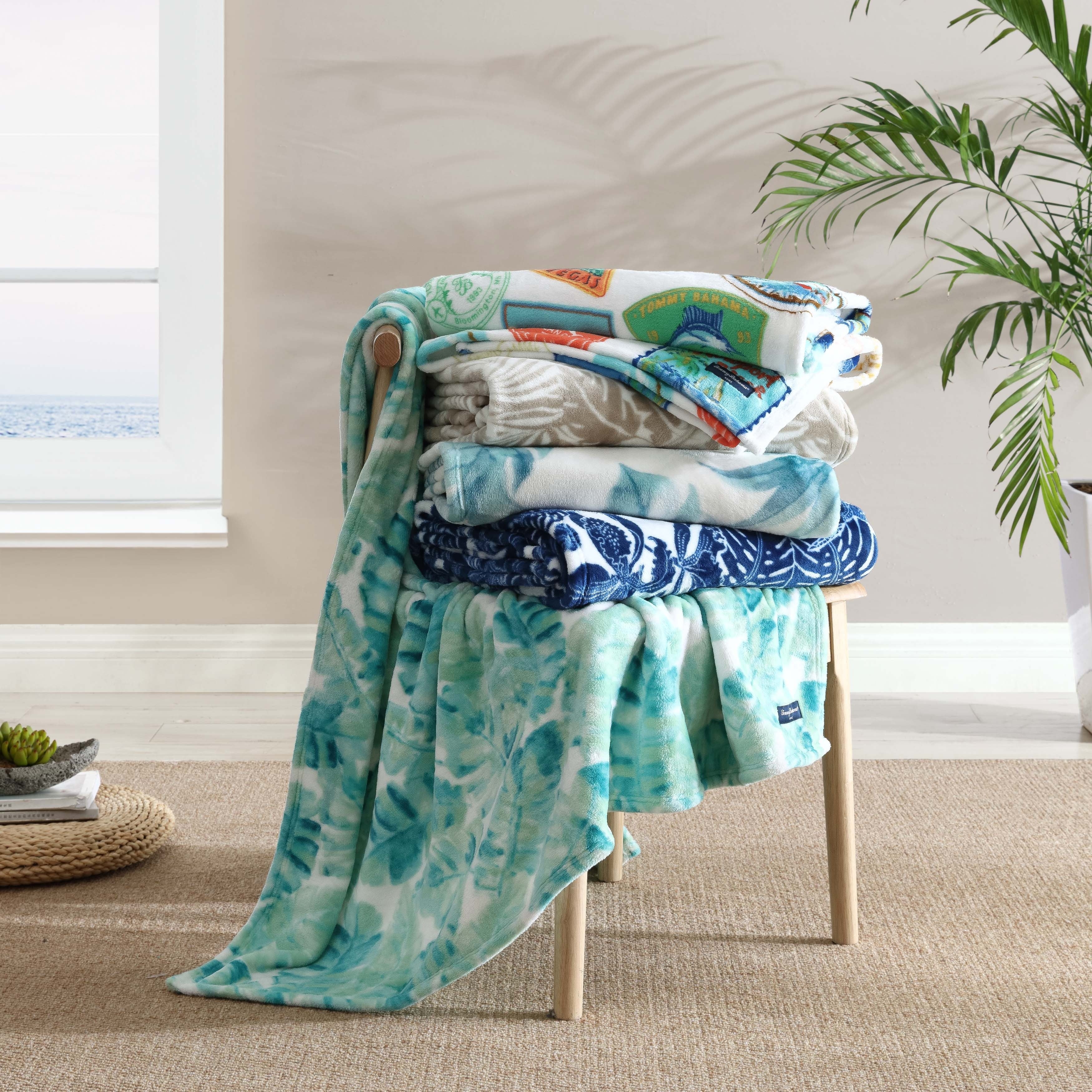 The Tommy Bahama Ultra Soft Plush Throw Blanket collection is the perfect layering piece to your bedroom décor. The collection features island-inspired print motifs that allows you to spontaneously relax in style. Made of super soft plush polyester, these throw blankets provide extra warmth for those colder nights. Throws are 100% polyester, medium weight and easy to layer. Our products are crafted with you in mind, this blanket is standard 100 by Oeko-Tex certification- tested against a list of 350 harmful substances, resulting in a chemical free item. Blankets are machine washable for easy care.