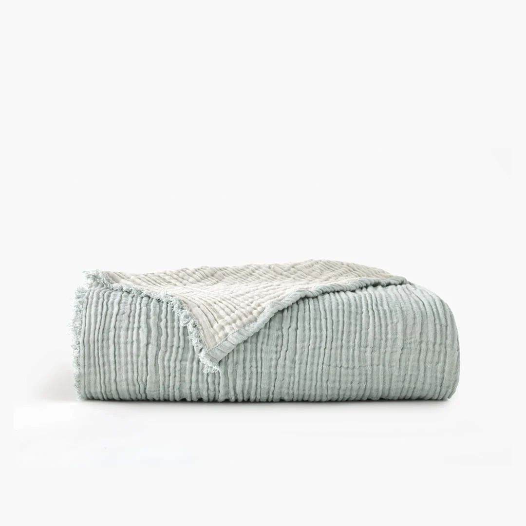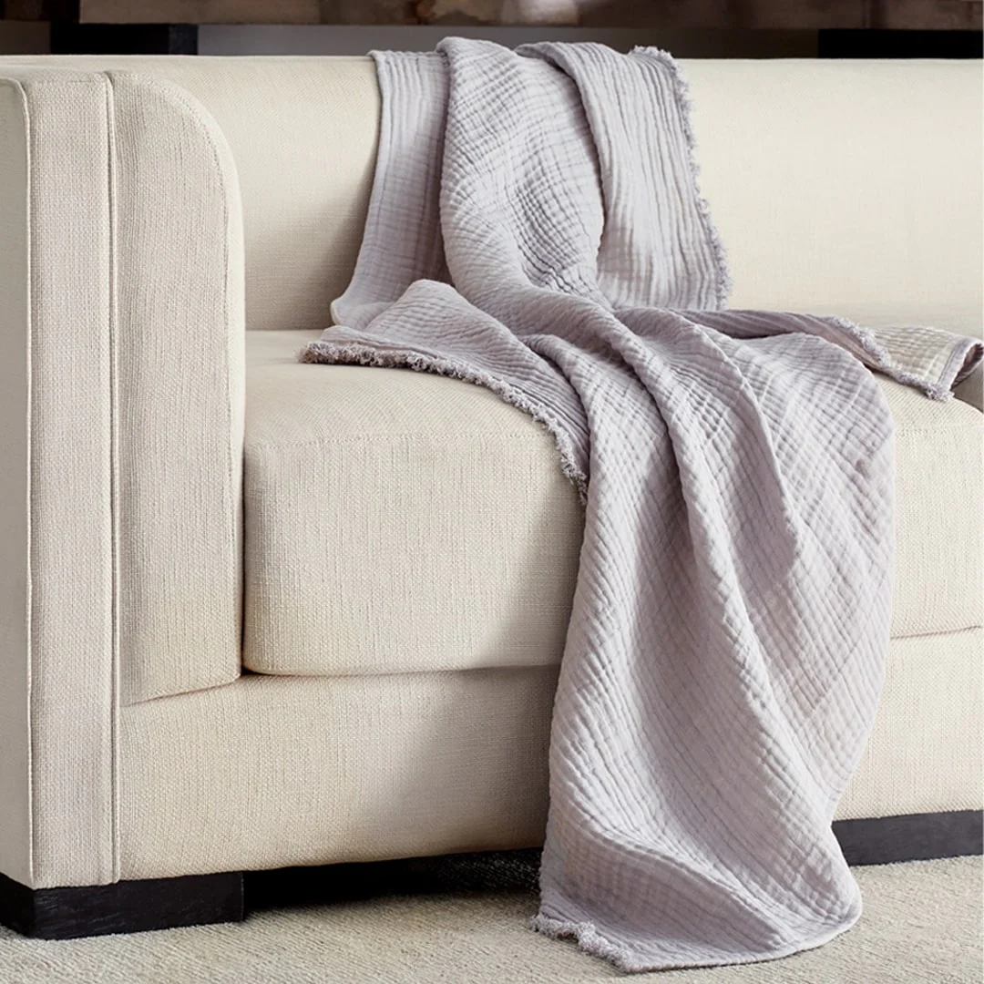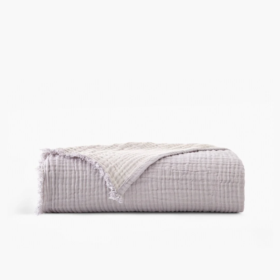 Bring a sense of laidback, super cozy style to your bed (or anywhere you dream) with our Two-Tone Textured Organic Throw. Made with 100% organic cotton, each color blanket features a neutral tone on the reverse side, making it a versatile option for any season. The solid color in each blanket is derived from natural and sustainable dyes. The surface has a slightly textured look but is soft to the touch. The hems use a short fringe to finish off the edges. GOTS certification is the highest level of certification for sustainable products giving you confidence you have the cleanest and best options for our world.