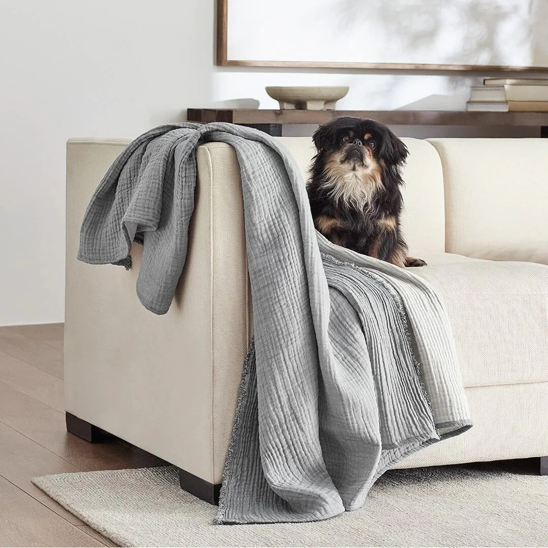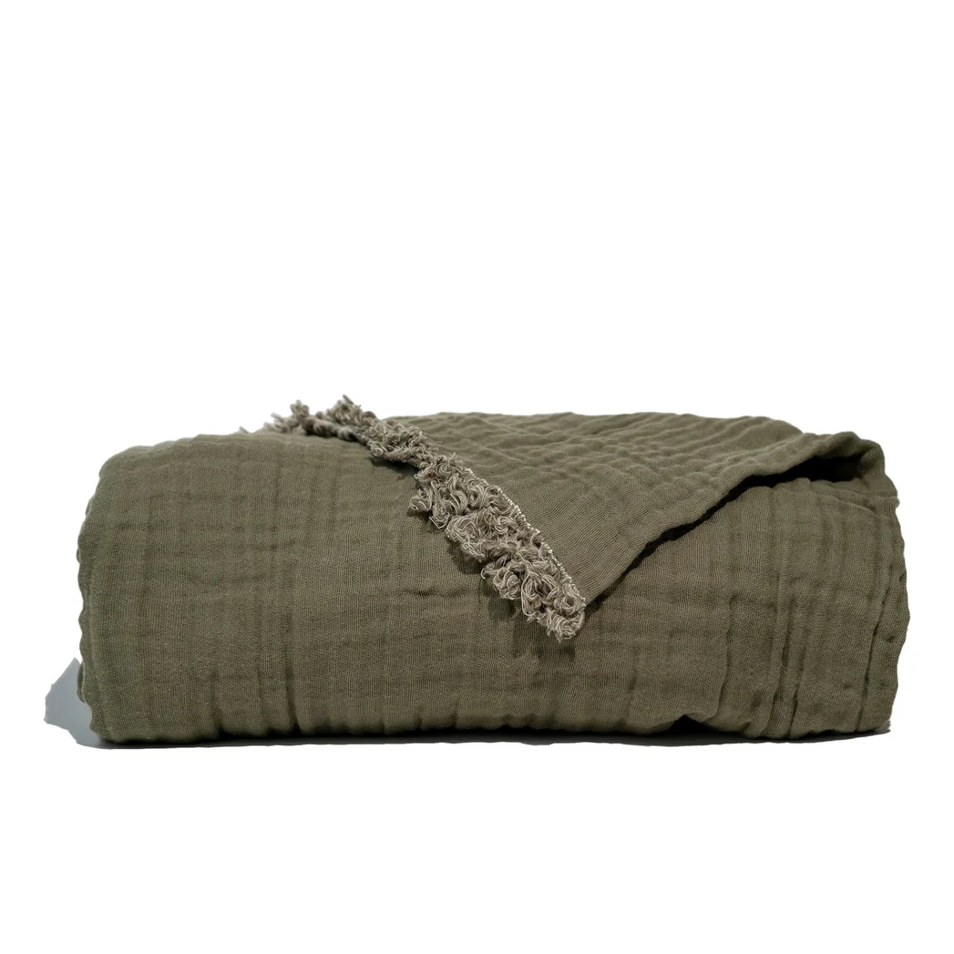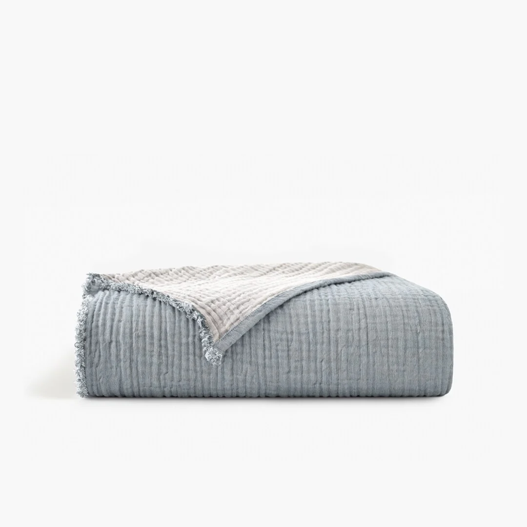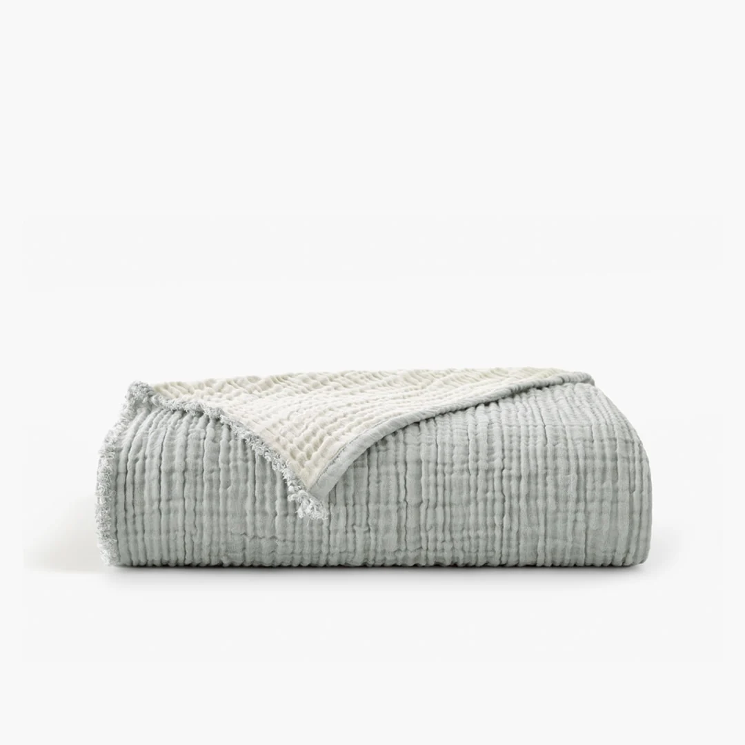 Bring a sense of laidback, super cozy style to your bed (or anywhere you dream) with our Two-Tone Textured Organic Throw. Made with 100% organic cotton, each color blanket features a neutral tone on the reverse side, making it a versatile option for any season. The solid color in each blanket is derived from natural and sustainable dyes. The surface has a slightly textured look but is soft to the touch. The hems use a short fringe to finish off the edges. GOTS certification is the highest level of certification for sustainable products giving you confidence you have the cleanest and best options for our world.