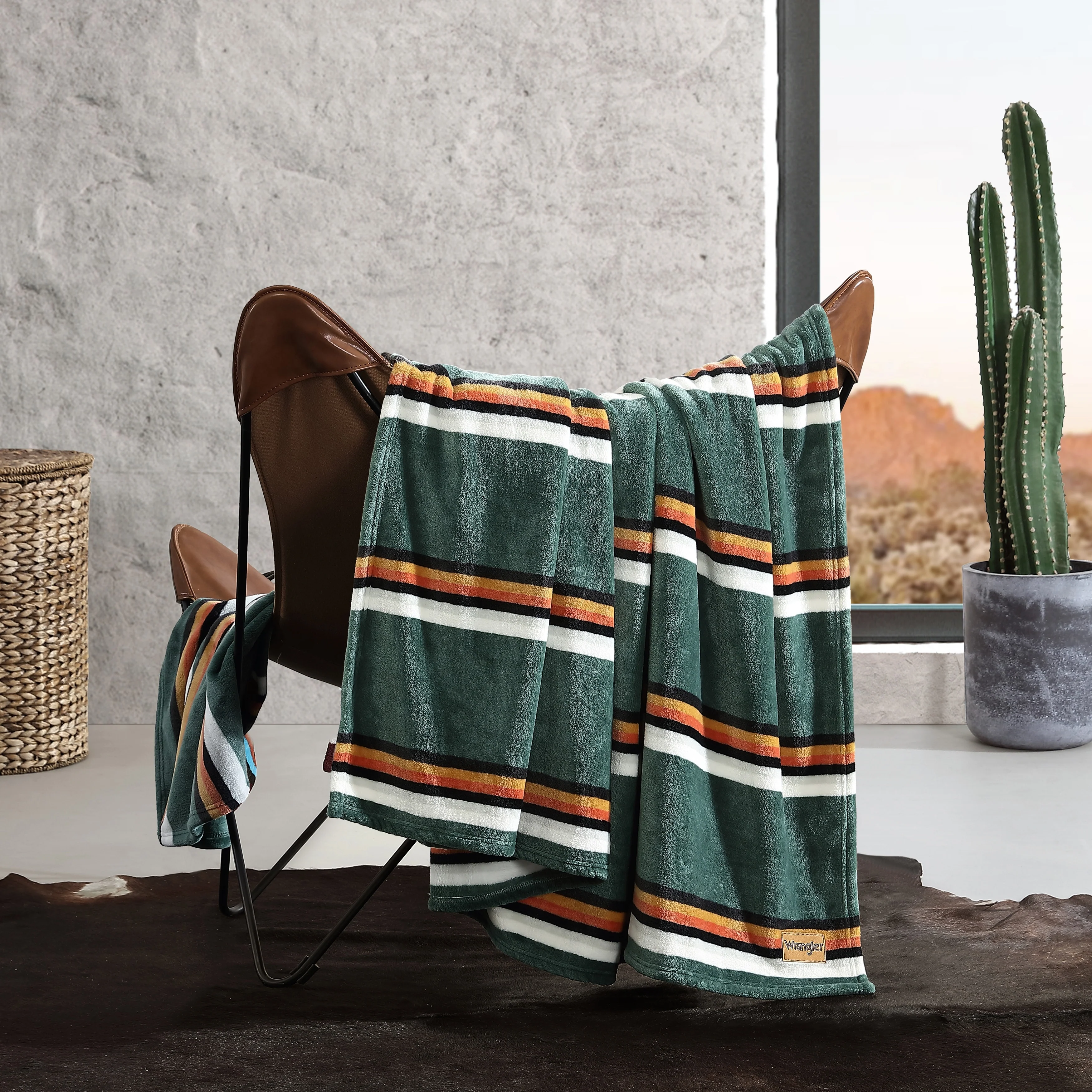 Authentically made with comfort at top of mind, the Wrangler Plush Blanket Collection is made with 100% premium polyester plush. Each blanket features self-hem detailing for a tailored look. Iconic Wrangler logo patch is featured at the bottom right. Available in twin, full/queen and king sizes. Layers nicely with the Wrangler bedding collection, sold separately. Blankets are machine washable for easy care.