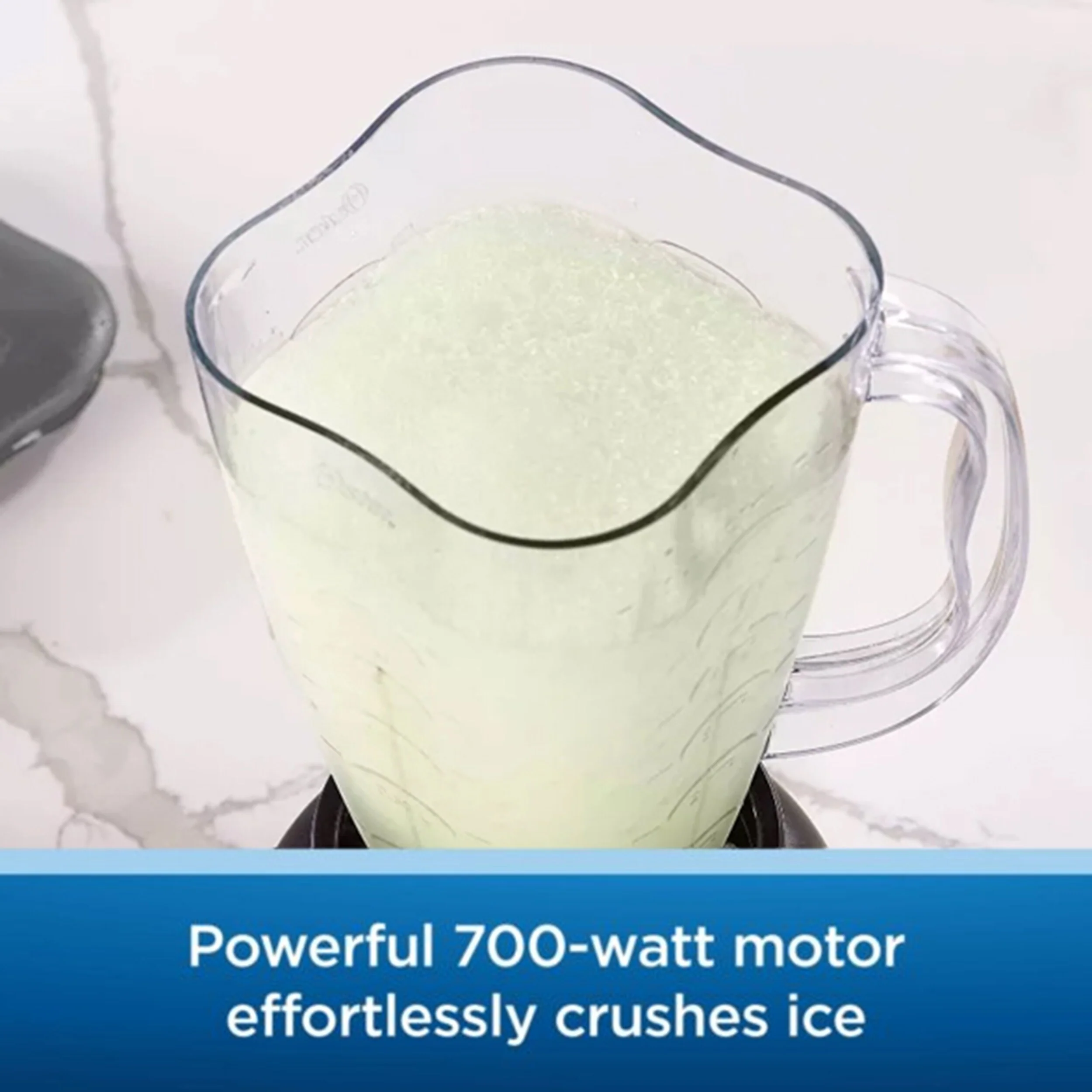 Make your favorite smoothies, milkshakes, salsas, and more right at home with this 6 Cup 5 Speed Plastic Jar Easy To Use Blender. The BPA Free plastic jar holds up to 6 cups of items and with the 700 watt ice crushing power all metal drive, you'll be able to blend anything you desire. The base has 5 speeds to choose from with easily labelled buttons so you can have the perfect consistency for any recipe. When you're finished, the plastic jar is dishwasher safe making for effortless cleanup. Any recipes or sweet treats you have in mind will be yours with this versatile countertop blender.
