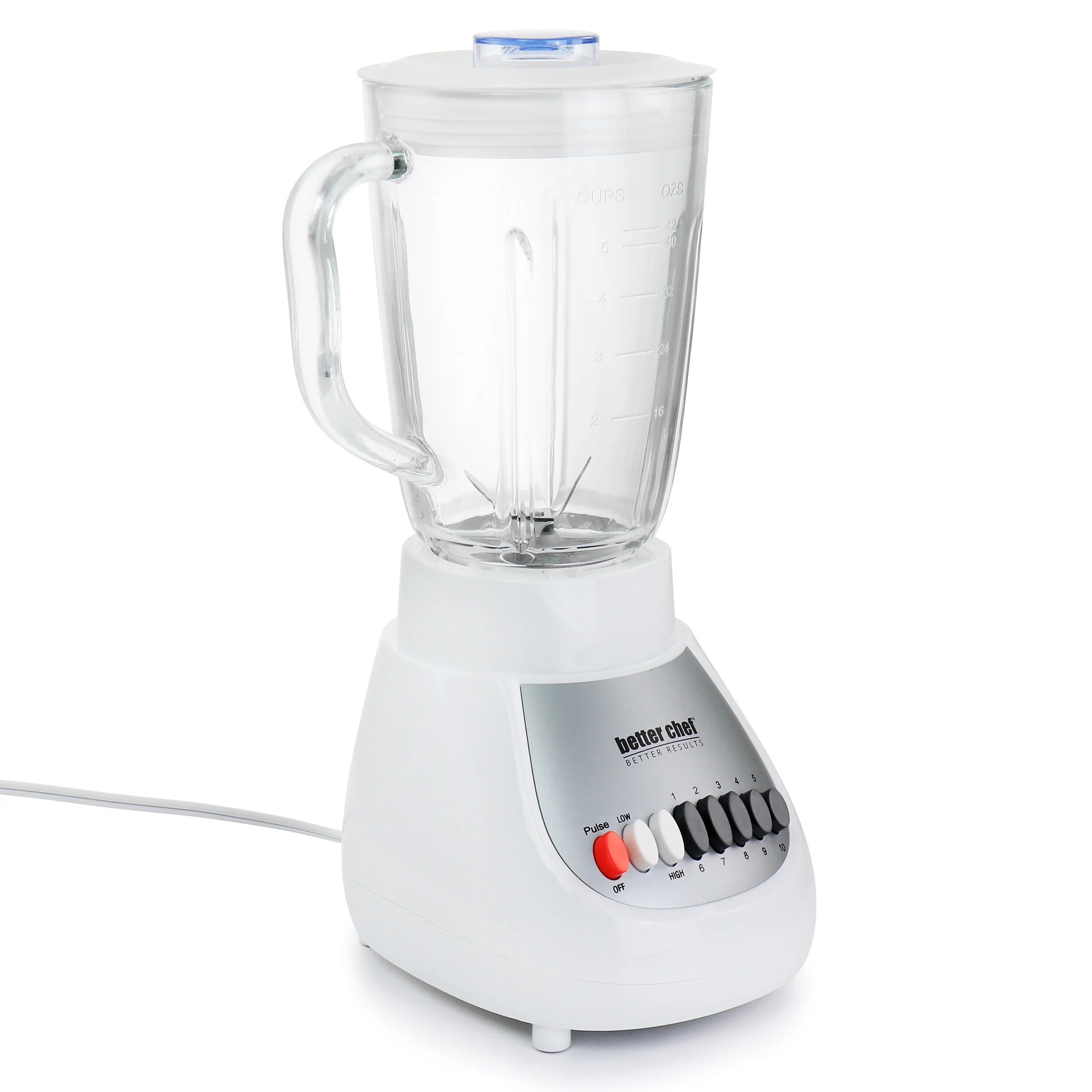 Create an assortment of desserts, drinks, and sauces with the Better Chef 10-Speed 350 Watt Glass Jar Blender. The versatile 10 speed motor functions with an assortment of ingredients; be it berries or hard chocolate. And why stop there, take full advantage of 350 watts of power to crush ice into the perfect smoothie. All well within a generous 42 ounce glass jar. Blend together classic milkshakes, tropical drinks, or potent protein shakes! Wipe-able easy to clean ABS polymer housing and a dishwasher safe glass jar. Removable filler cap allows you to add ingredients while blending.