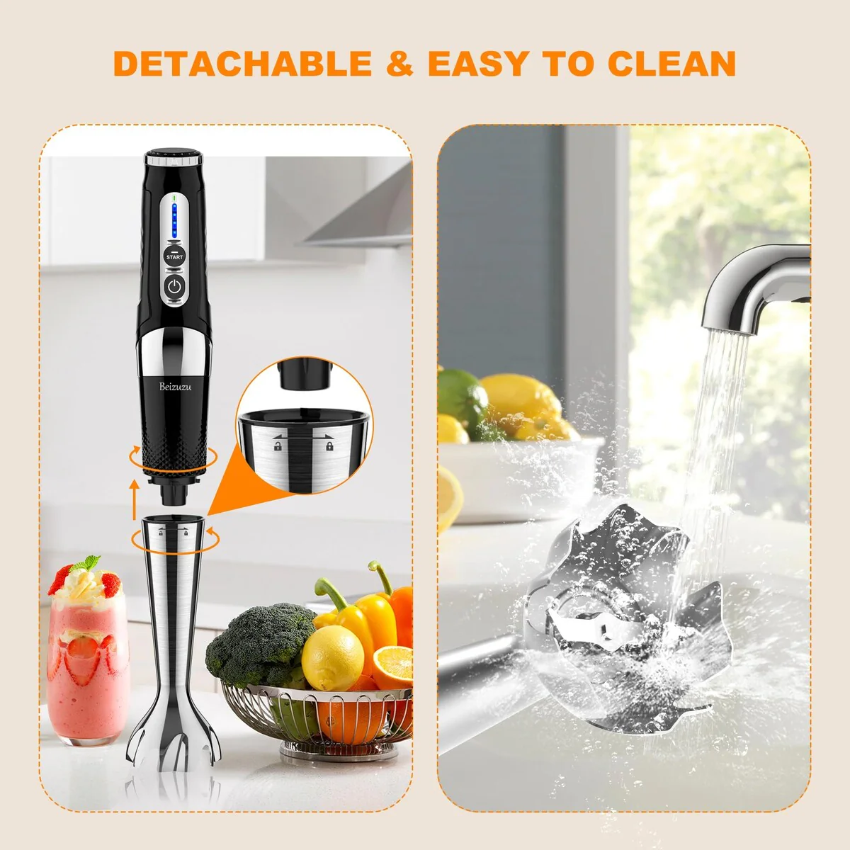 【Easy to Use & Clean】: The hand held blender stick has a detachable design and can be easily switched between attachments, just need to combine the accessories with this stainless steel body. The detachable design makes your hand mixer stick easy to clean and.