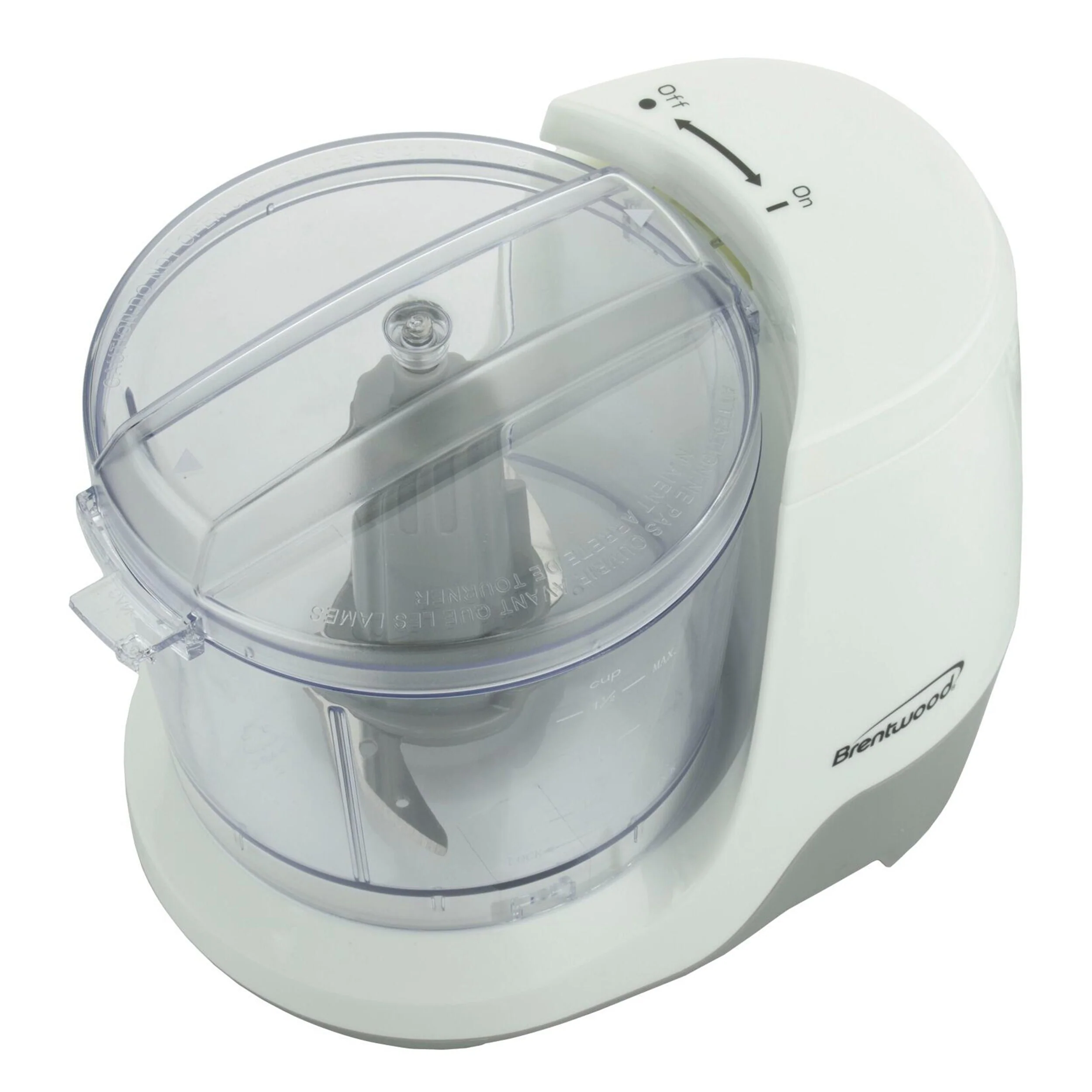 Now you can make meal prep easier with this simple-to-use electric food chopper! The perfect way to make food preparation faster and easier, this versatile chopper features sharp and durable stainless steel blades that chop and mince in seconds. It comes with a 1 1/2 cup capacity locking bowl with handy measurement markings on the side. Compact and easy to store, it has dishwasher safe parts, skid-resistant feet and plugs into any wall outlet. BPA-free plastic and stainless steel. 7 3/4'L x 4 3/4'W x 5 1/2'H.