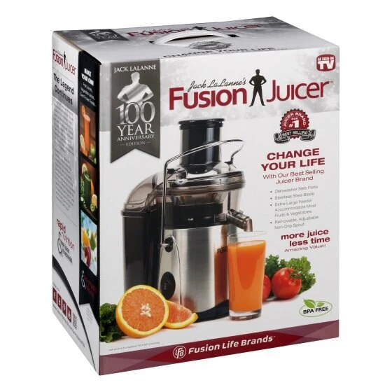 Stay healthy with the Jack Lalanne's Fusion Juicer. Get rapid nutrition from a fresh juicer in seconds — juices both fruits and vegetables.Fruits and vegetables. More juice less time. Stainless steel blade. Please note that product is new but package can be damage or has been open! D/