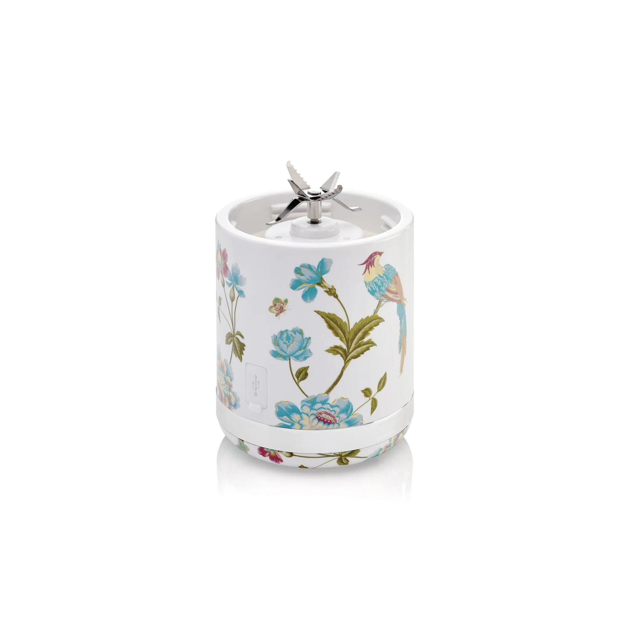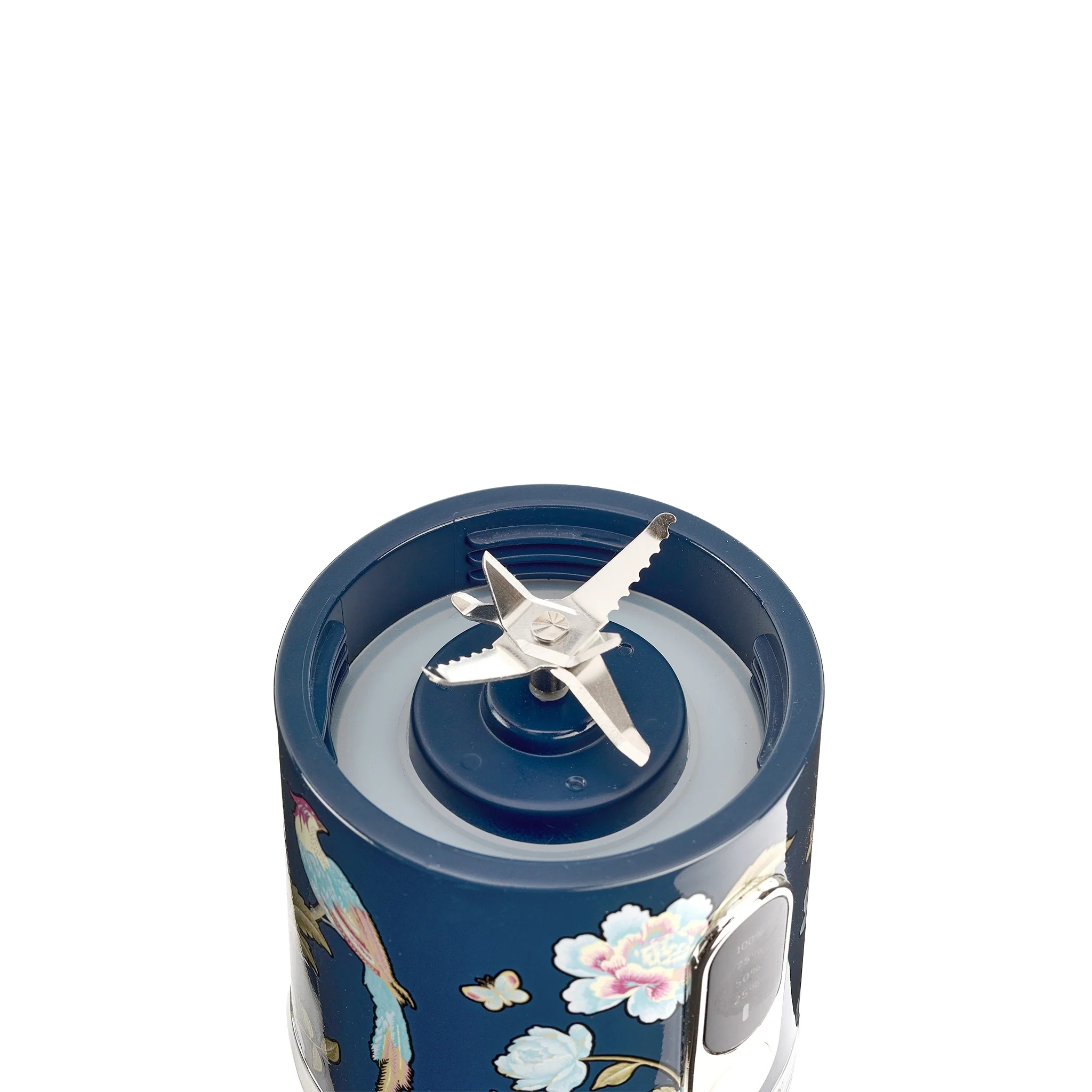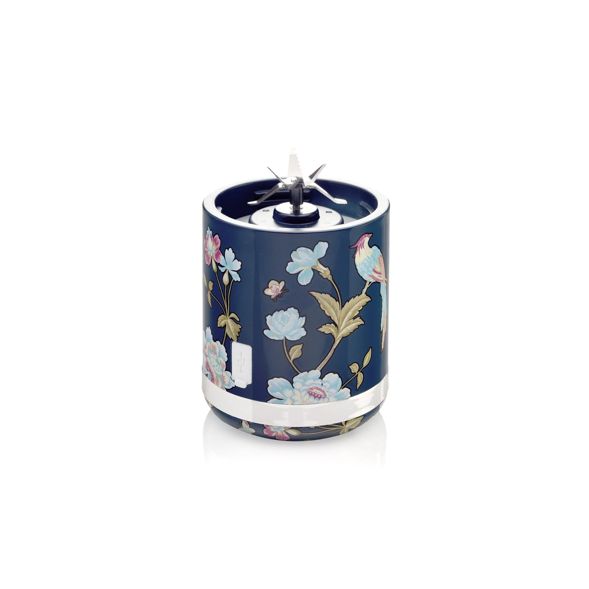 A large 450ml capacity juice cup is on top of the device. Meaning no residue collects around the base. When your drink is ready, remove the cup, and place the screw-fit drinking cap (provided) on the top. Simple! It is incredibly lightweight, perfect for packing into your bag or carrying around with you during the day. It also features washable plastic housing, easy to clean and use. This is the perfect combination of convenience and power and will transform how you make refreshing drinks. Whether heading to the office, off to school, working out at the gym or needing a smoothie in a hurry, this device is perfect for you. As if that isn't enough, it features a stunning individually handmade Laura Ashley Elveden Navy designer print finish.
