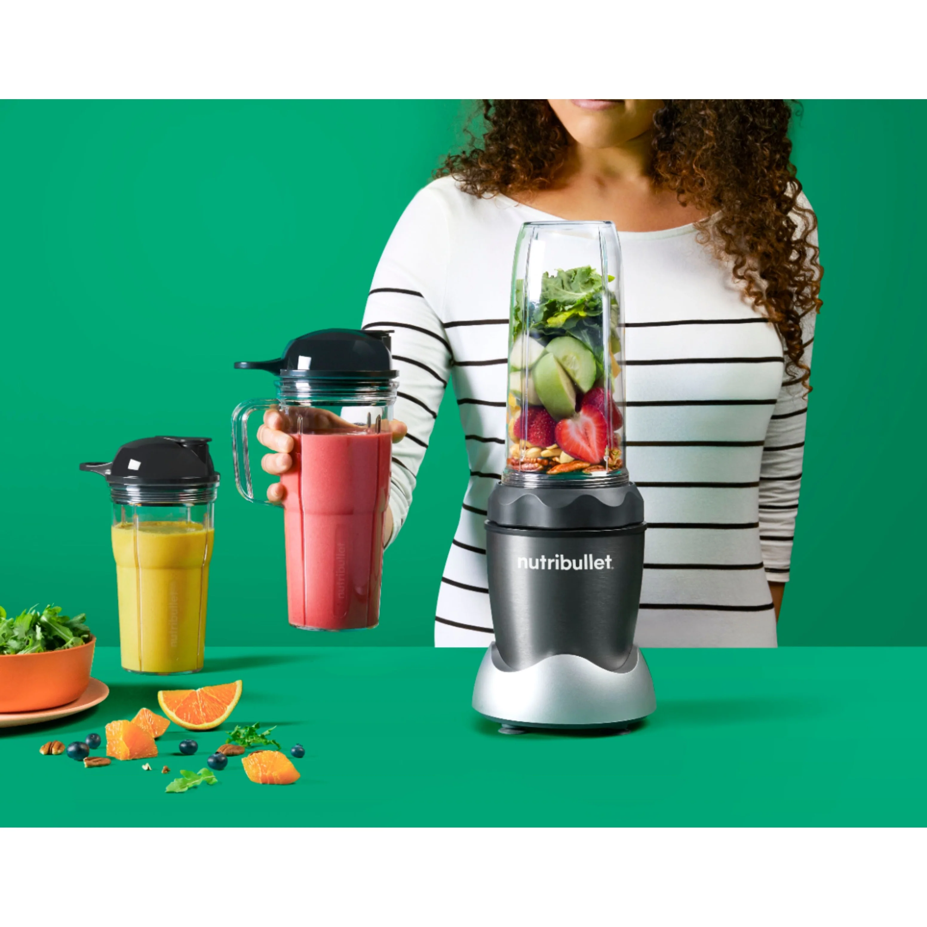 The NutriBullet Pro 1000 is strong, sleek and simple - a compact powerhouse boasting 1000 watts of blending power to handle tough seeds, nuts, whole fruits and more. Its new, ergonomically designed extractor blade locks perfectly into place with every use. And, as always, it carries out our signature nutrient extraction abilities, delivering optimal nutrition in every superfood smoothie it creates. NutriBullet PRO 1000 is strong sleek and simple, allowing you to blend tougher ingredients into better nutrition. NutriBullet PRO 1000 is small but mighty with 1000 watts of power to blend anything from apples to almonds. It also features our redesigned easy-twist extractor blade, which releases from the base and cup with a flick of the wrist.