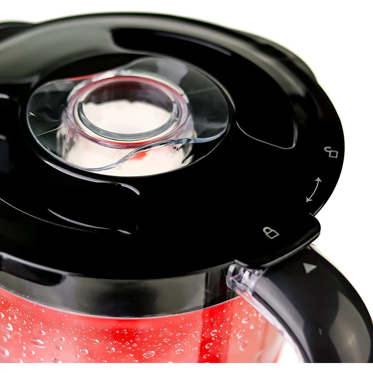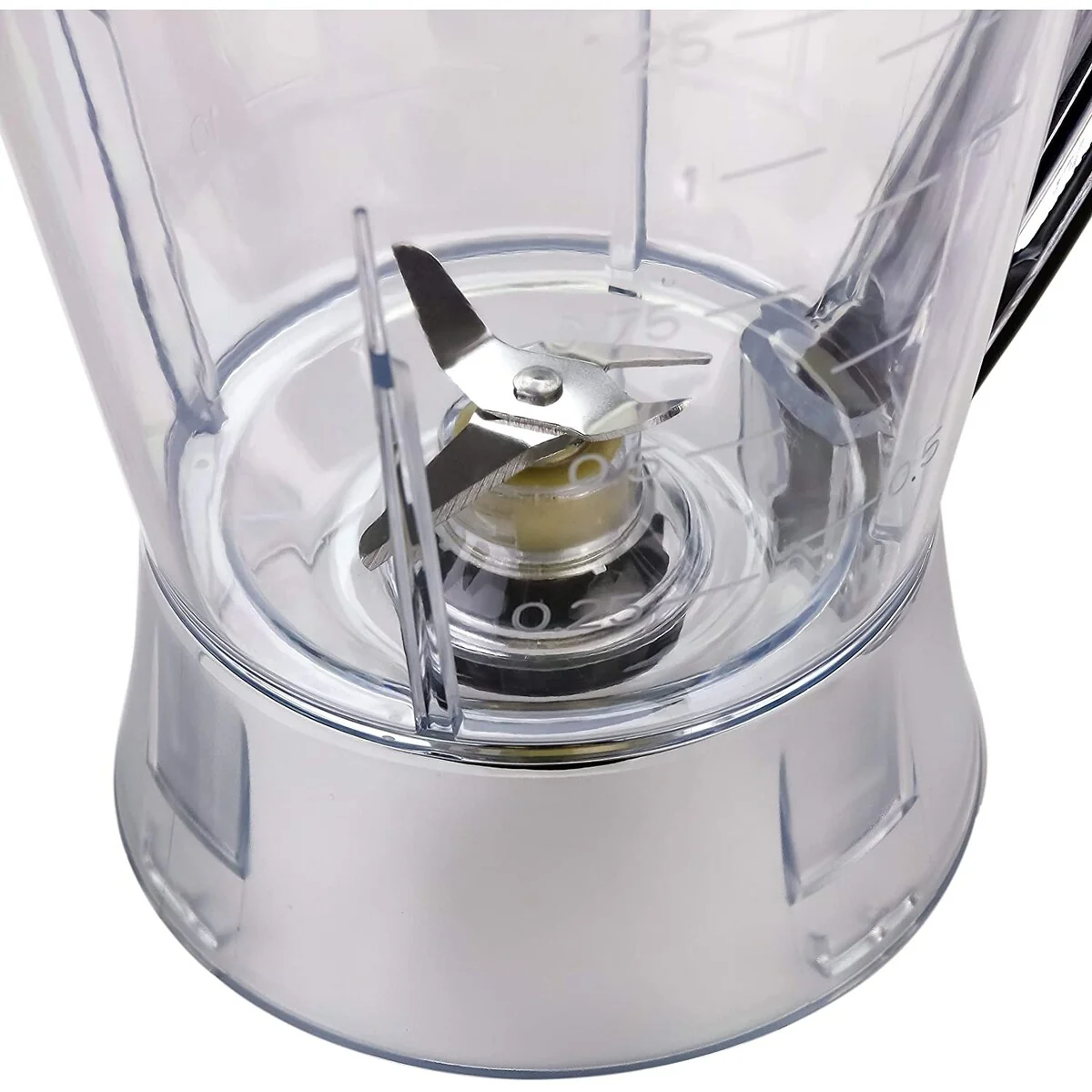 It’s a high-quality blender that can offer your perfect drink on a hot day. If features a powerful 400-watt motor and sharp stainless steel blades that handle even the toughest ingredients. It can blend ingredients quickly to a perfectly smooth consistency with its 2-blending speed settings with pulse operation, and includes a 1.5-liter BPA-free blender jar with a filler cap that reduces backsplash when adding liquids, fruits or vegetables; plus it features anti-skid feet for extra safety and stability.