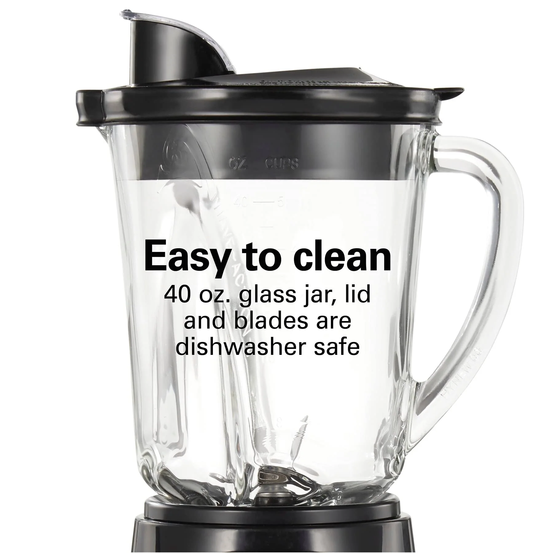 EASY TO CLEAN WITH DISHWASHER SAFE GLASS JAR, LID AND BLADES: Blending multiple servings is easy with the glass jar that holds 40 ounces; The jar, lid and removable blades on the blender are all dishwasher safe