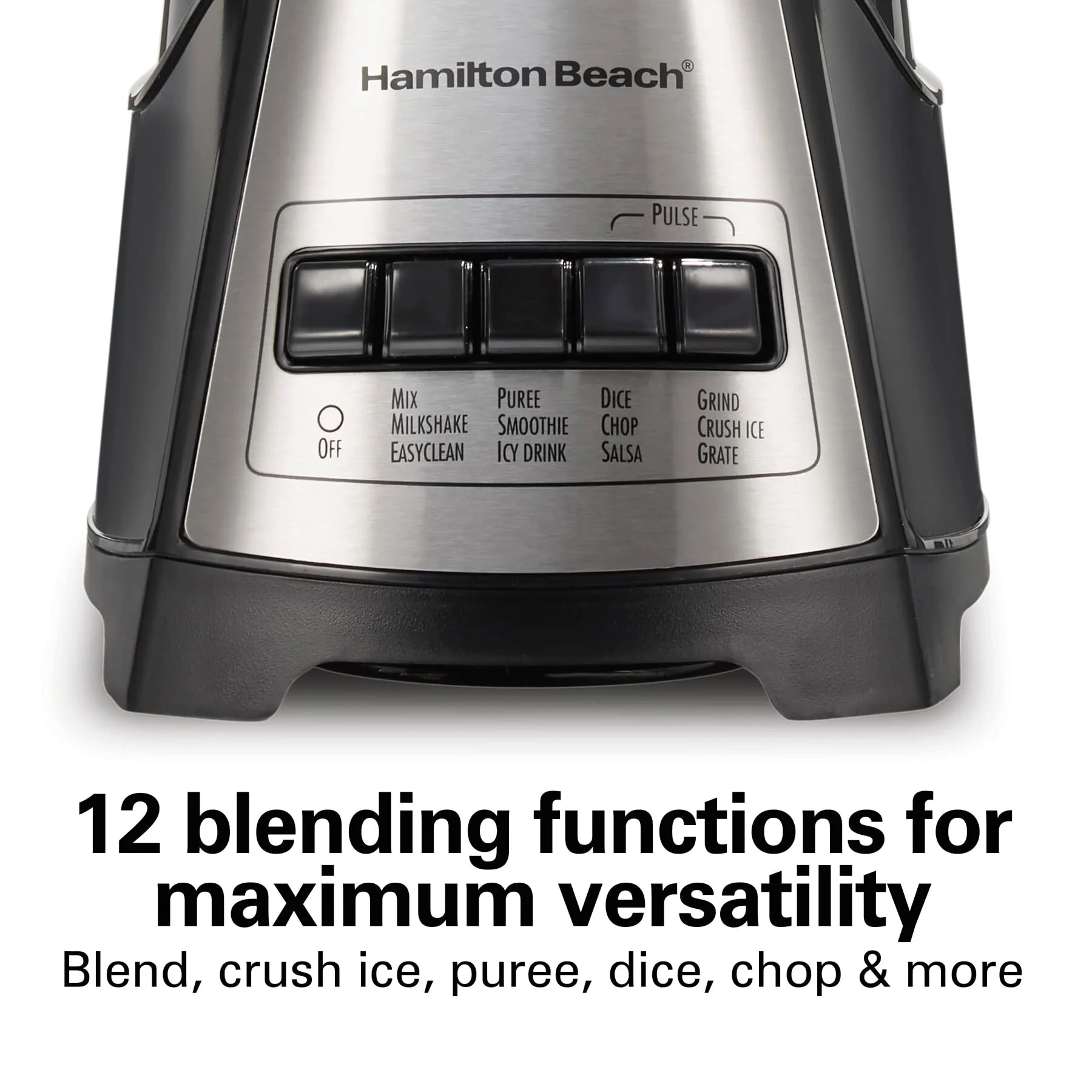 12 BLENDING FUNCTIONS FOR MAXIMUM VERSATILITY: This multi-function blender has 12 functions controlled by 5 simple buttons on the easy-to-read control panel; It blends and crushes ice for smoothies and milkshakes, purees, dices, chops and more