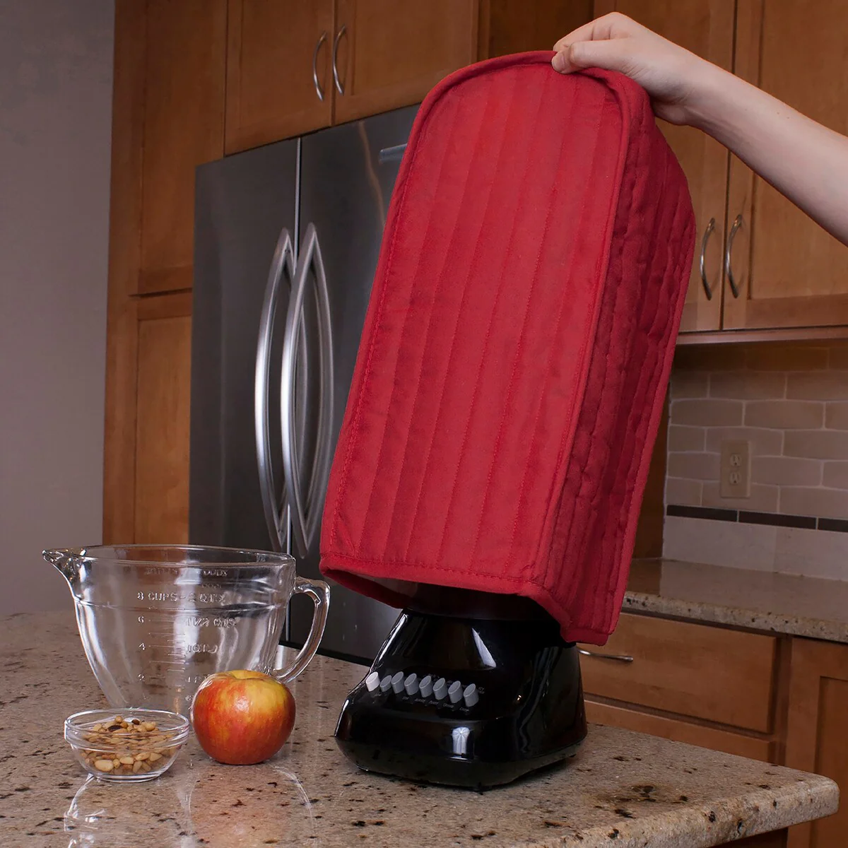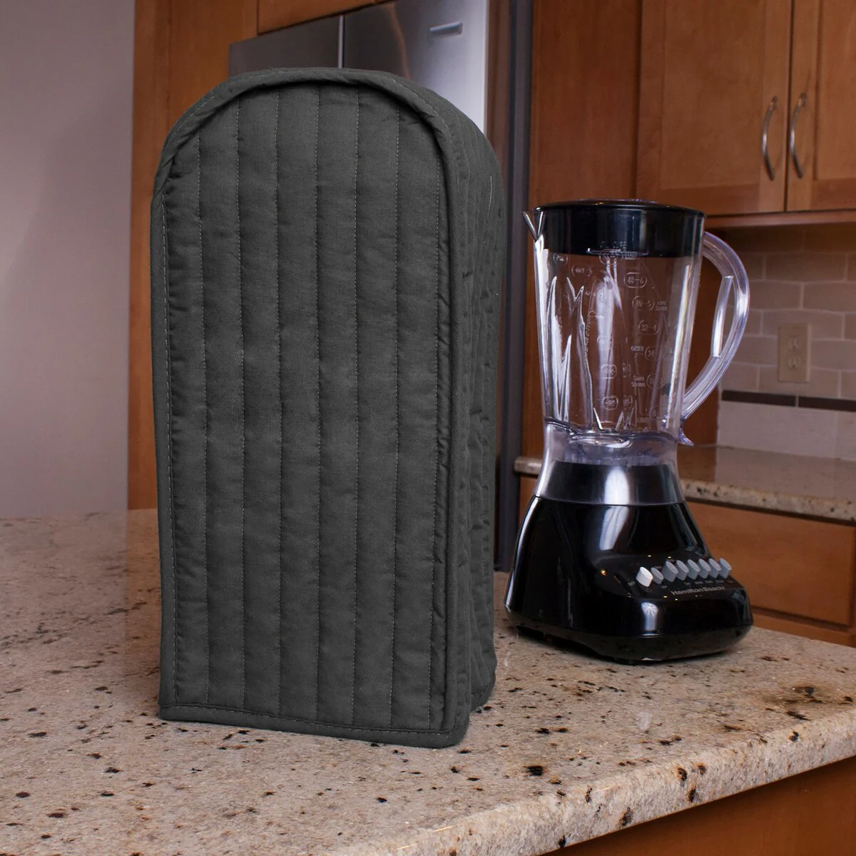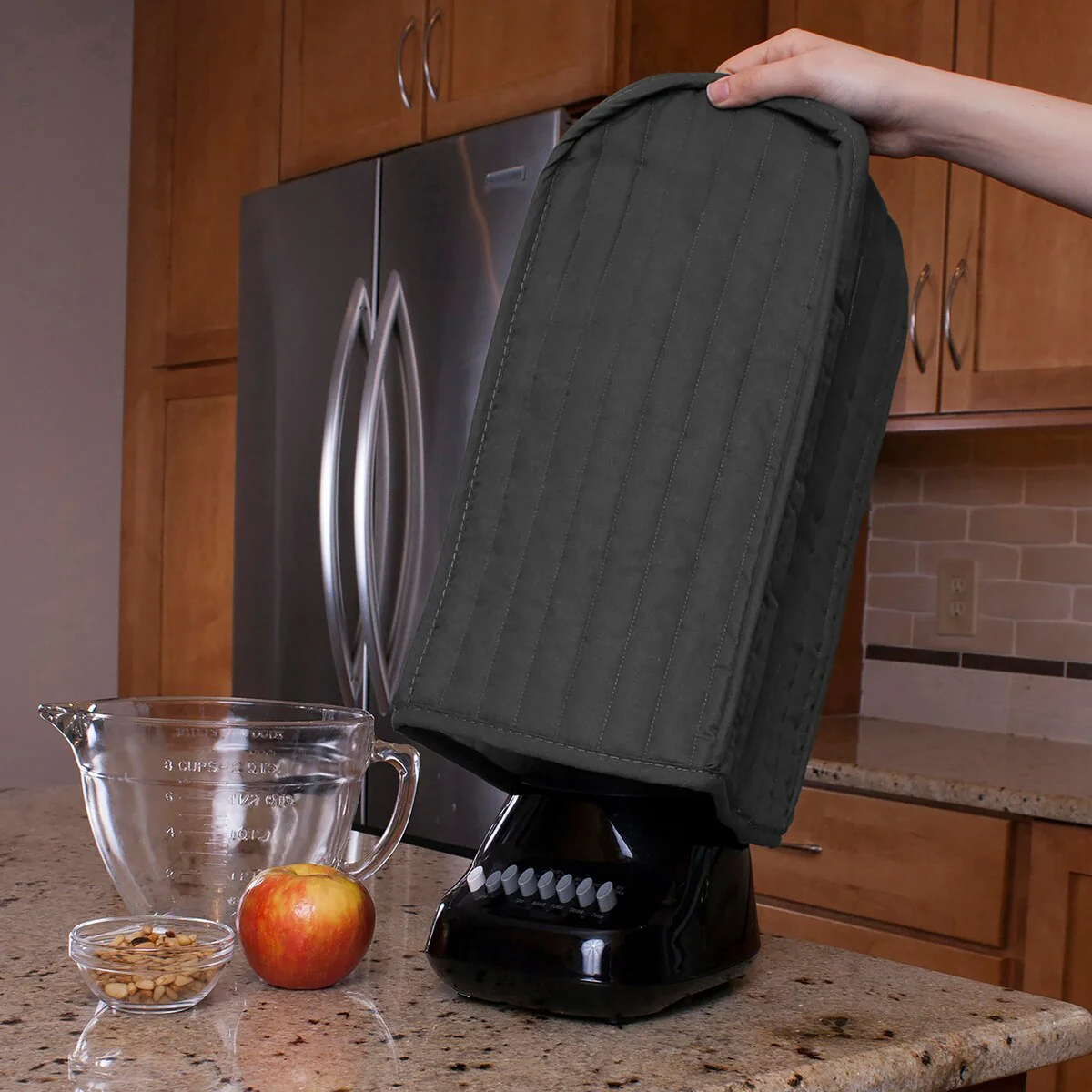 Keep your favorite kitchen gadget looking in tip-top shape with this RITZ Blender Cover crafted to keep your appliance clean and damage-free. This handsome quilted cover measures 7 in. by 15.5 in. by 5.75 in. (17 cm by 39 cm by 14 cm) and is designed to accommodate most standard blenders, slipping on and off with ease. Fashioned from a polyester/cotton blend, this durable cover will keep your appliance free of scratches and scuff marks when stored. Check out the entire RITZ line of appliance covers to keep all of your favorite kitchen devices in pristine condition. Machine washable. Appliance not included
