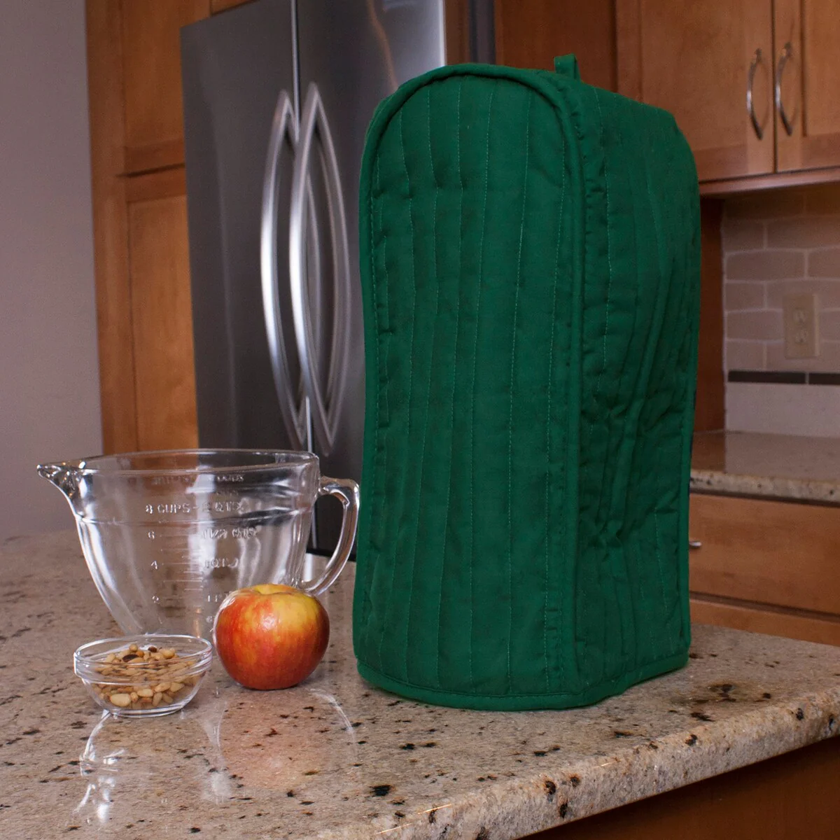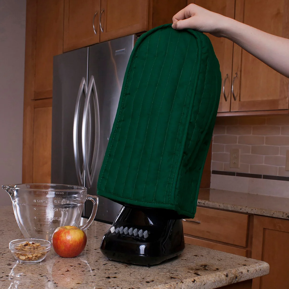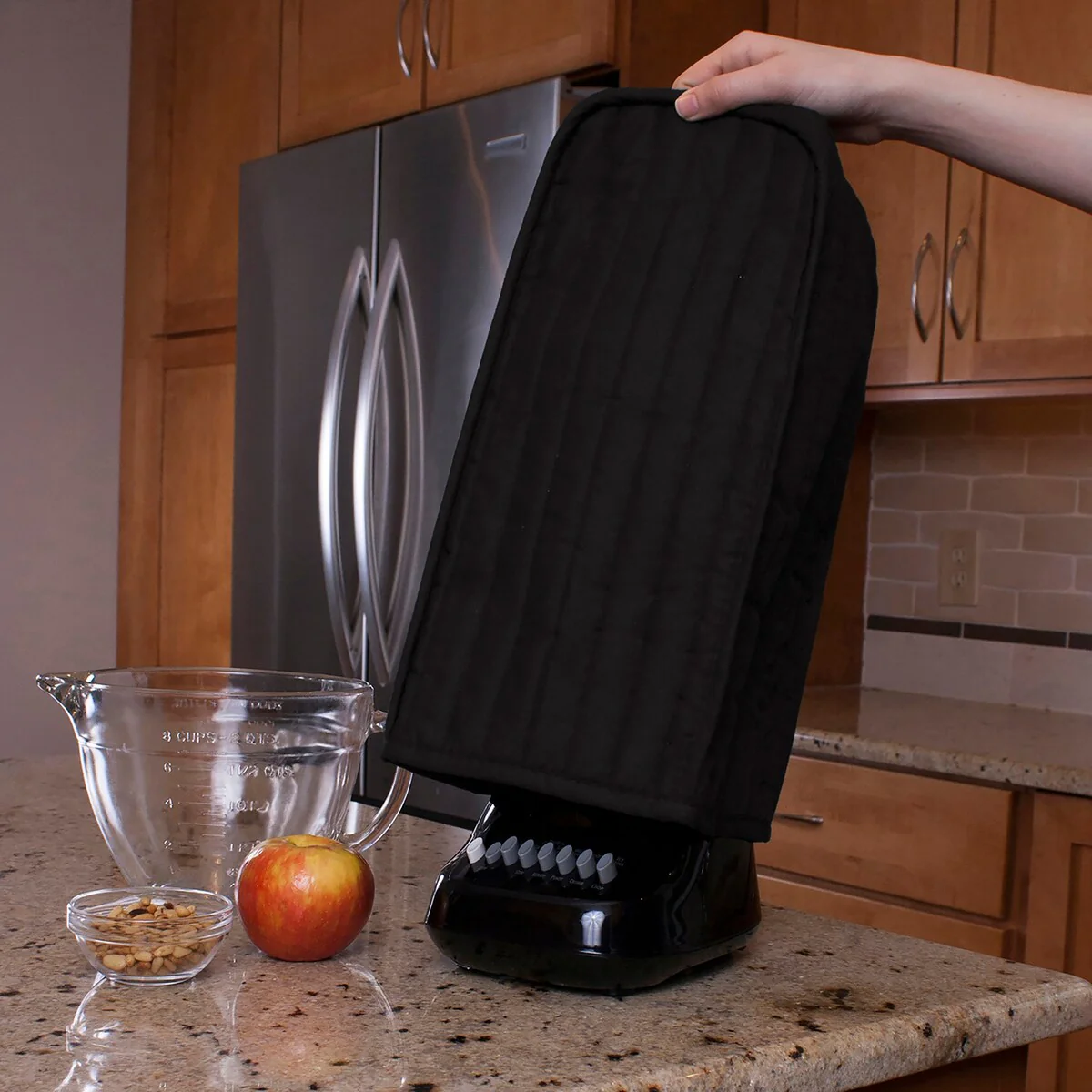 Keep your favorite kitchen gadget looking in tip-top shape with this RITZ Blender Cover crafted to keep your appliance clean and damage-free. This handsome quilted cover measures 7 in. by 15.5 in. by 5.75 in. (17 cm by 39 cm by 14 cm) and is designed to accommodate most standard blenders, slipping on and off with ease. Fashioned from a polyester/cotton blend, this durable cover will keep your appliance free of scratches and scuff marks when stored. Check out the entire RITZ line of appliance covers to keep all of your favorite kitchen devices in pristine condition. Machine washable. Appliance not included