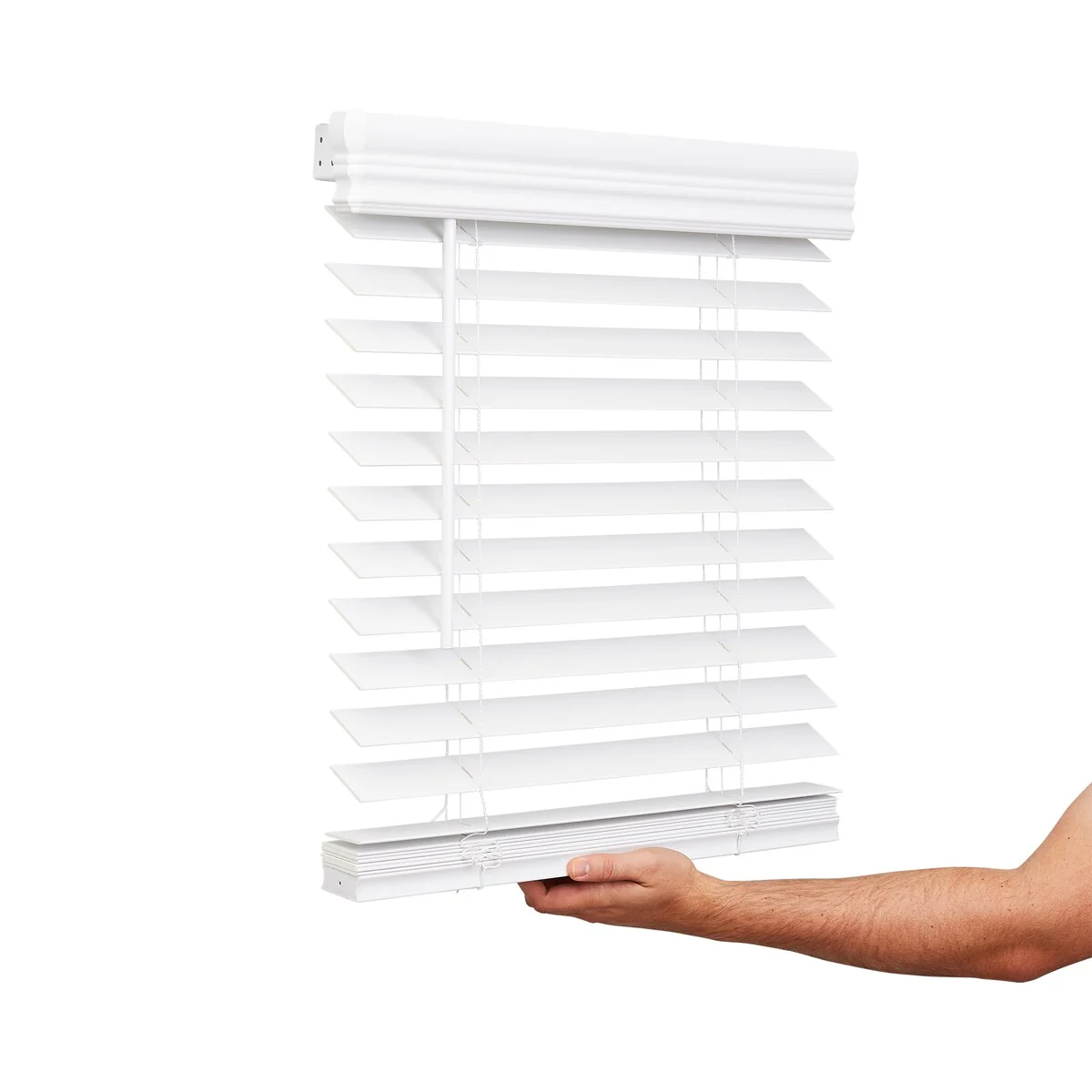 Lotus and Windoware horizontal blinds are 1/2' smaller than stated width to allow for mounting blind inside window. For outside-mount blinds, increase the width of the blind for the coverage you desire, plus 1/2'. The Lotus and Windoware Cordless 2' Faux Wood Blind combines the strength of a sturdy steel headrail with high quality Room-Darkening Faux Wood slats. Lotus and Windoware Faux Wood Blinds include a stylish Royal Crown valance for a premium look. The New Child Safe design eliminates access to cords and raising or lowering the blind is simple. With over 300 stock sizes, there is a blind for just about every window. Lotus and Windoware Cordless 2' Faux Wood blinds will stand the test of time while providing a safe option for covering your windows.