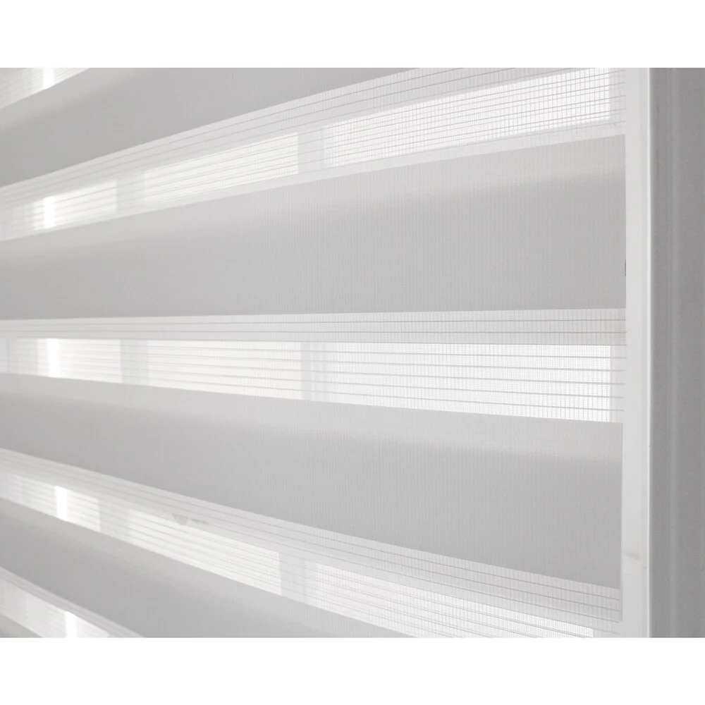 Transform your room with the Achim Cordless Celestial Sheer Double Layered Shade. Enjoy natural light and privacy with its open setting, or completely darken your space by closing the panels. This shade features a cordless design for effortless operation, and an aluminum head rail and mounting hardware for easy installation. Available in white and linen color options.