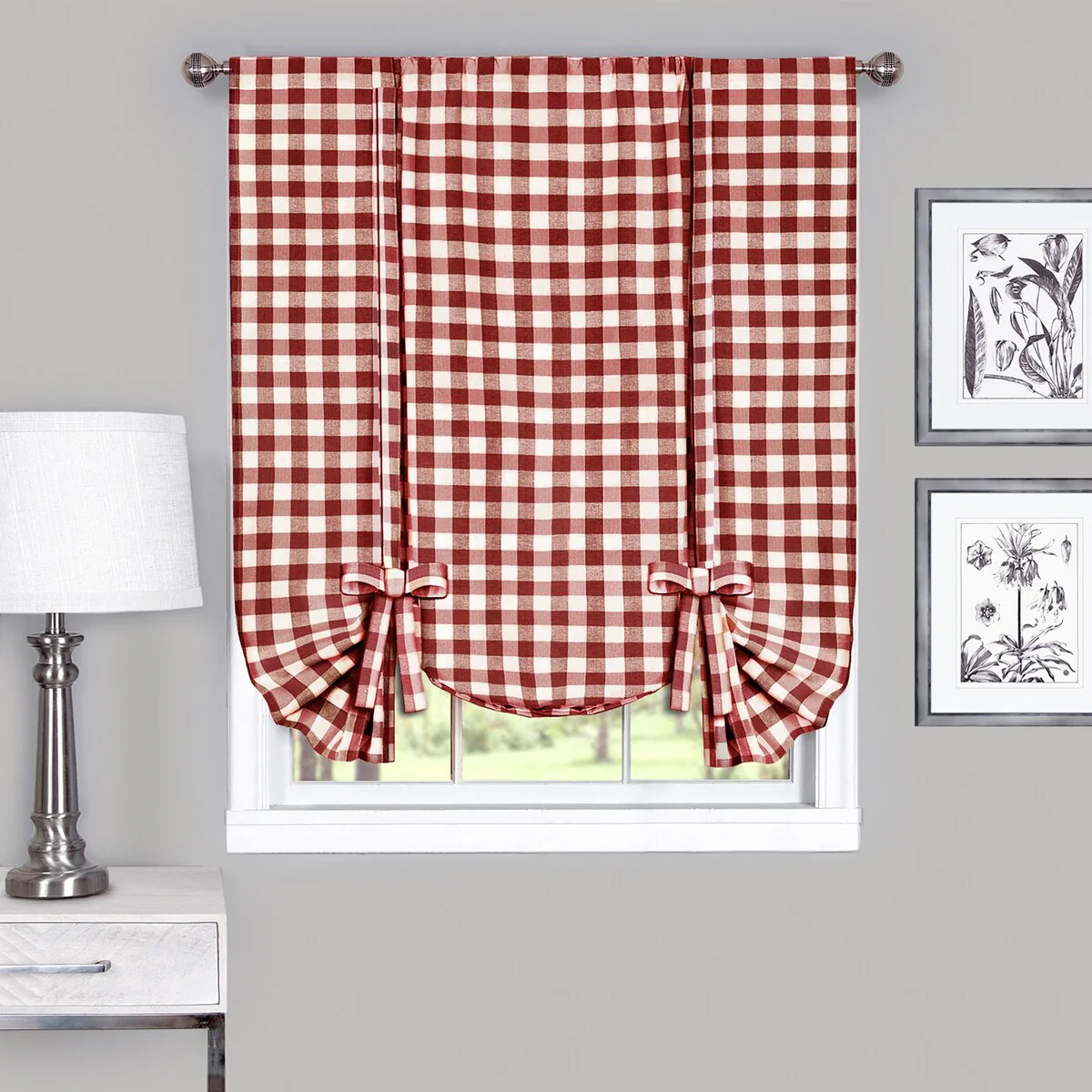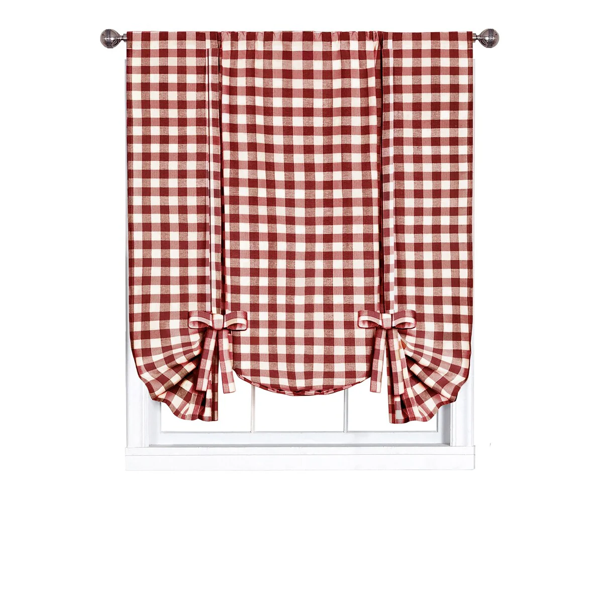 Control sunlight and add a charming touch to your home decor with our Achim Cotton Blend 63-inch Long Buffalo-check Window Tie-Up Shade. This cotton and polyester shade features a durable construction and stylish buffalo check pattern that brings a casual farmhouse feel to any room. Use the two tie-ups to elegantly raise the shade to let in some light and create a cozy atmosphere.