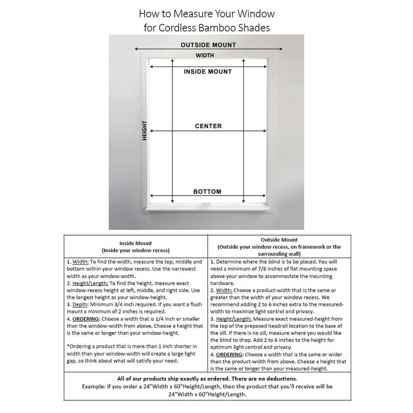 Bring the beauty of natural bamboo into your home with our Arlo Blinds Tuscan Cordless Lift Bamboo Roman Shades. These shades offer a gentle filtering of sunlight, creating a warm and inviting atmosphere in any room. The cordless lift system makes it easy to adjust the shades as needed, while the Roman-style design adds a touch of elegance to your decor. Perfect for inside or outside window mounting, these shades are available in various width sizes to fit your space.