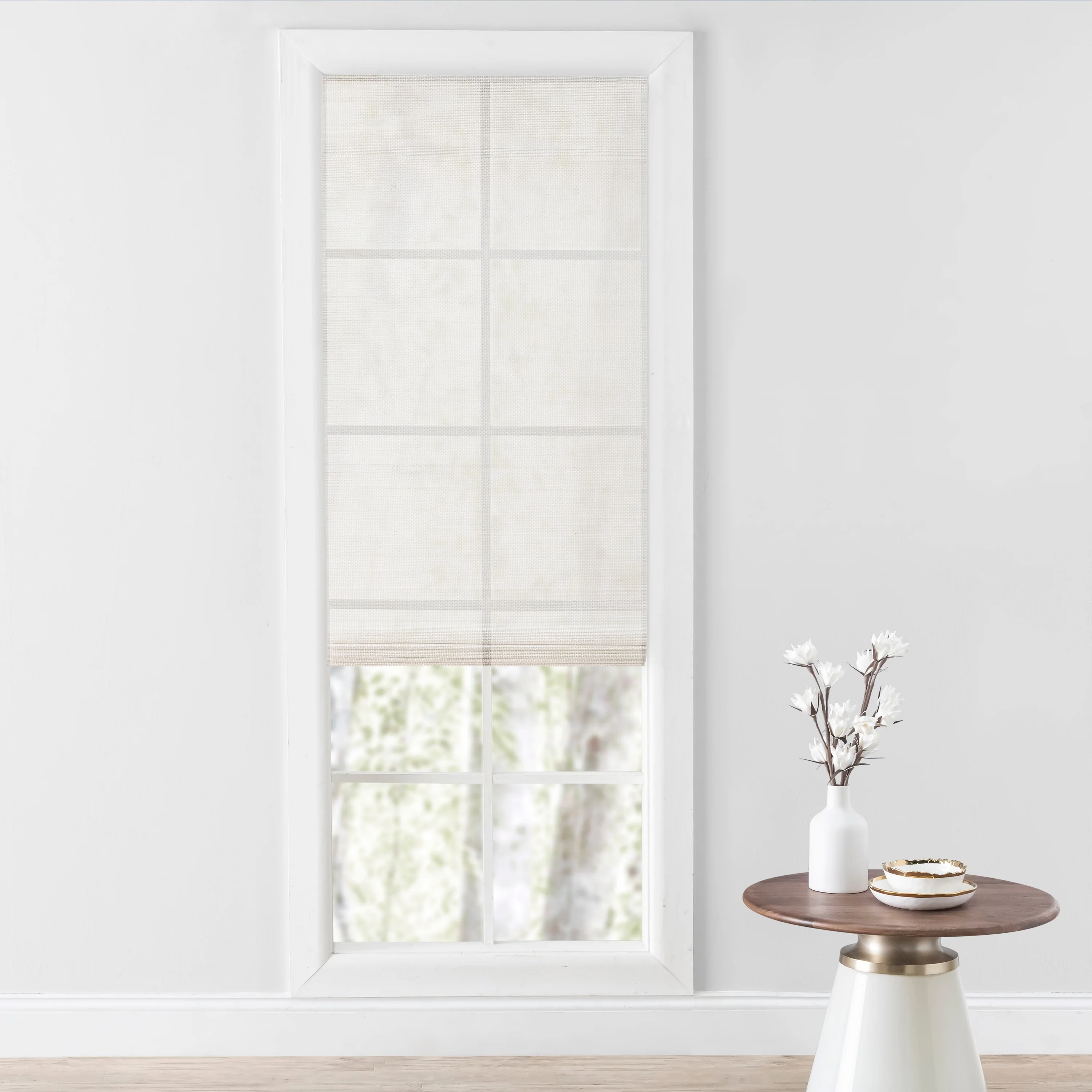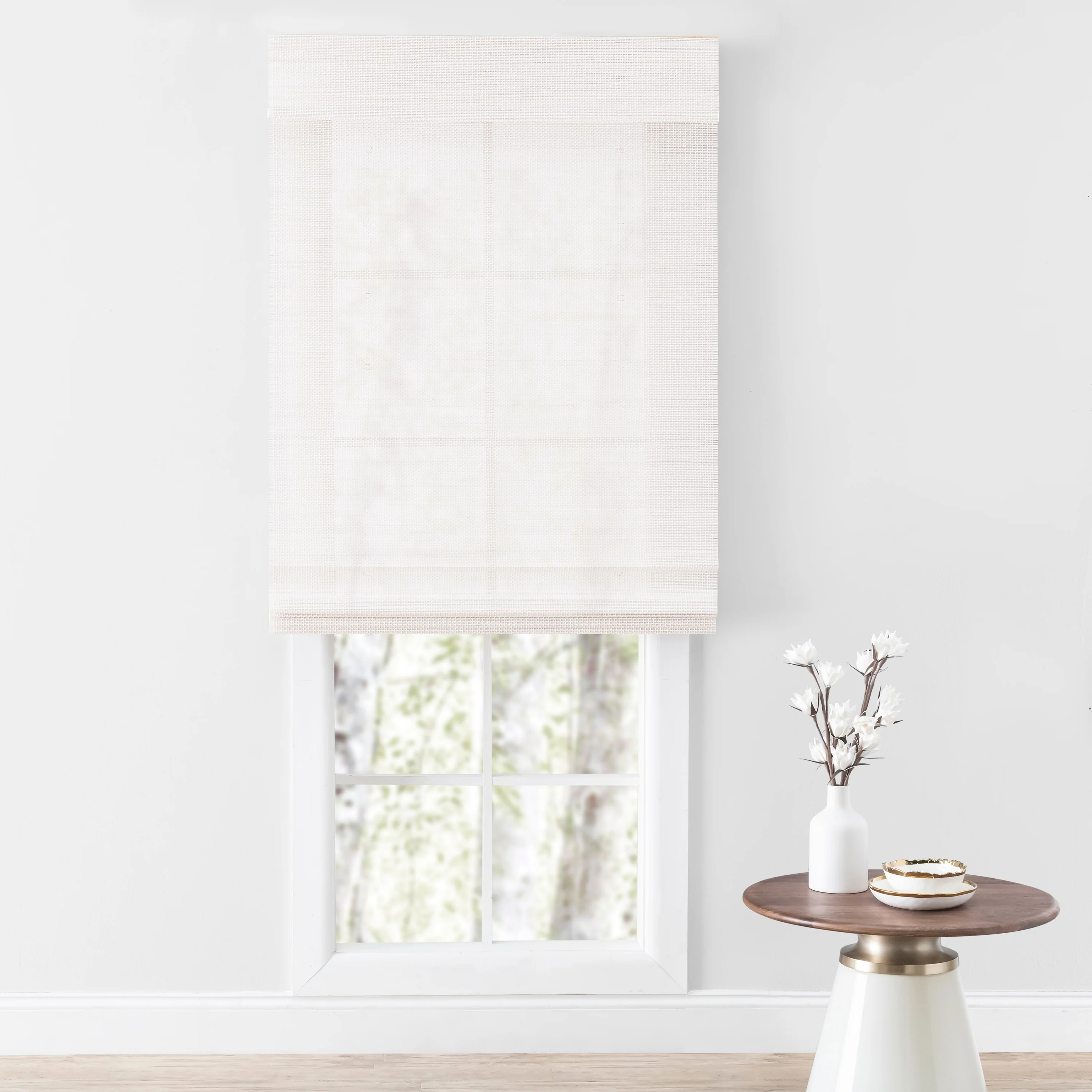 - CORDLESS ROMAN SHADE: A modern shade that give a custom like look. Waterfall style feature for a gathered look when raised up or clean seamless look when pulled down for privacy.