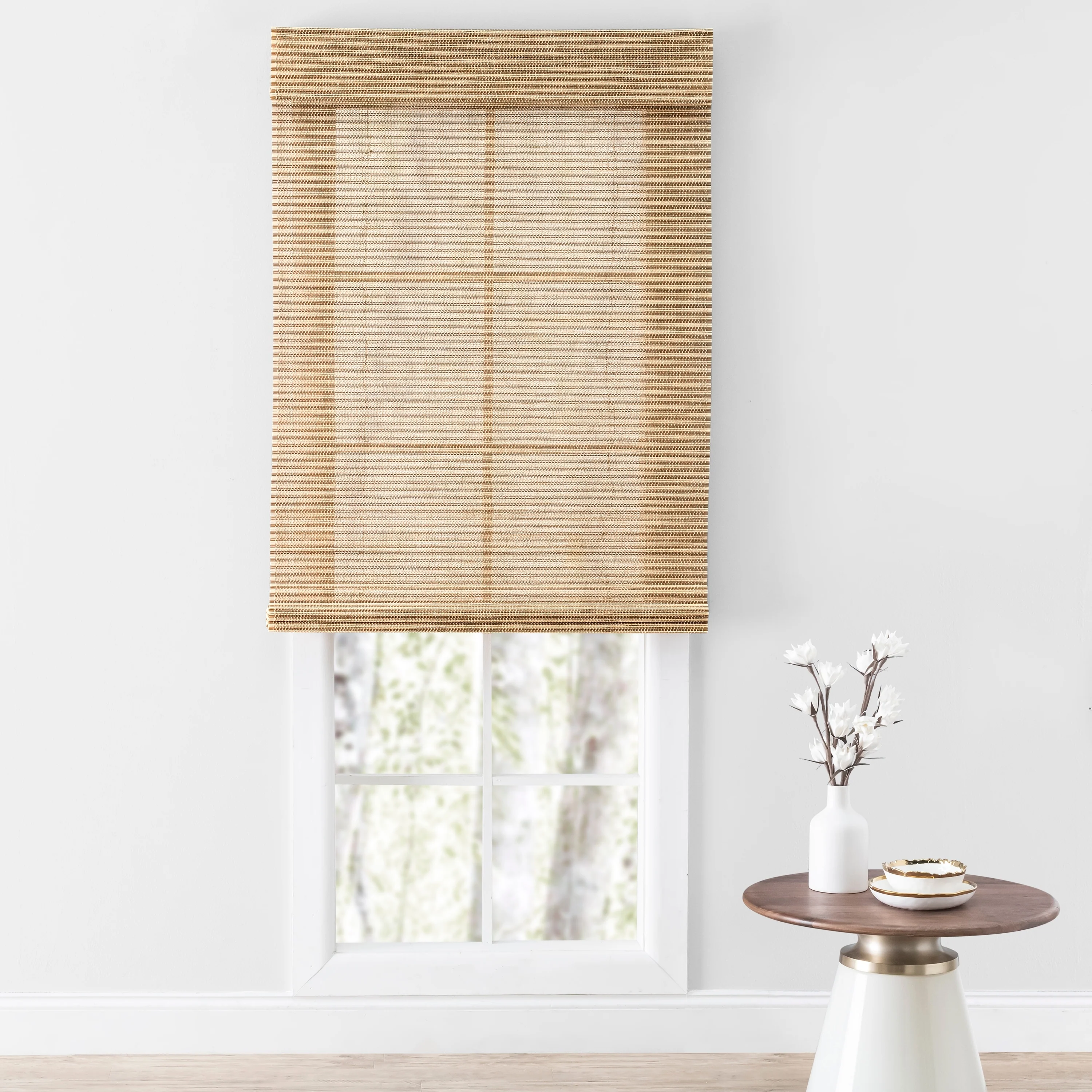 - WOVEN BAMBOO: This woven bamboo material is both casual and elegant, creating a warm look and feel in any space. Creates the perfect amount of light filtration maintaining some privacy, while allowing the shade to hang gracefully and beautifully in any room