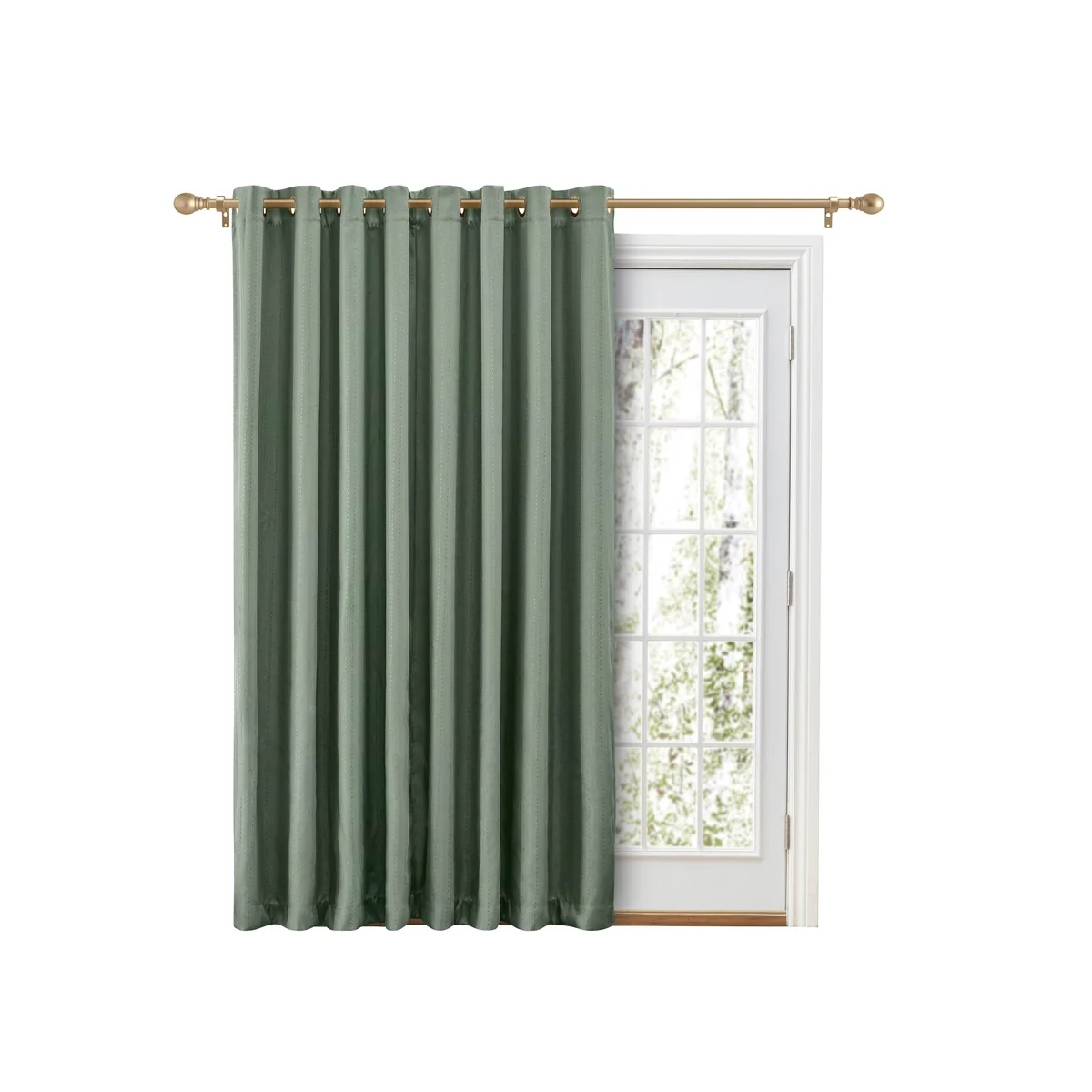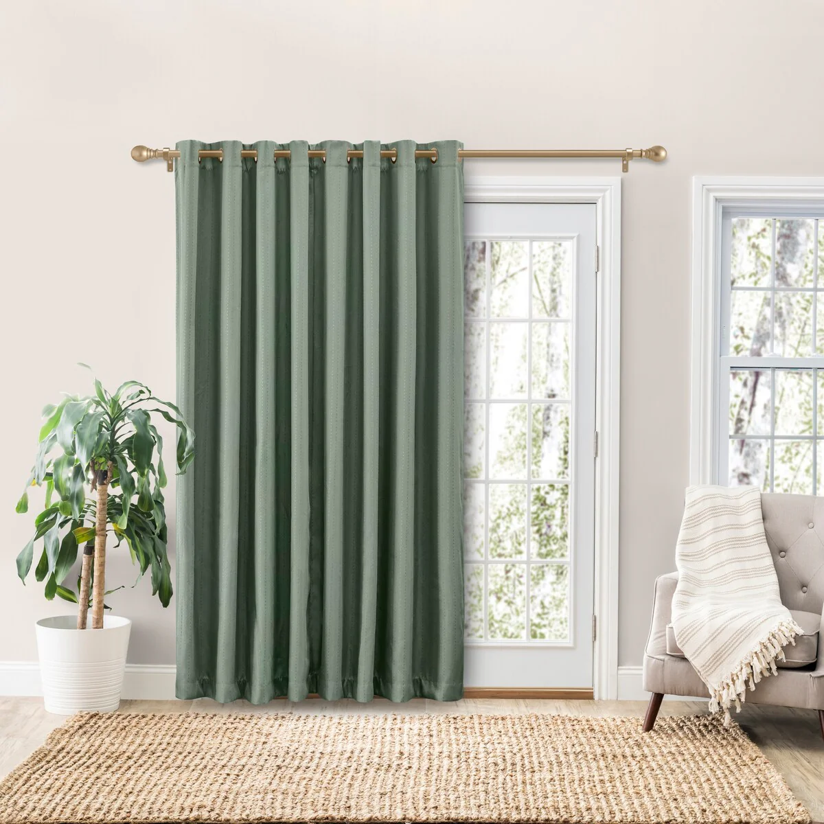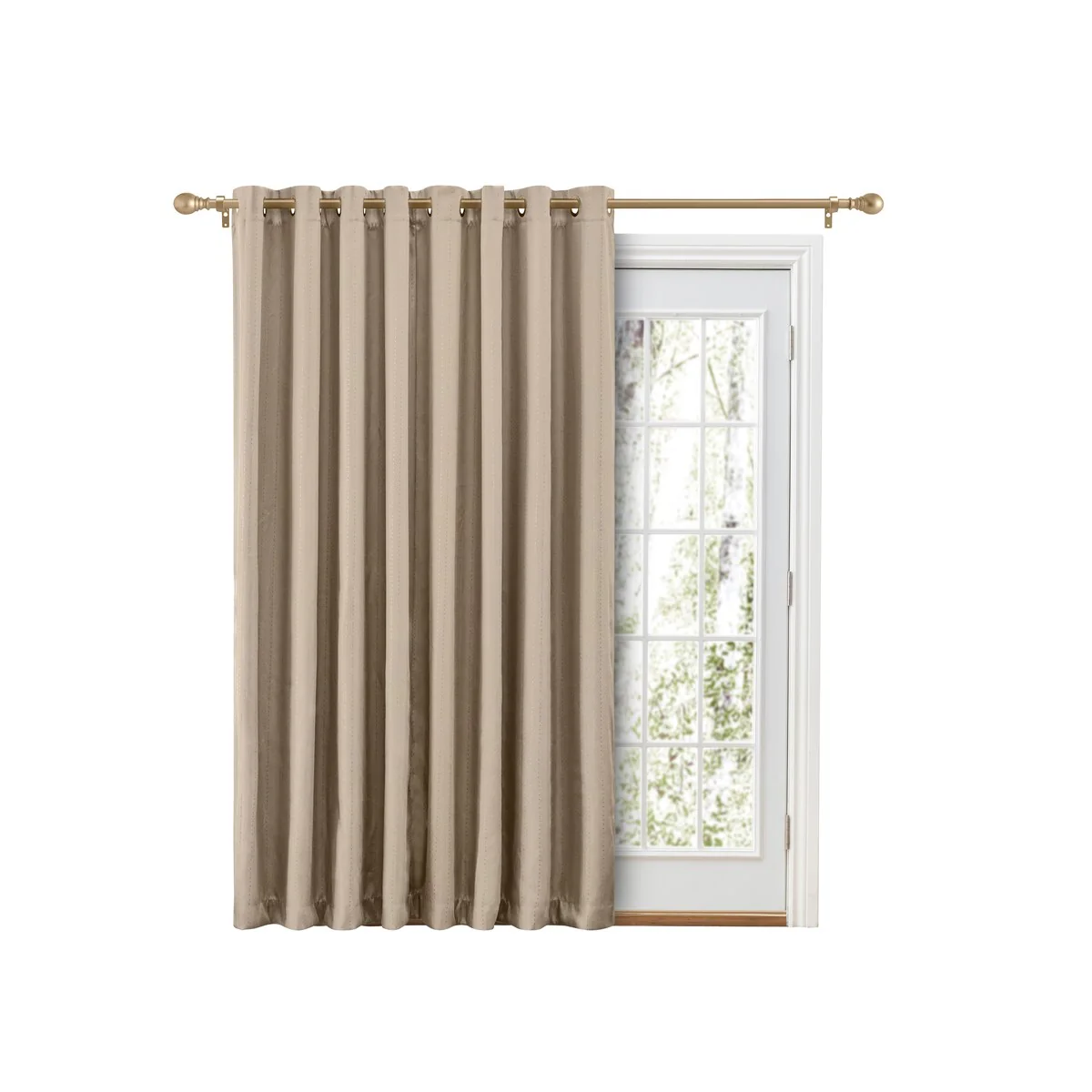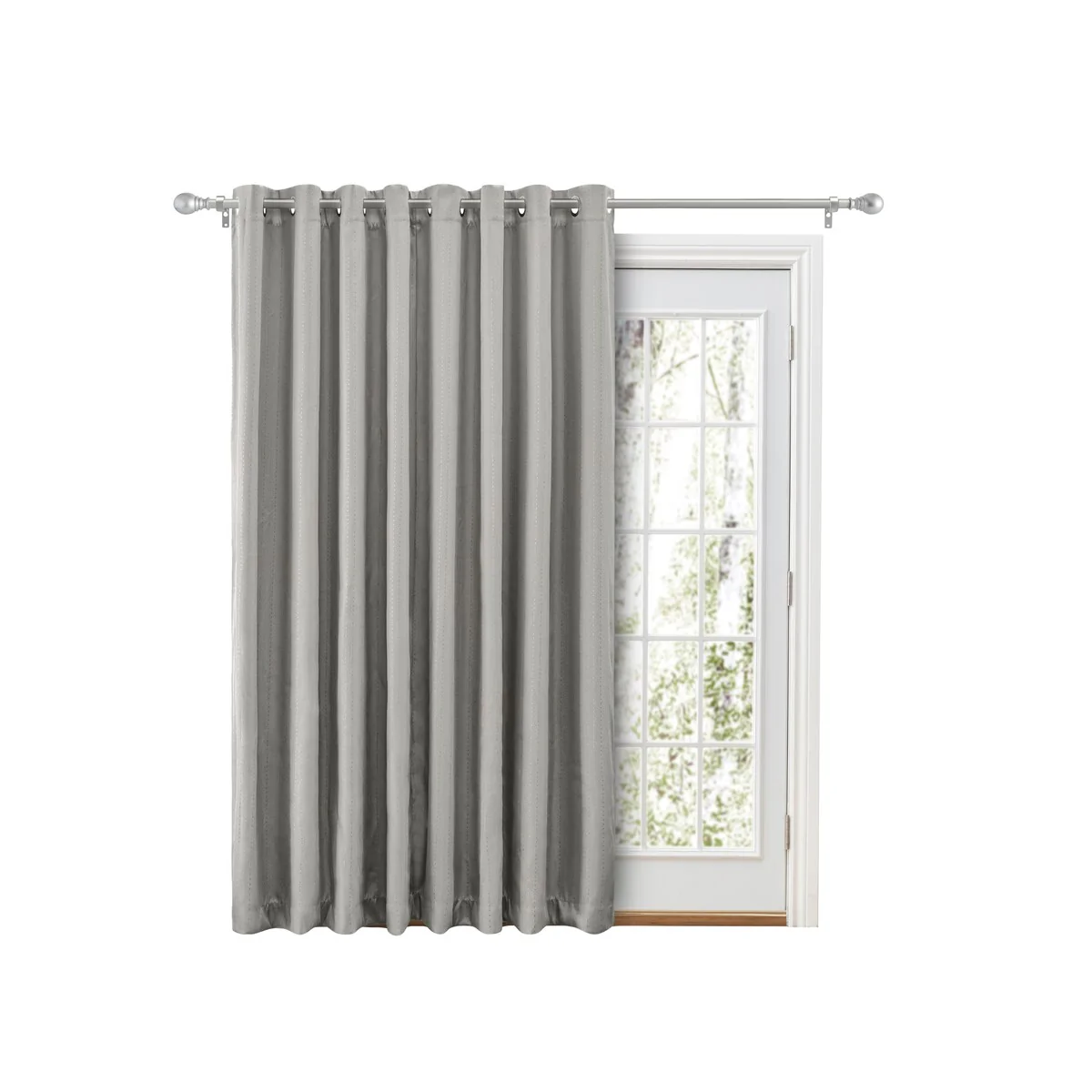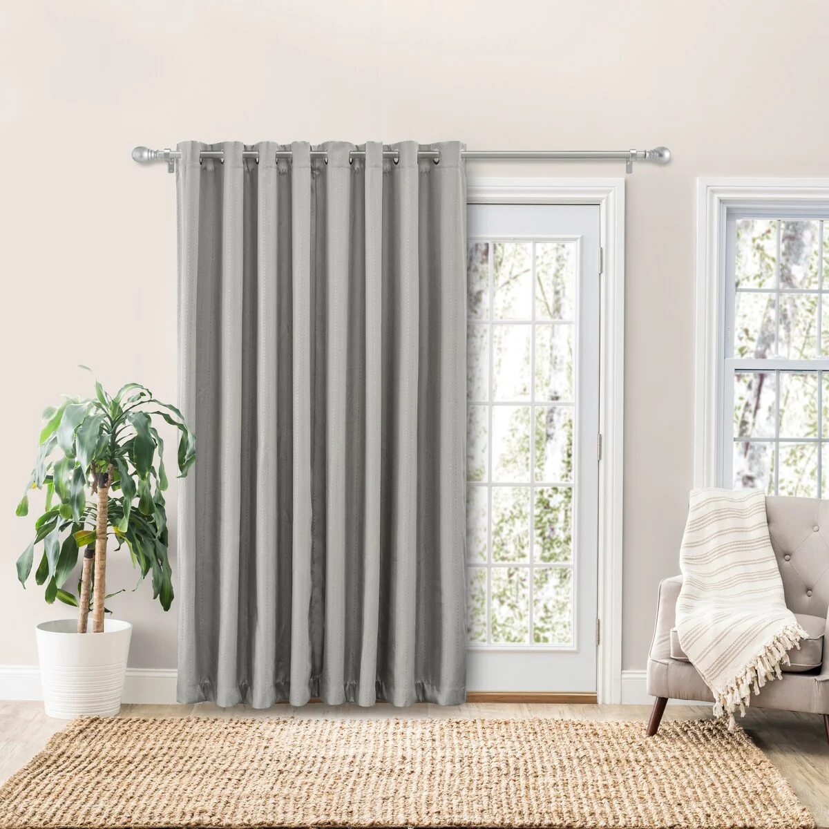 Transform your patio into a cozy oasis with the Grand Pointe Grommet Blackout Patio Panel. Crafted with three layers of yarn, including a black-out layer, this wide panel efficiently blocks out light and keeps your space cool in summer and warm in winter. The textured stripe with vertical decorative stitching and grommet header add a touch of elegance to any decor. Easily slide open and closed using a decorative curtain rod and control outside light with the attachable pull wand included.