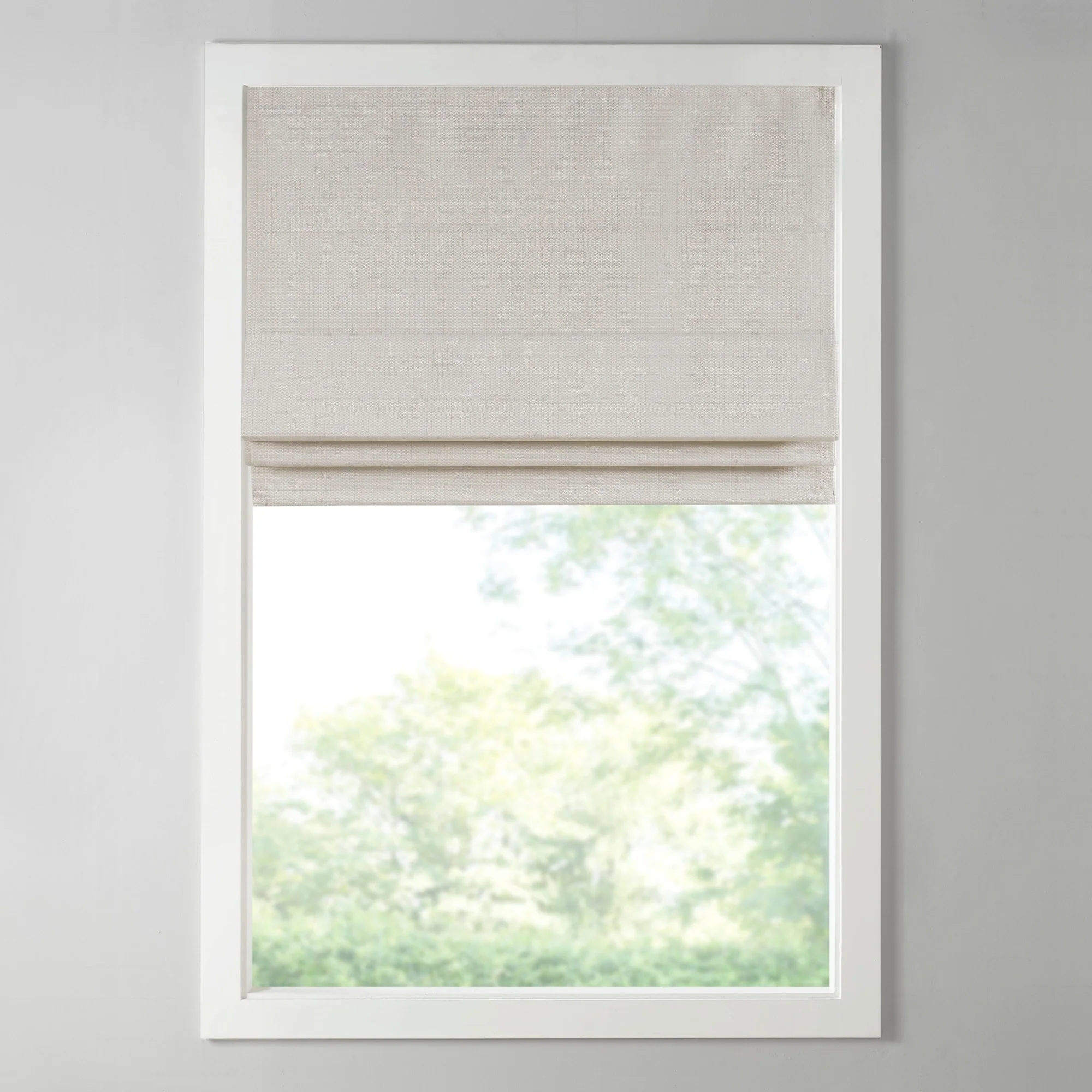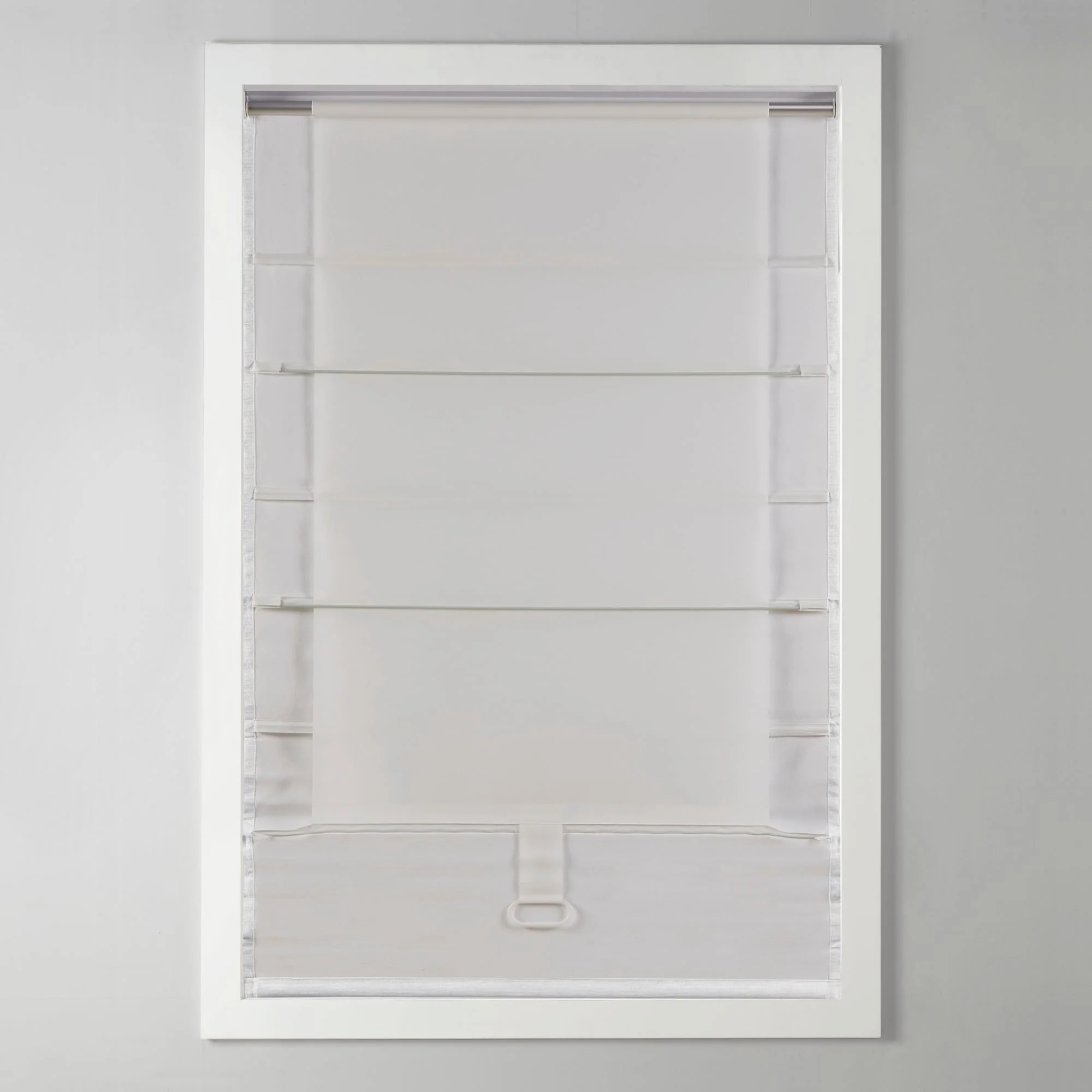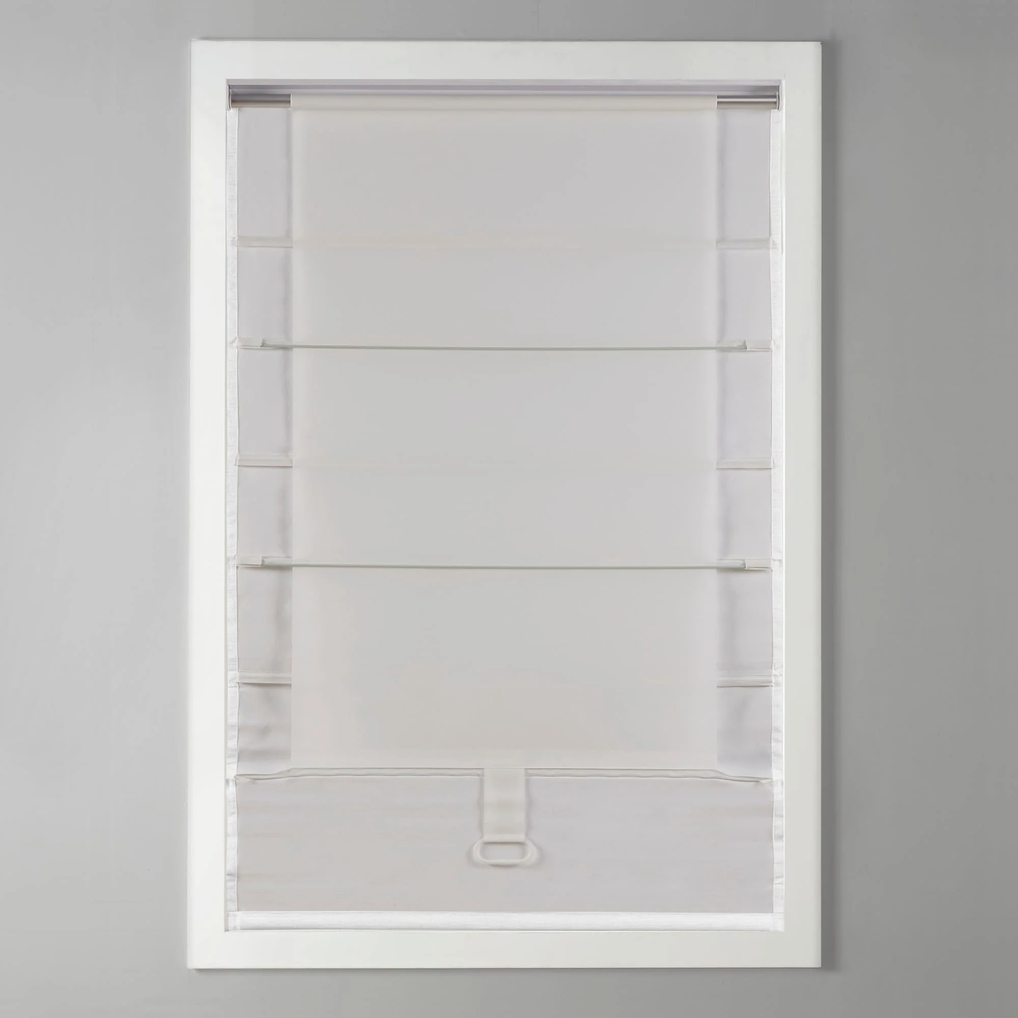 - Casual window treatment Roman Shades 64 inches long (1 panel) in soft white tone