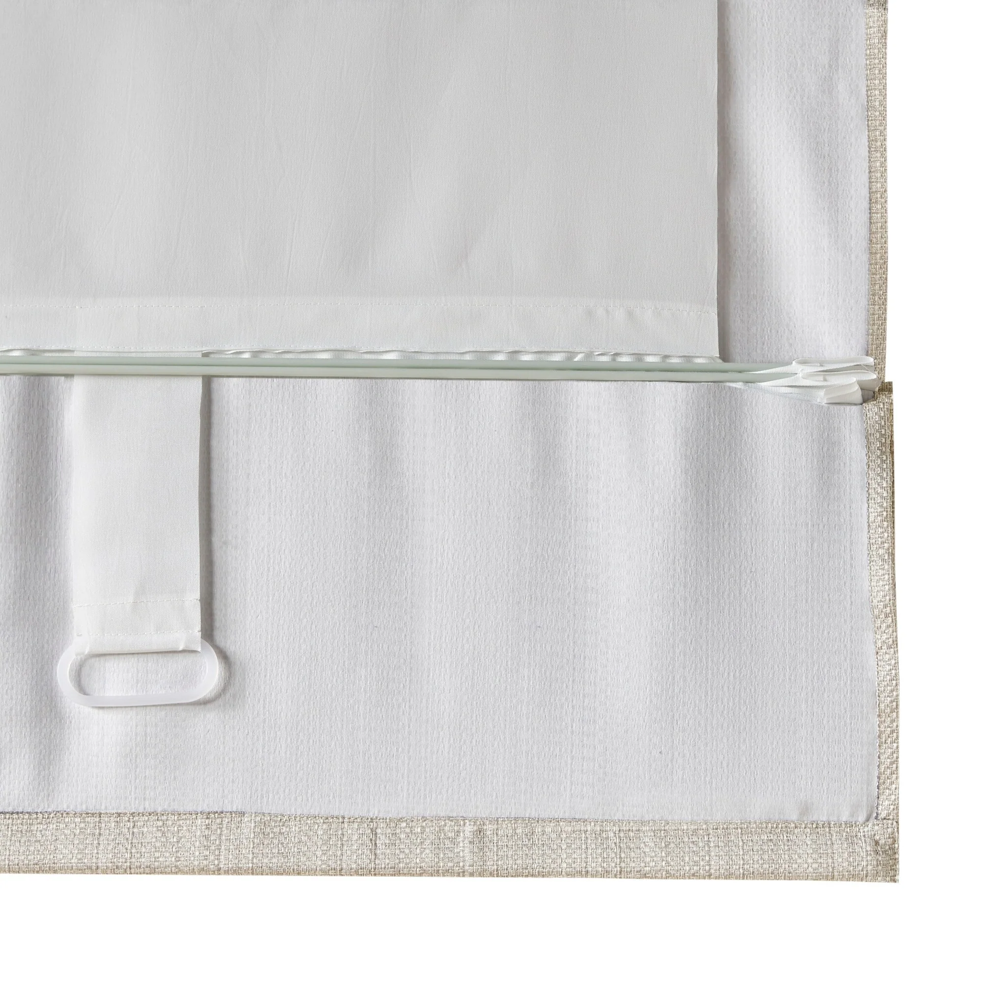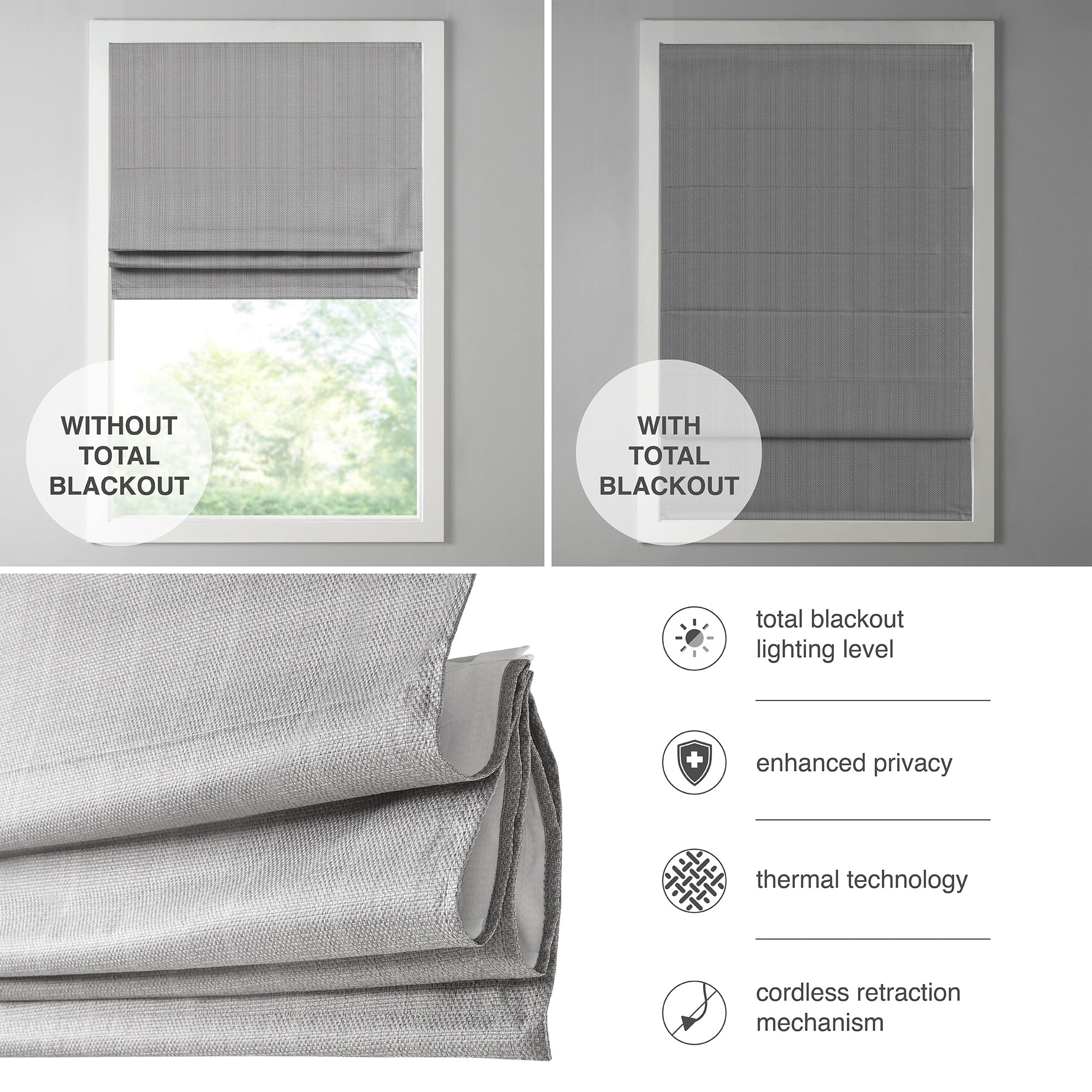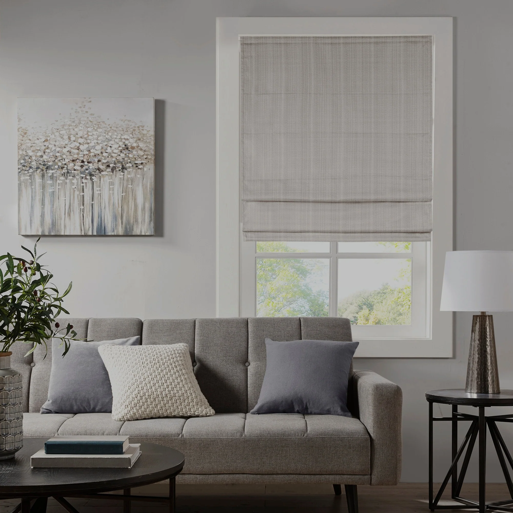 The Madison Park Colm Basketweave Cordless Total Blackout Roman Shade Collection offers an simple and convenient elevates to your home decor. This roman shade features a basket weave texture base fabric that creates a natural look and feel. A thermal foambacking on the reverse provides energy efficiency and maximum privacy; light will come through slightly from stitch due to the nature of basketweave fabric. The cordless retraction mechanism makes it easy to open and close the window shade throughout the day, while the detachable fabric face allows for easier assembly and cleaning by lightly shaking or dusting. Though detachable from the hook and loop fastener, the top face fabric is NOT fully removable. Each shade is also OEKO-TEX certified, meaning it does not contain any harmful substances or chemicals to ensure quality comfort and wellness.