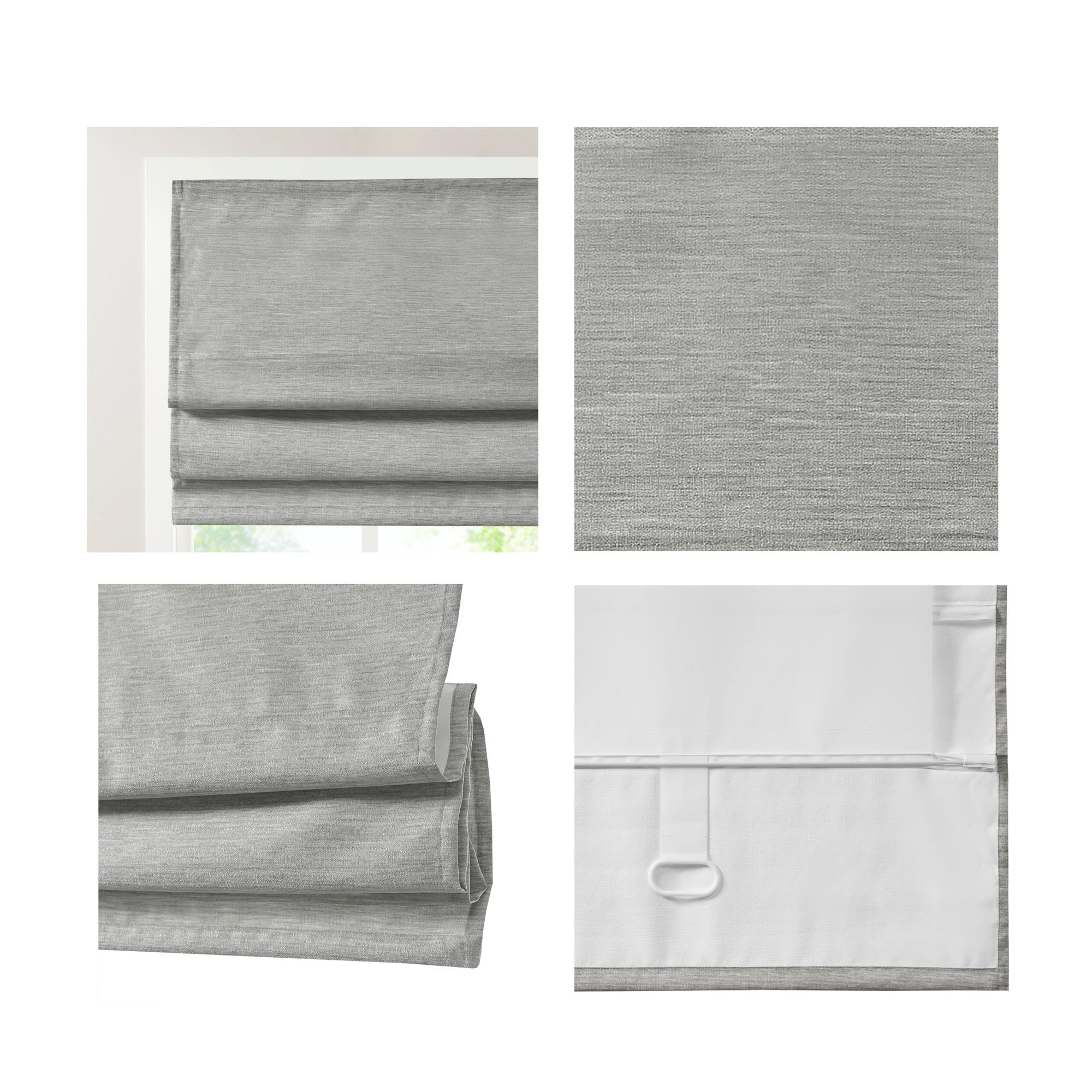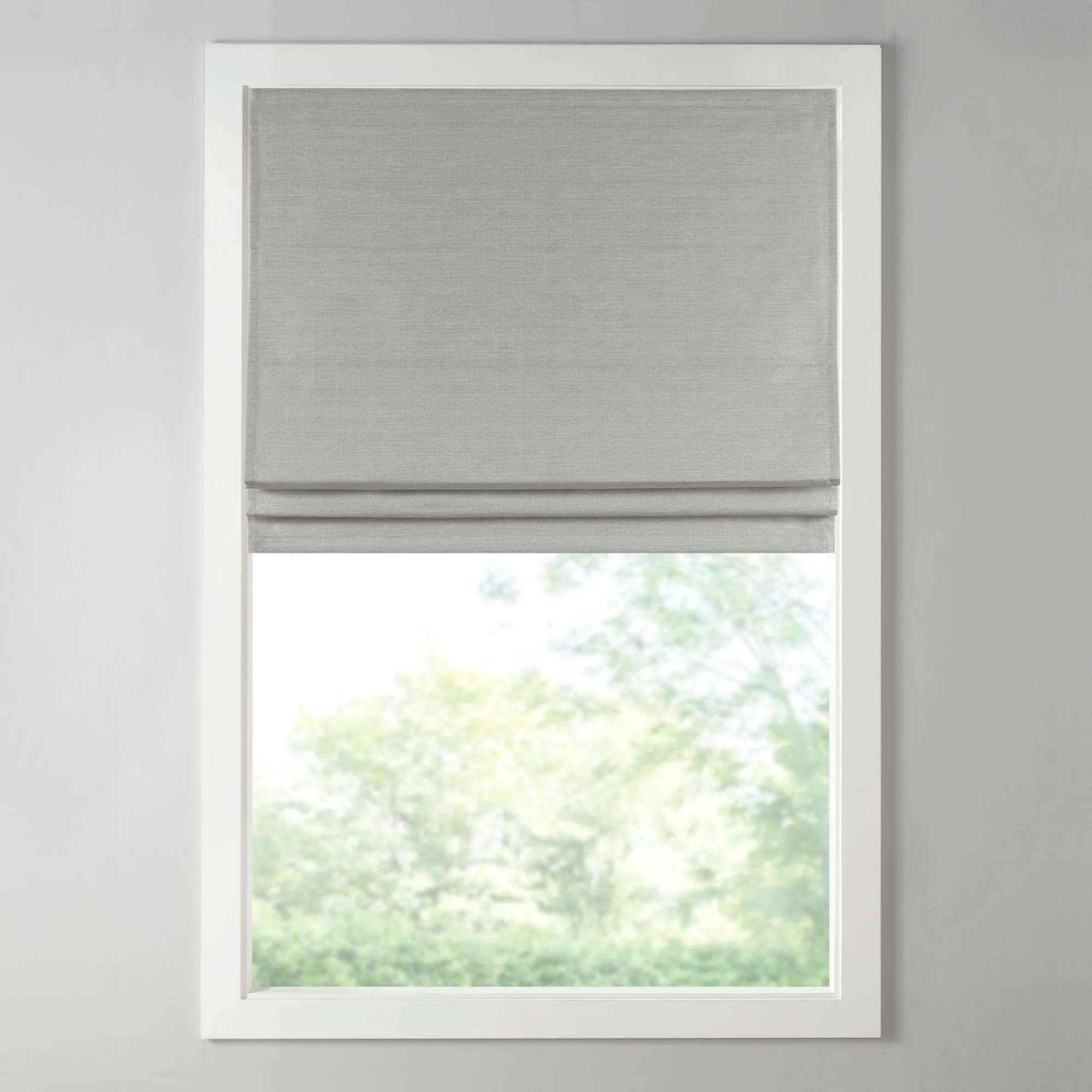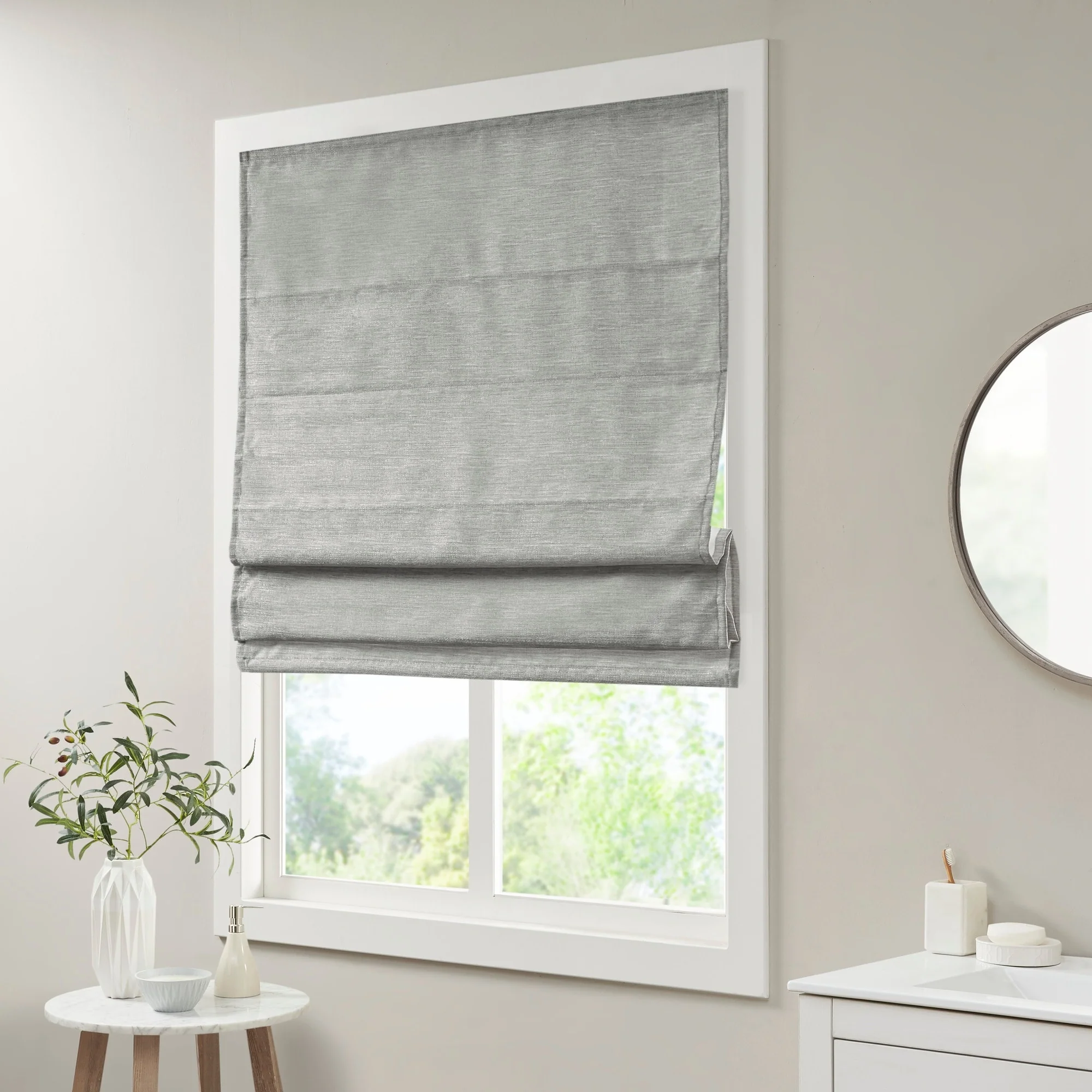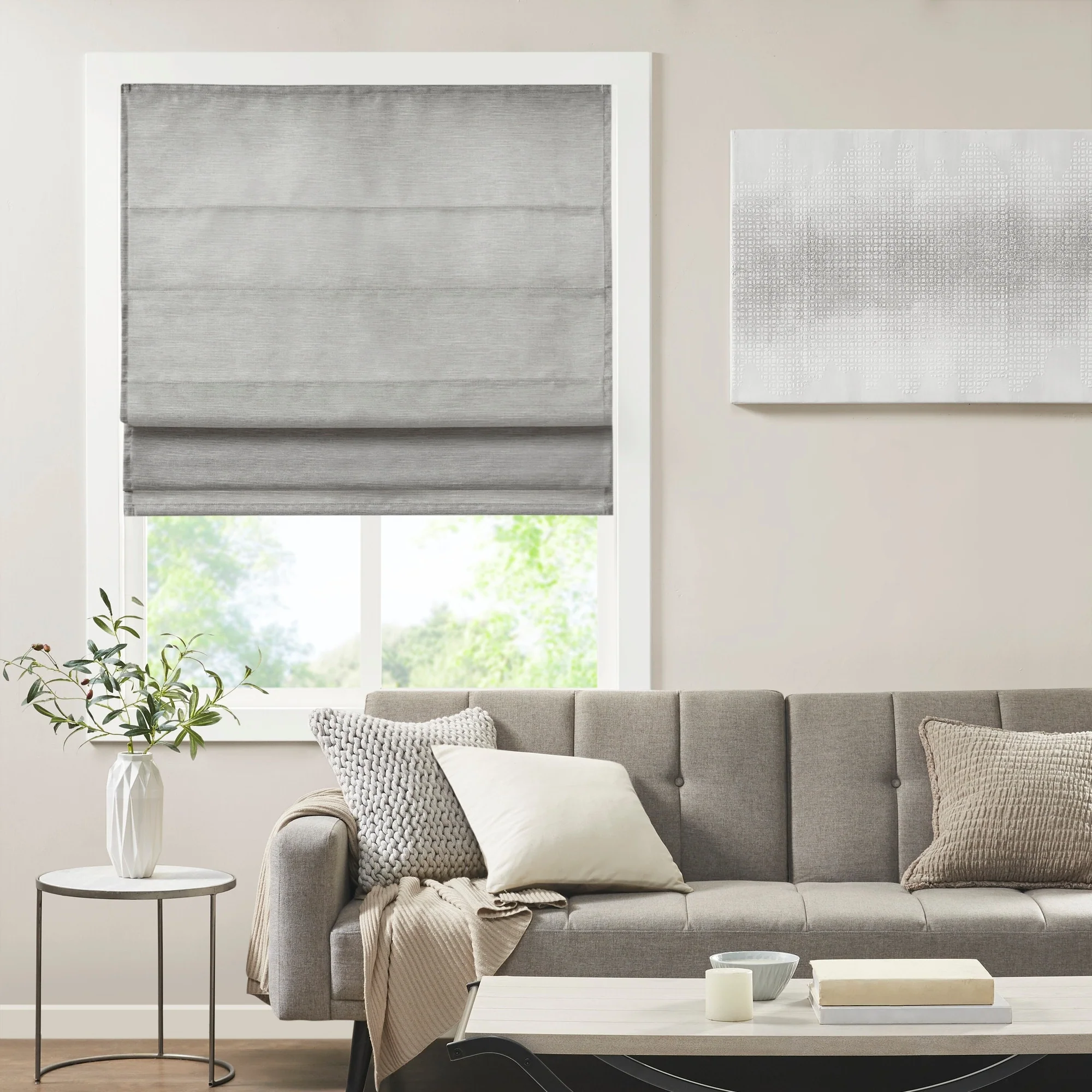 Our Madison Park Leighton Printed Faux Silk Room Darkening Cordless Roman Shade offers a modern and convenient update to your home decor. This roman shade flaunts a tonal color faux silk textured fabric to create a stylish and beautiful, look and feel. Also achieving the OEKO-TEX certification, these curtains do not contain any harmful substances or chemicals ensuring quality comfort and wellness. A thermal foambacking on the reverse provides energy efficiency and a room darkening effect, for enhanced privacy. The cordless retraction mechanism makes the room darkening shade easy to open and close the throughout the day, while the detachable fabric face allows for easier assembly and cleaning by lightly shaking or dusting. Please note: The top face fabric is detachable from the hook and loop fastener, but is NOT fully removable. Ready to install right out of the packaging, this roman shade can be hung inside or above the window pane allowing you to find the perfect fit for your home decor. Shade measures 64-inches long and comes in 5 width options to suit multiple standard window sizes. Each roman shade is sold as a single and comes with a printed instructional guide as well as an instructional video available on site. Assembly is required.