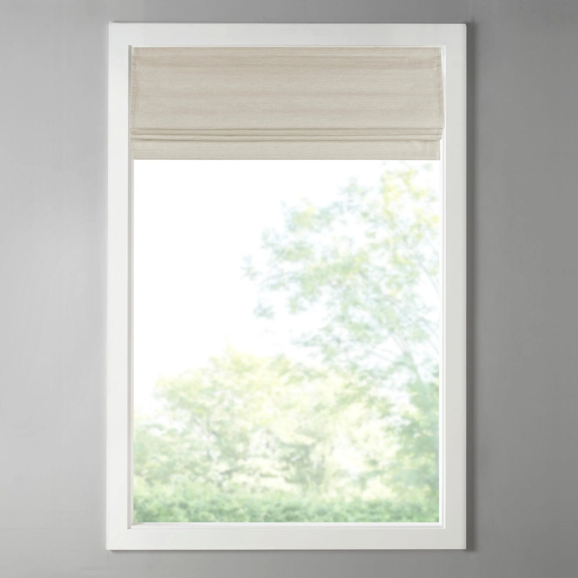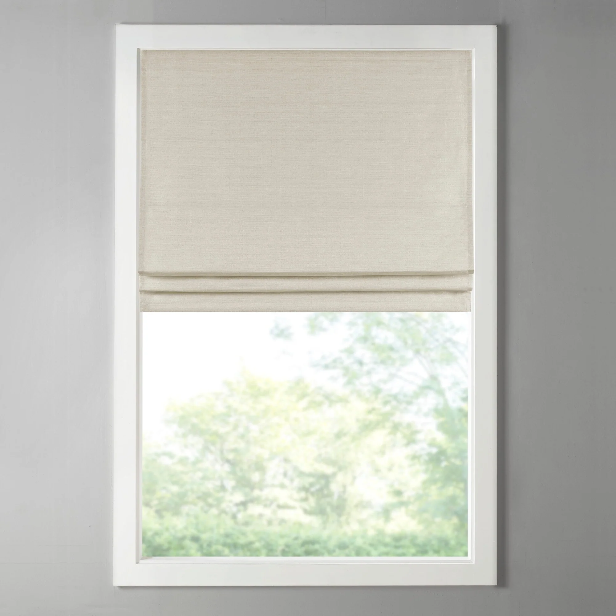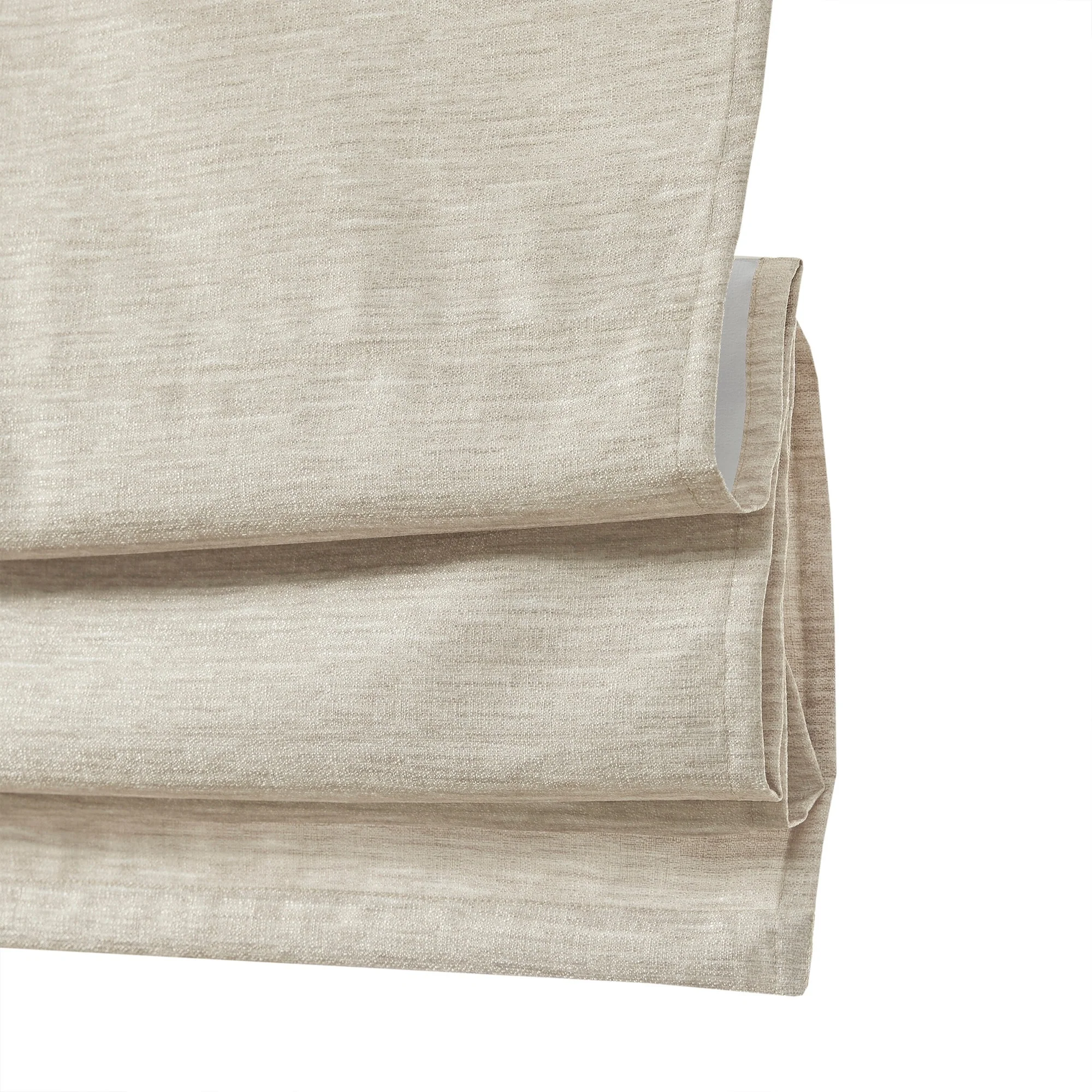 Our Madison Park Leighton Printed Faux Silk Room Darkening Cordless Roman Shade offers a modern and convenient update to your home decor. This roman shade flaunts a tonal color faux silk textured fabric to create a stylish and beautiful, look and feel. Also achieving the OEKO-TEX certification, these curtains do not contain any harmful substances or chemicals ensuring quality comfort and wellness. A thermal foambacking on the reverse provides energy efficiency and a room darkening effect, for enhanced privacy. The cordless retraction mechanism makes the room darkening shade easy to open and close the throughout the day, while the detachable fabric face allows for easier assembly and cleaning by lightly shaking or dusting. Please note: The top face fabric is detachable from the hook and loop fastener, but is NOT fully removable. Ready to install right out of the packaging, this roman shade can be hung inside or above the window pane allowing you to find the perfect fit for your home decor. Shade measures 64-inches long and comes in 5 width options to suit multiple standard window sizes. Each roman shade is sold as a single and comes with a printed instructional guide as well as an instructional video available on site. Assembly is required.
