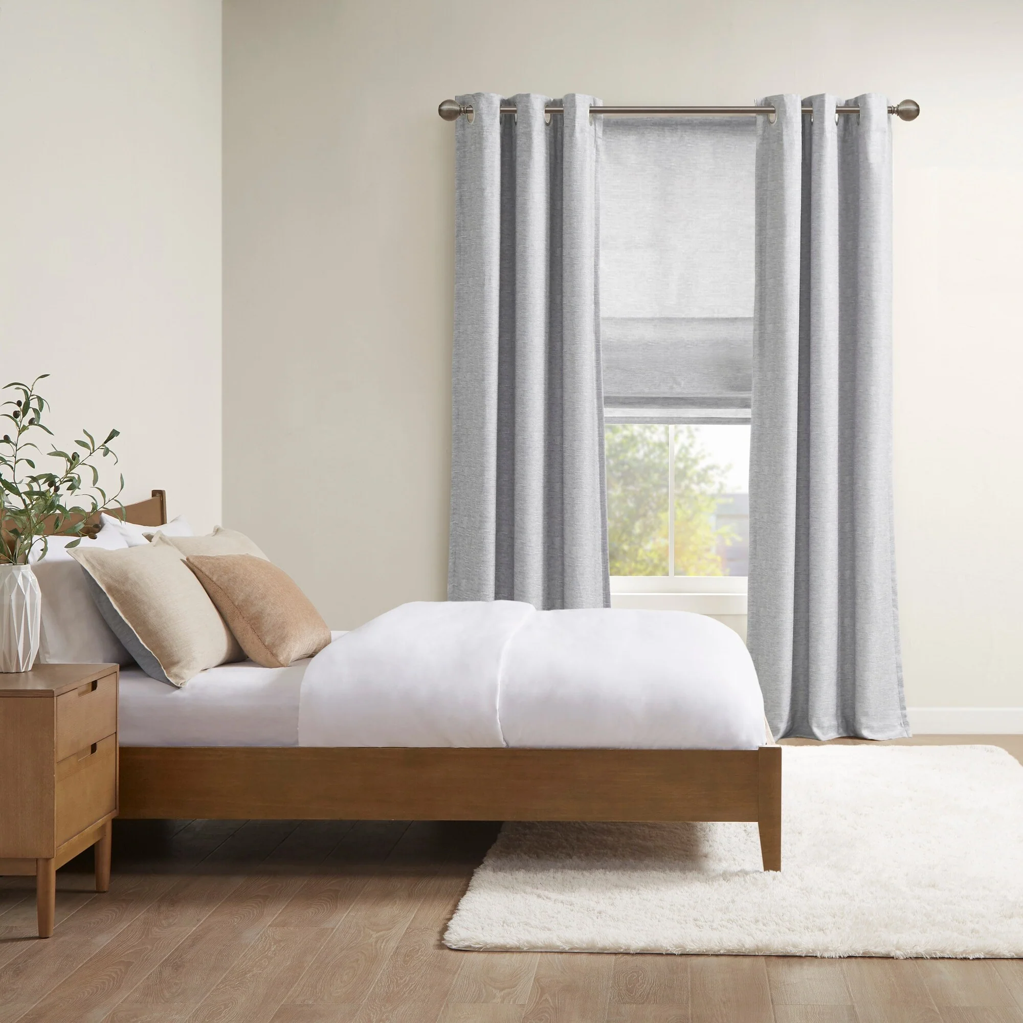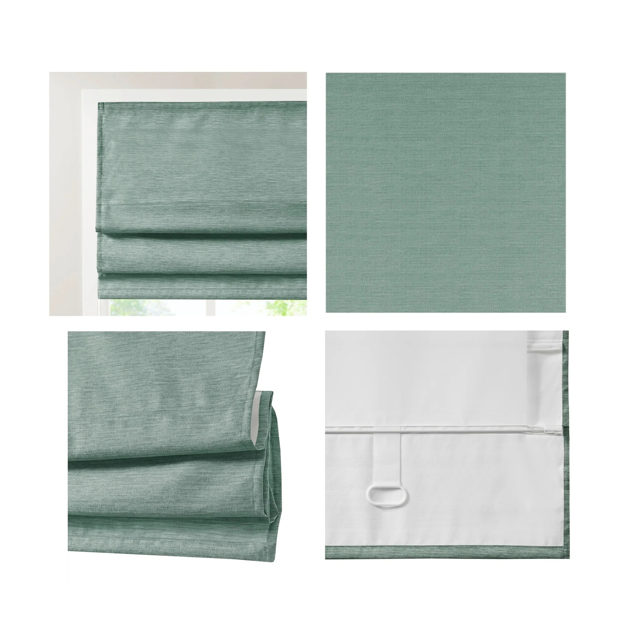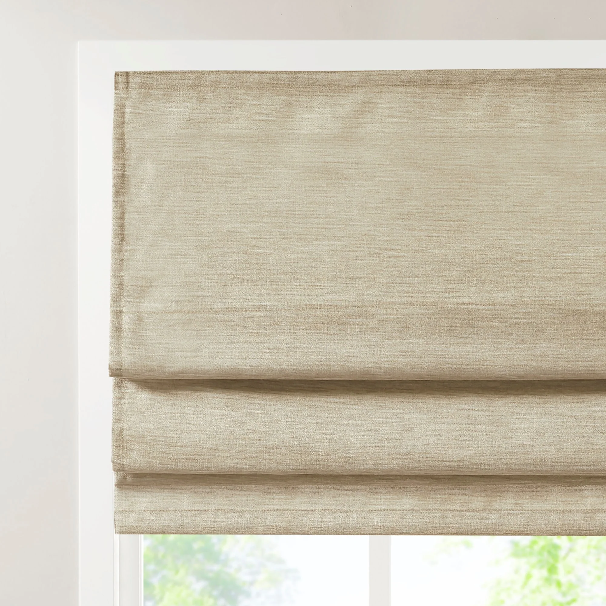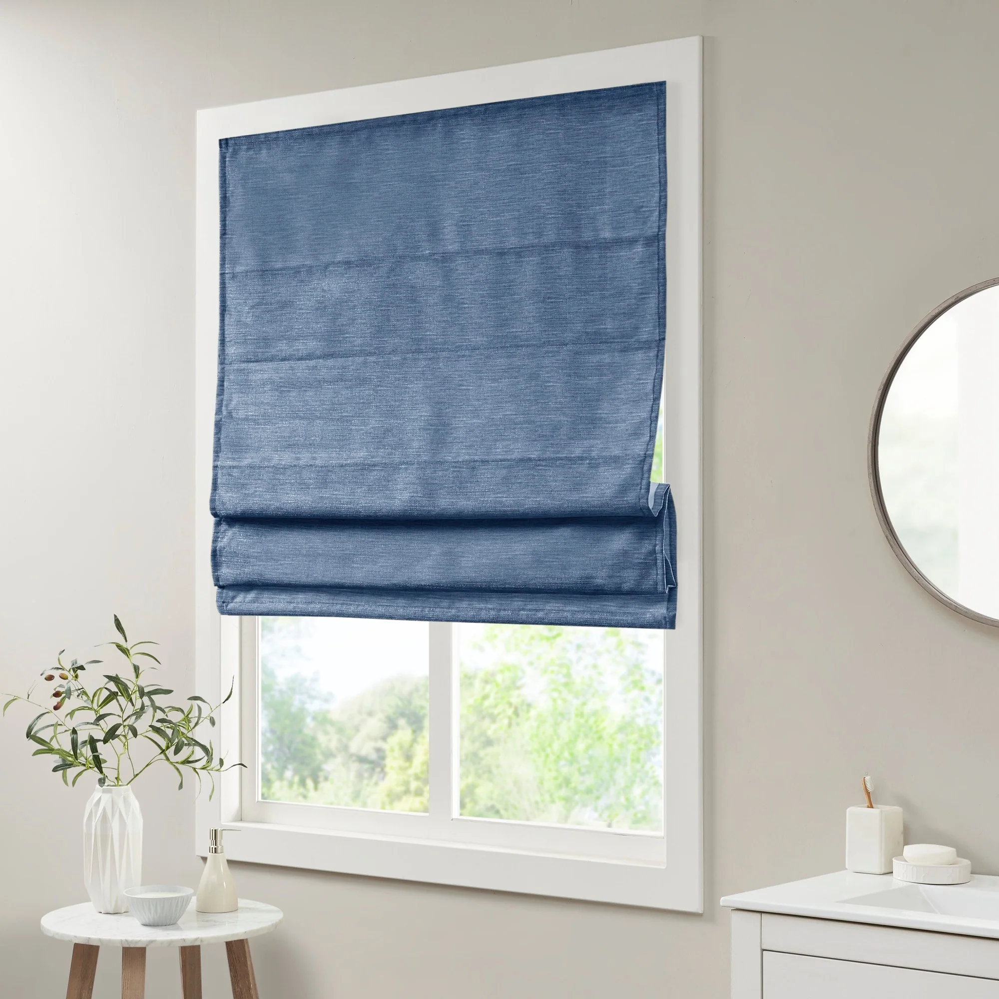 Our Madison Park Leighton Printed Faux Silk Room Darkening Cordless Roman Shade offers a modern and convenient update to your home decor. This roman shade flaunts a tonal color faux silk textured fabric to create a stylish and beautiful, look and feel. Also achieving the OEKO-TEX certification, these curtains do not contain any harmful substances or chemicals ensuring quality comfort and wellness. A thermal foambacking on the reverse provides energy efficiency and a room darkening effect, for enhanced privacy. The cordless retraction mechanism makes the room darkening shade easy to open and close the throughout the day, while the detachable fabric face allows for easier assembly and cleaning by lightly shaking or dusting. Please note: The top face fabric is detachable from the hook and loop fastener, but is NOT fully removable. Ready to install right out of the packaging, this roman shade can be hung inside or above the window pane allowing you to find the perfect fit for your home decor. Shade measures 64-inches long and comes in 5 width options to suit multiple standard window sizes. Each roman shade is sold as a single and comes with a printed instructional guide as well as an instructional video available on site. Assembly is required.