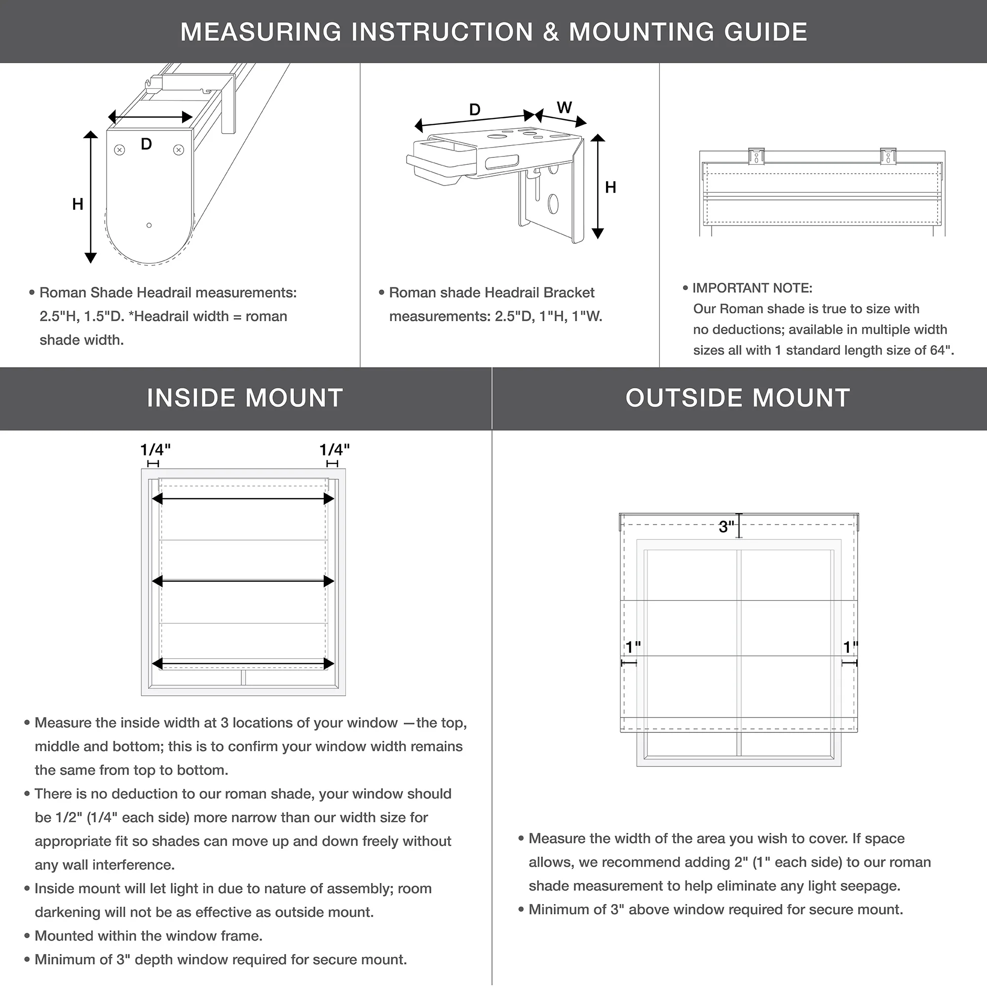 - Inside mount: please choose 0.5 inch narrower than your actual window width for full coverage and minimal wall interference; minimum of 3 inches depth window required