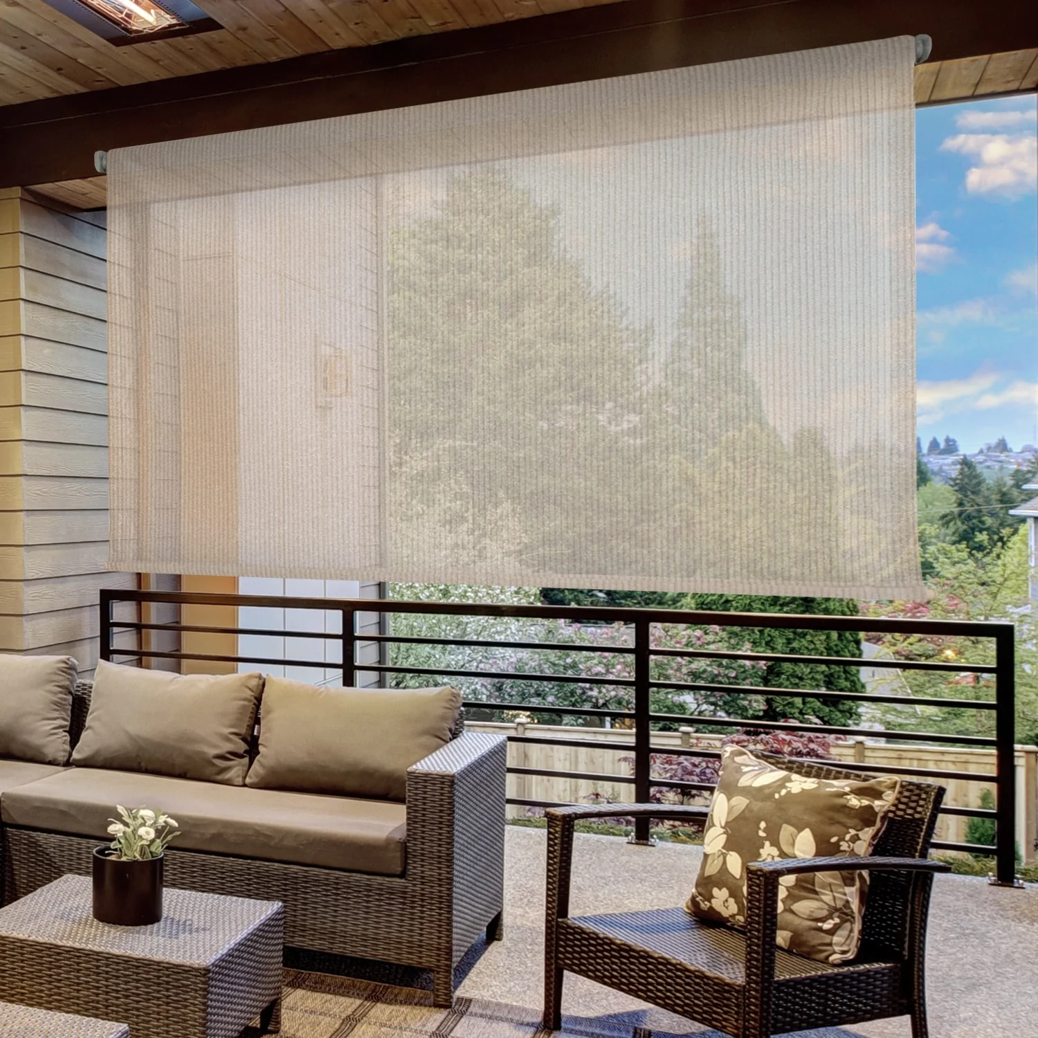 Create a comfortable outdoor space with the Noble Shades Cordless Outdoor Sun Shade. Made with durable high-density polyethylene fabric and sturdy aluminum, this shade blocks up to 89% of UV rays, while still allowing you to enjoy the view. The hand-crank system allows for easy operation and the shade can be mounted on the wall or ceiling for added flexibility. Available in various widths and colors, this shade is perfect for any outdoor oasis.