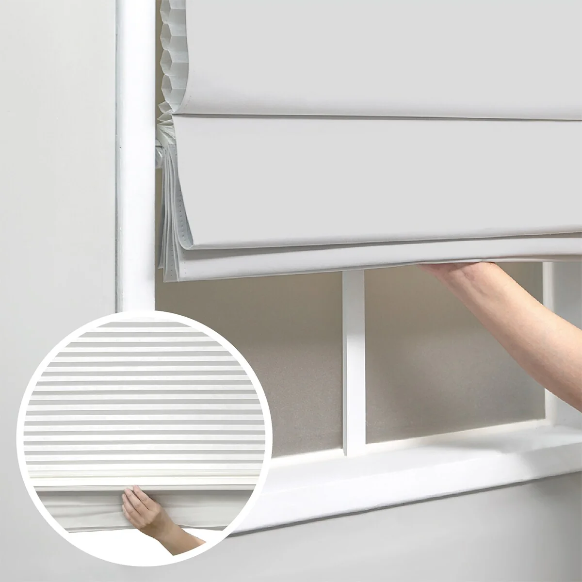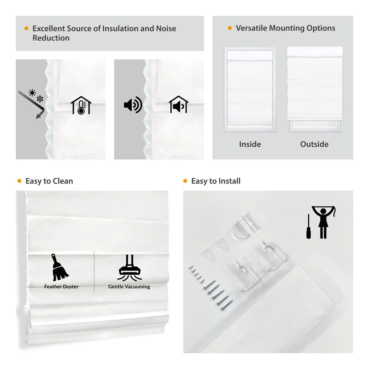 The Insulating Cordless Roman Shade is an attractive and durable window treatment with energy efficient properties. This modern design gives you two shades in one with no visible cords and a beautiful uniform look from the outside. A Roman shade is suitable for formal or casual rooms where you need excellent blackout, added insulation, and a touch of elegance. It is easy to adjust by simply holding the bottom rail and then gently raising or lowering the shade by hand. The Cordless Roman Shade is made of 100% fine cotton in five popular colors including white, khaki, chocolate, navy, and gray, and made to fit most standard windows. Roman shades are a classic option to standard window blinds. Our window blinds and shades have been tested to offer safe solutions for homes and facilities where young children and pets are present.