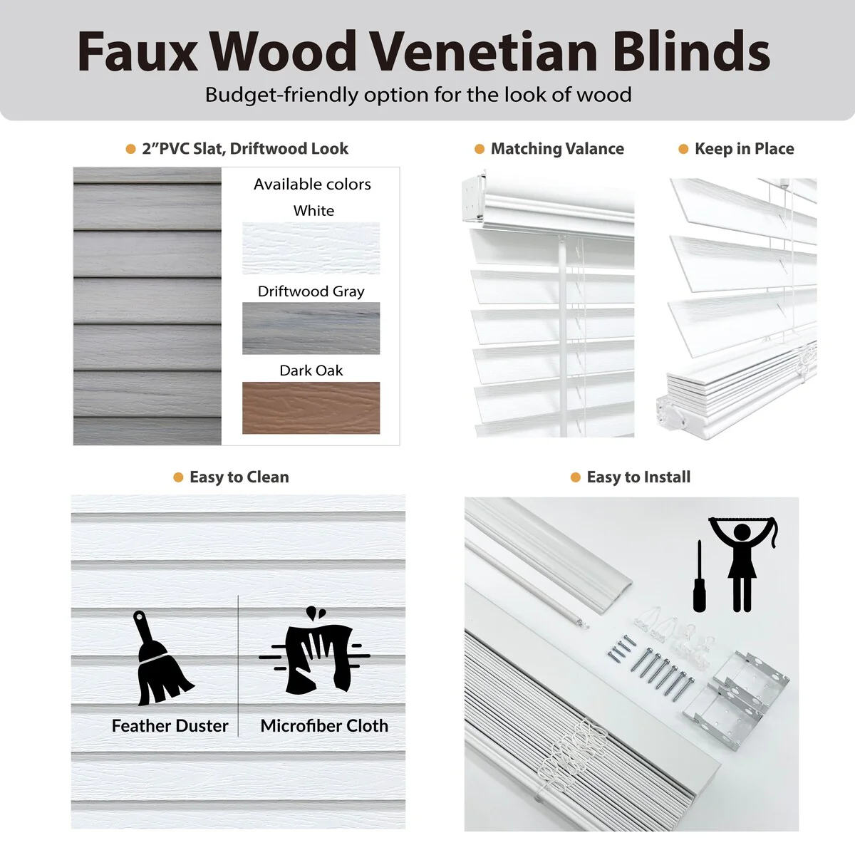 - 2-inch slat design for a modern look