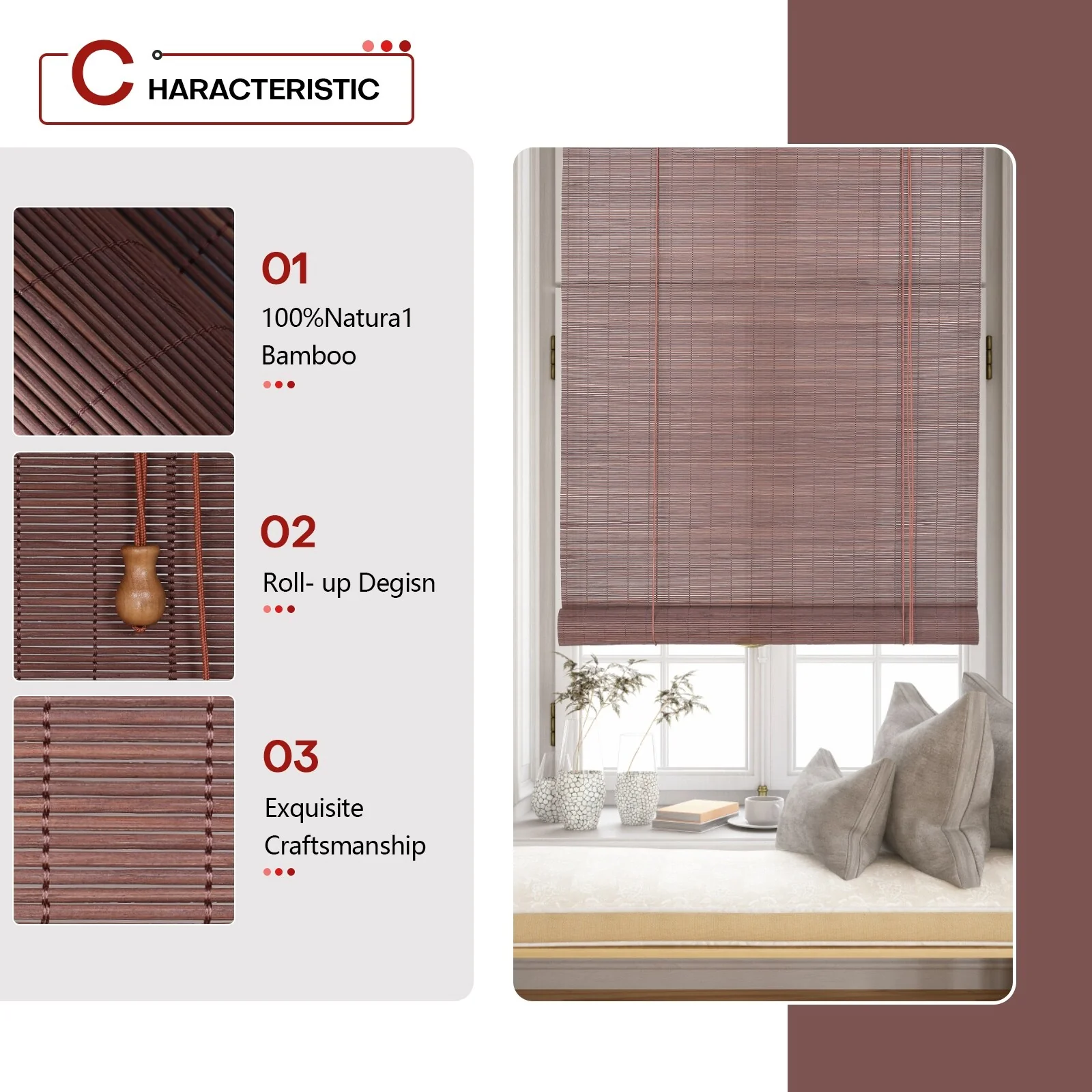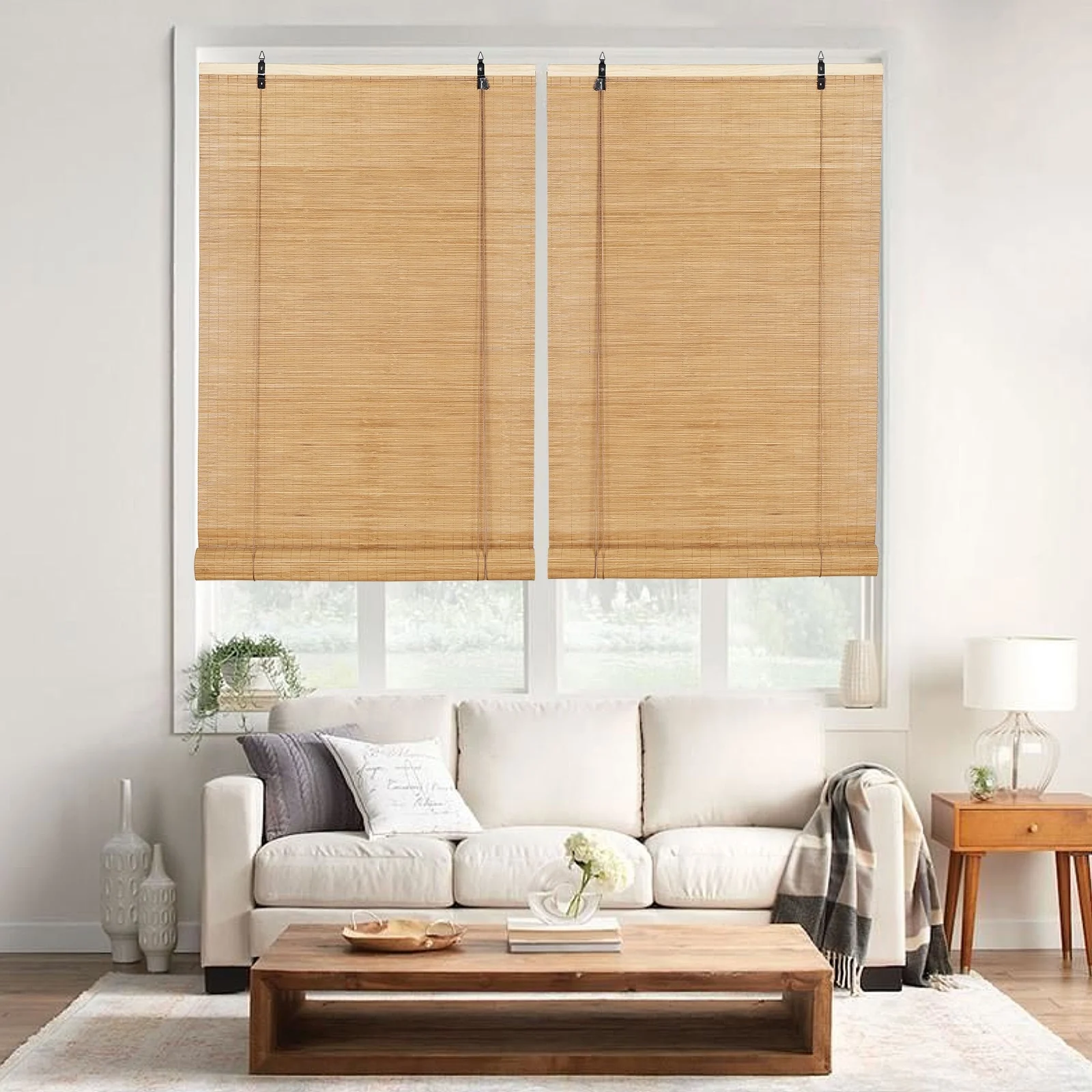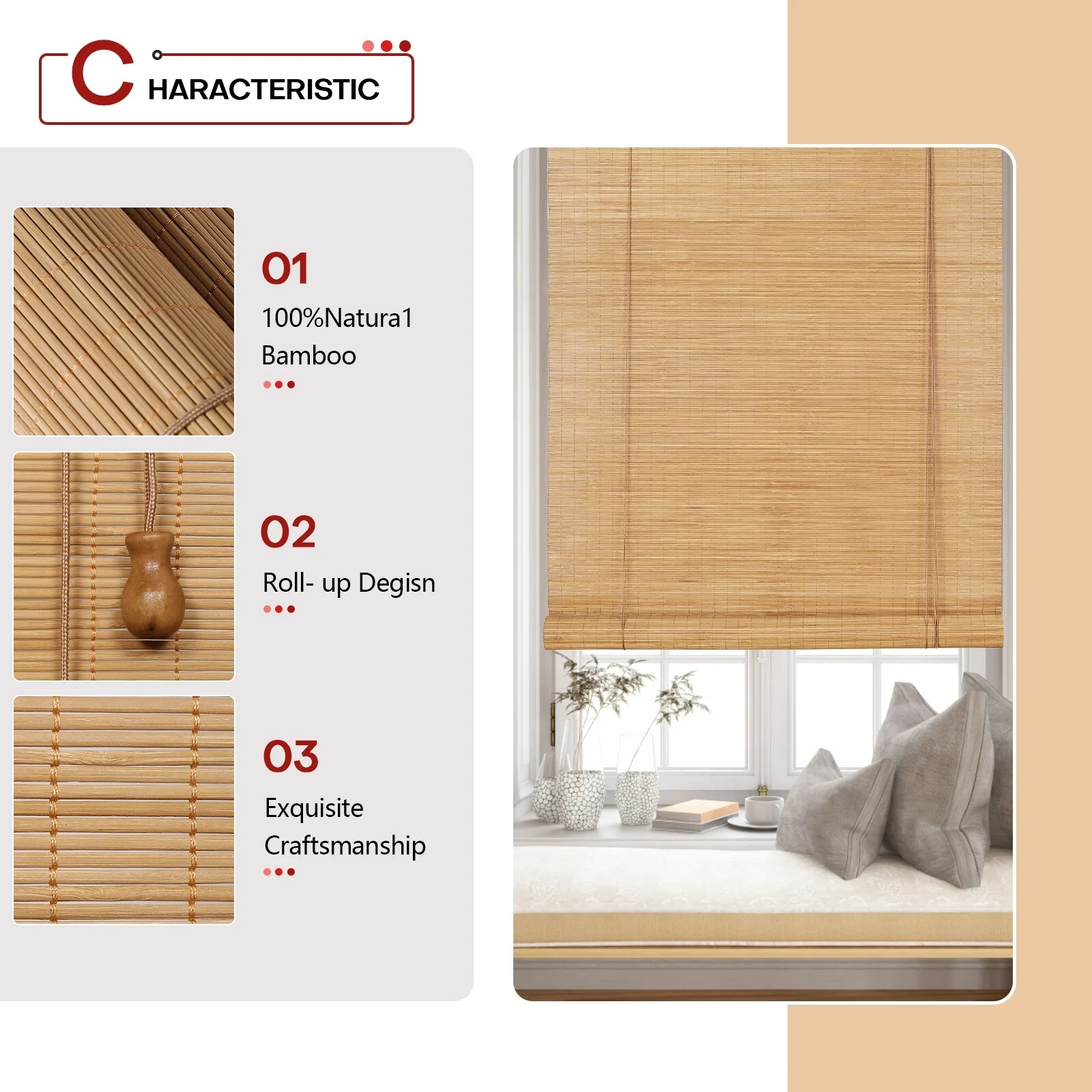 The versatile design of our Bamboo Roman Shade allows for effortless integration into various decor styles, from modern to rustic and everything in between. Its neutral tones complement any color scheme, providing a harmonious backdrop for your interior design vision.Beyond its aesthetic appeal, our Bamboo Roman Shade offers remarkable functionality. The smooth lifting system ensures seamless operation, allowing you to effortlessly raise or lower the shade to suit your needs.In addition to its practical features, our Bamboo Roman Shade also offers excellent insulation properties. The natural bamboo material helps to regulate temperature, keeping your space cool in the summer and warm in the winter.