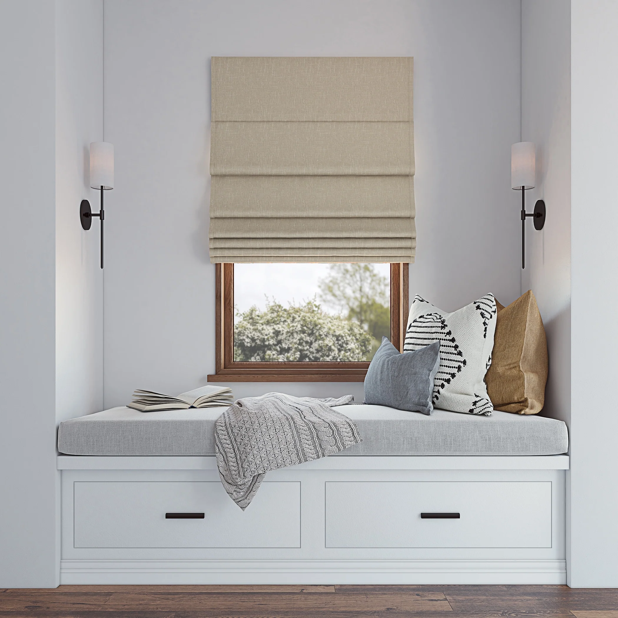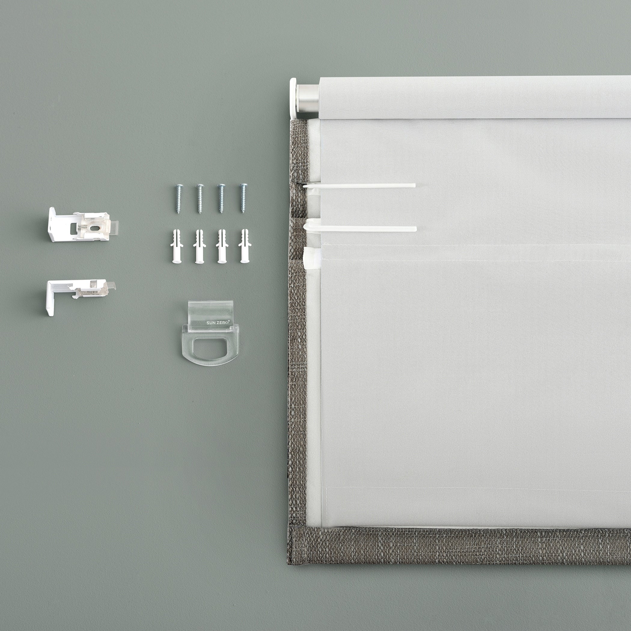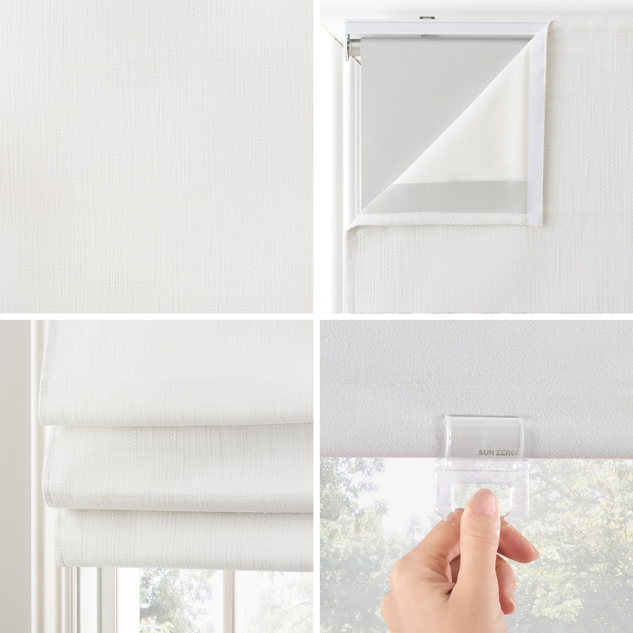 Featuring a subtle linen-like textured fabric, Sun Zero Pryer Textureds add sophisticated style and function to windows in any room for your home. Sun Zero Total Blackout technology is laboratory tested to block out 100% of light, reduce outside noise by up to 50%, and decrease energy lost through your windows by up to 45%. Comfort is optimized with thermal properties that help keep summer heat and winter chill out of your home. Best for Kids Certified cordless design with included handle pull for easy adjustment. Use in your entertainment room to eliminate screen glare and reduce distracting outside noise, or in your bedroom for enhanced privacy and a sounder, more uninterrupted sleep. Mounting hardware included for inside or outside mount as desired.