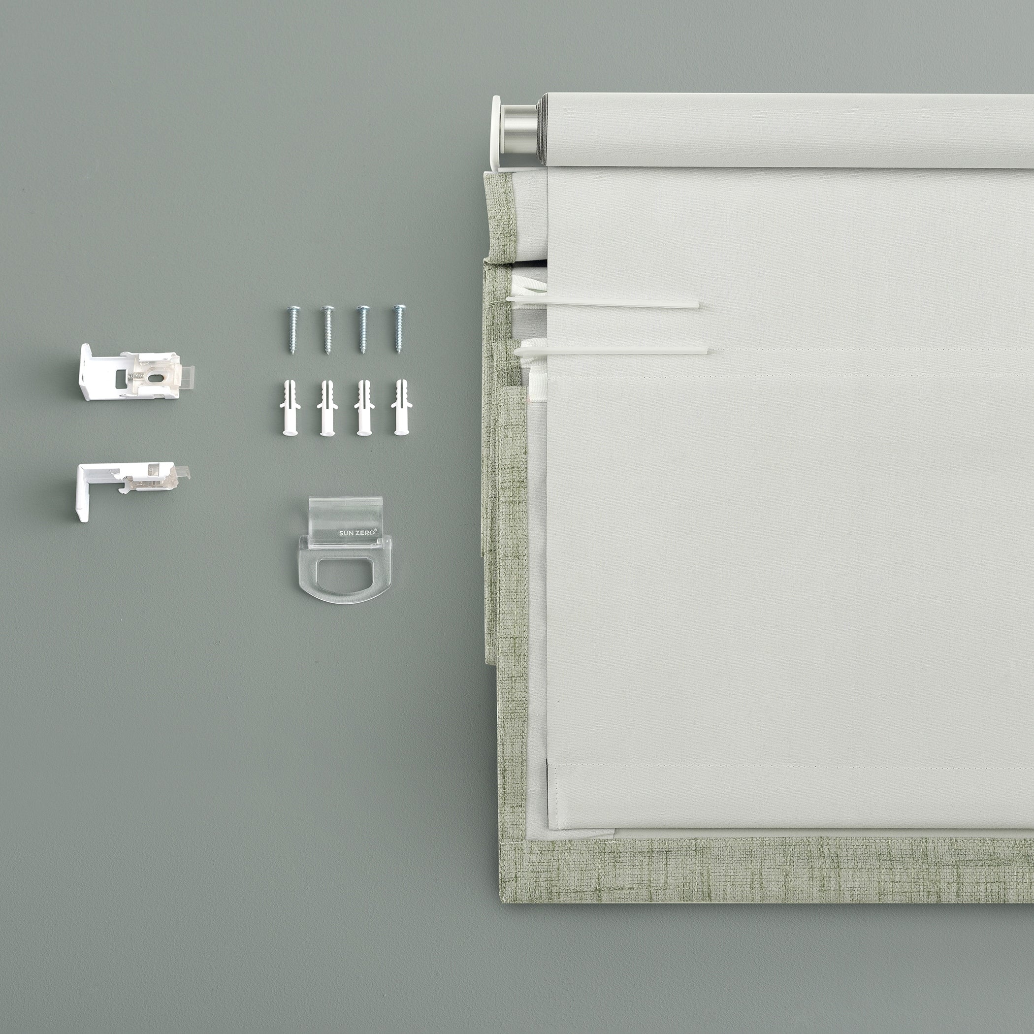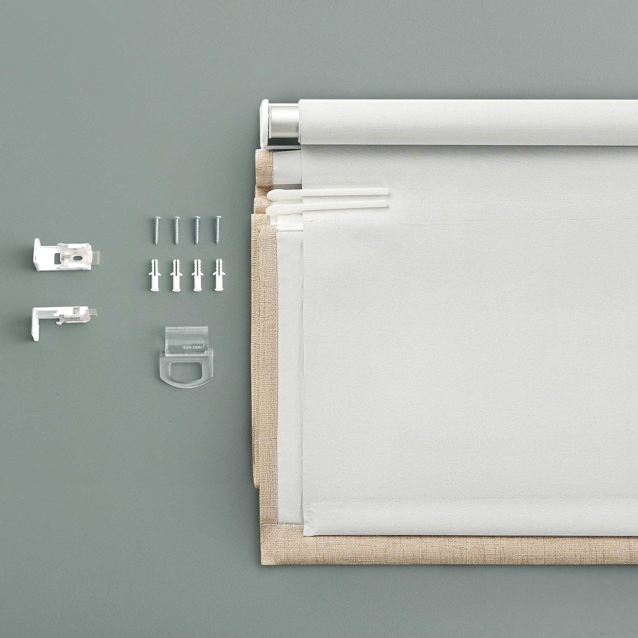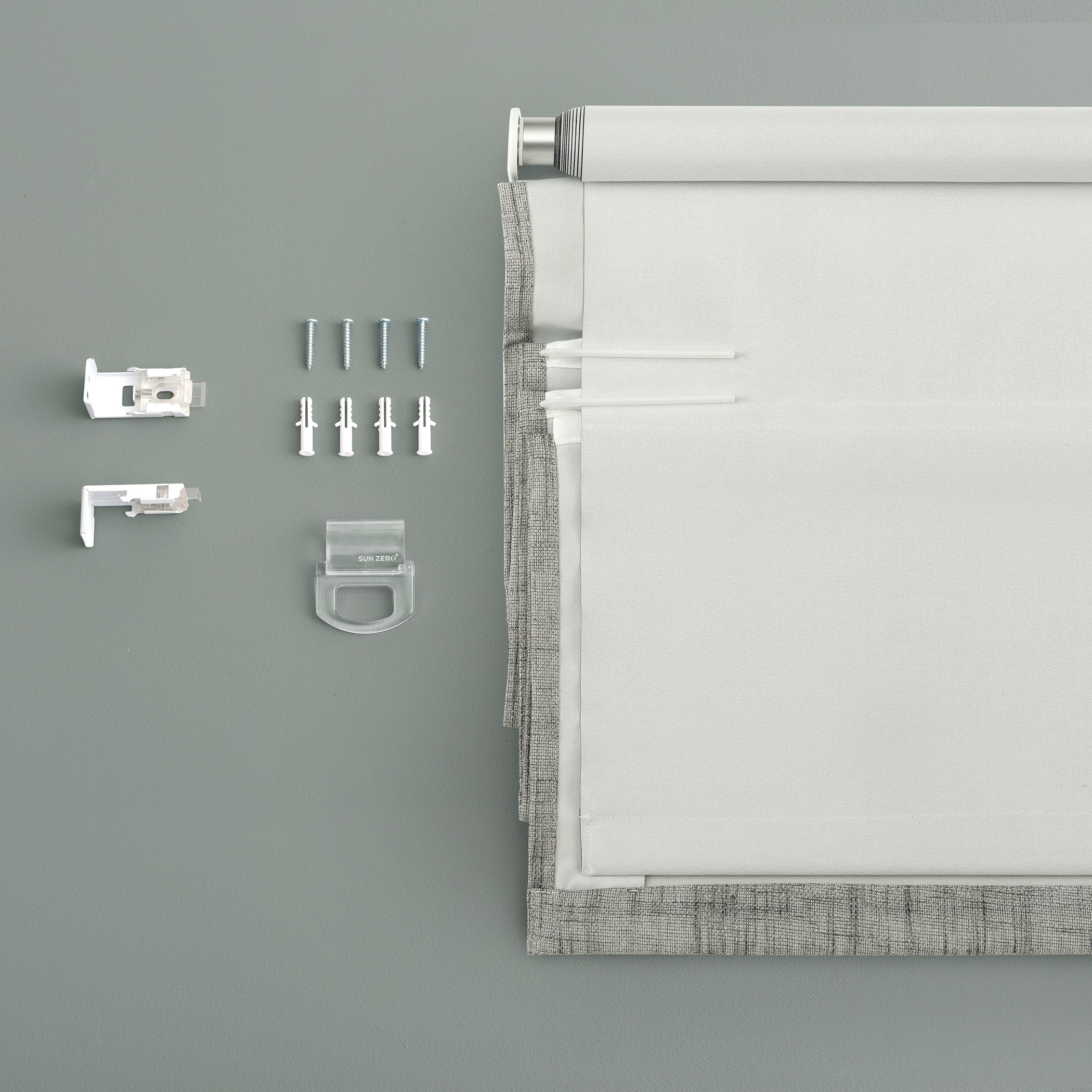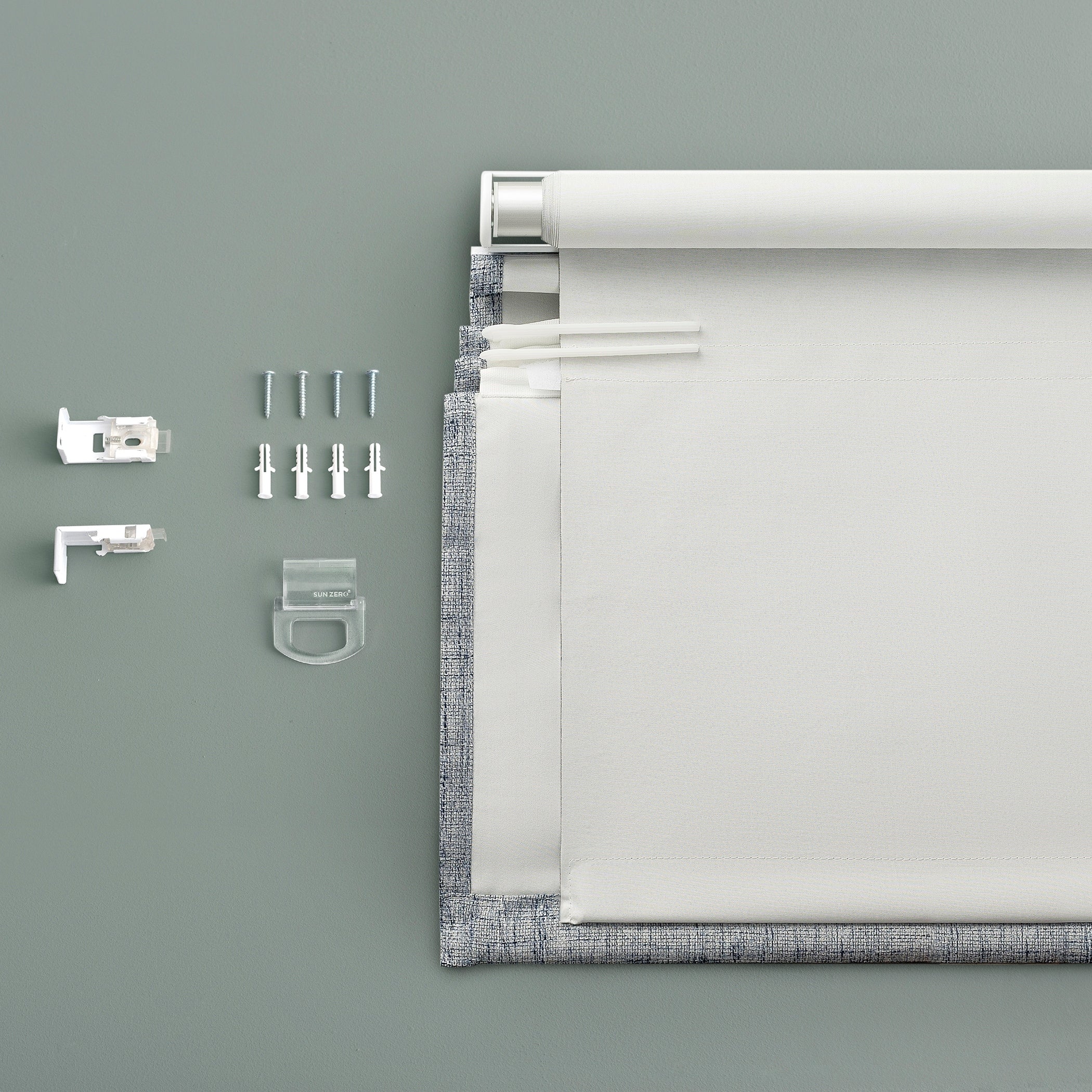 Featuring a subtle crosshatch textured fabric, Sun Zero Somerton Textureds add sophisticated style and function to windows in any room for your home. Sun Zero Total Blackout technology is laboratory tested to block out 100% of light, reduce outside noise by up to 50%, and decrease energy lost through your windows by up to 45%. Comfort is optimized with thermal properties that help keep summer heat and winter chill out of your home. Best for Kids Certified cordless design with included handle pull for easy adjustment. Use in your entertainment room to eliminate screen glare and reduce distracting outside noise, or in your bedroom for enhanced privacy and a sounder, more uninterrupted sleep. Mounting hardware included for inside or outside mount as desired.