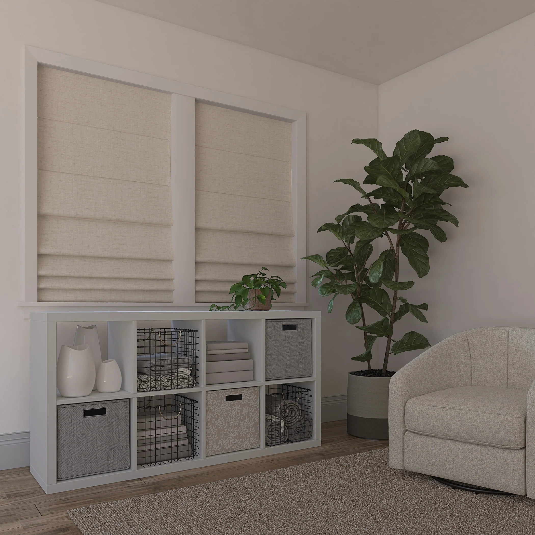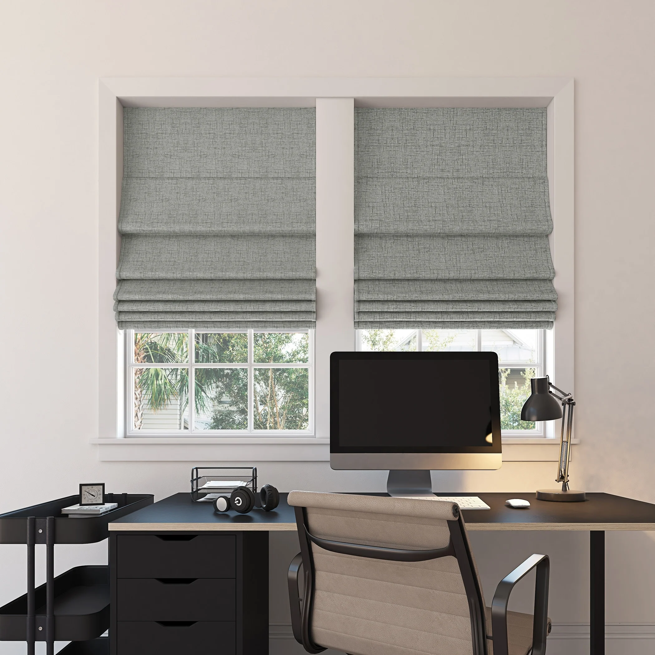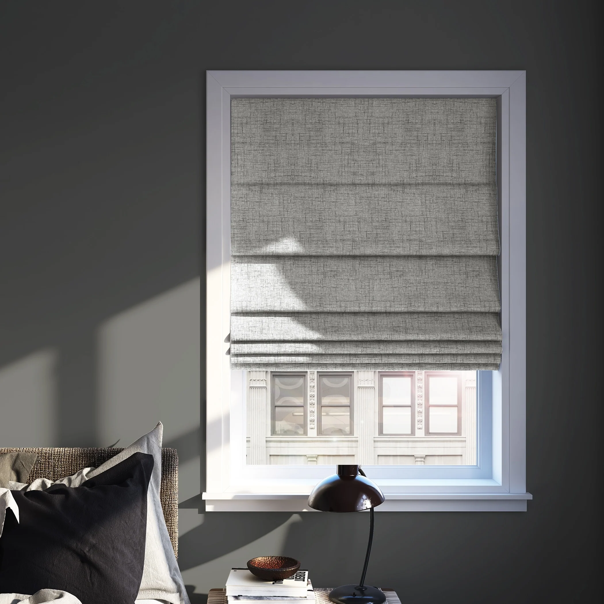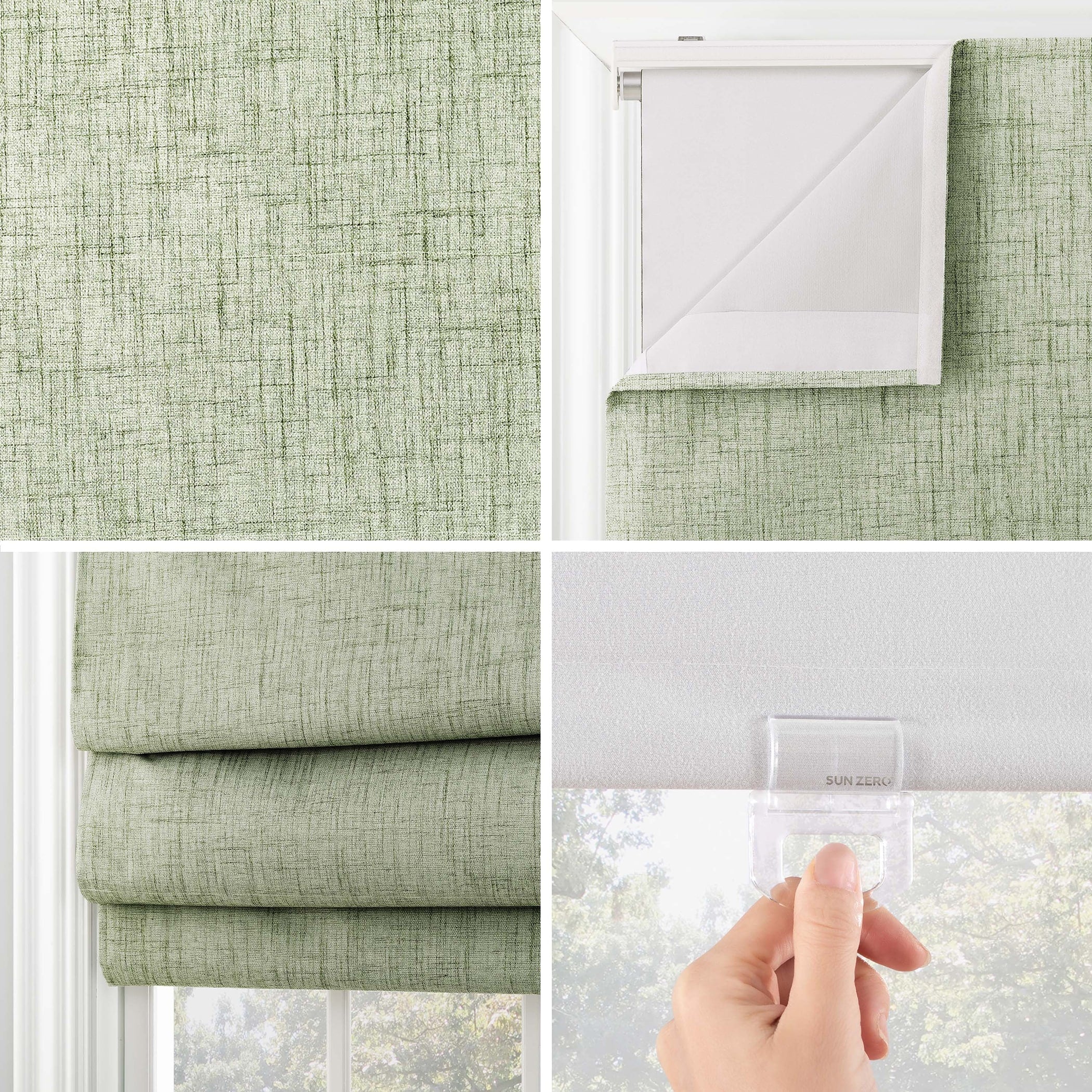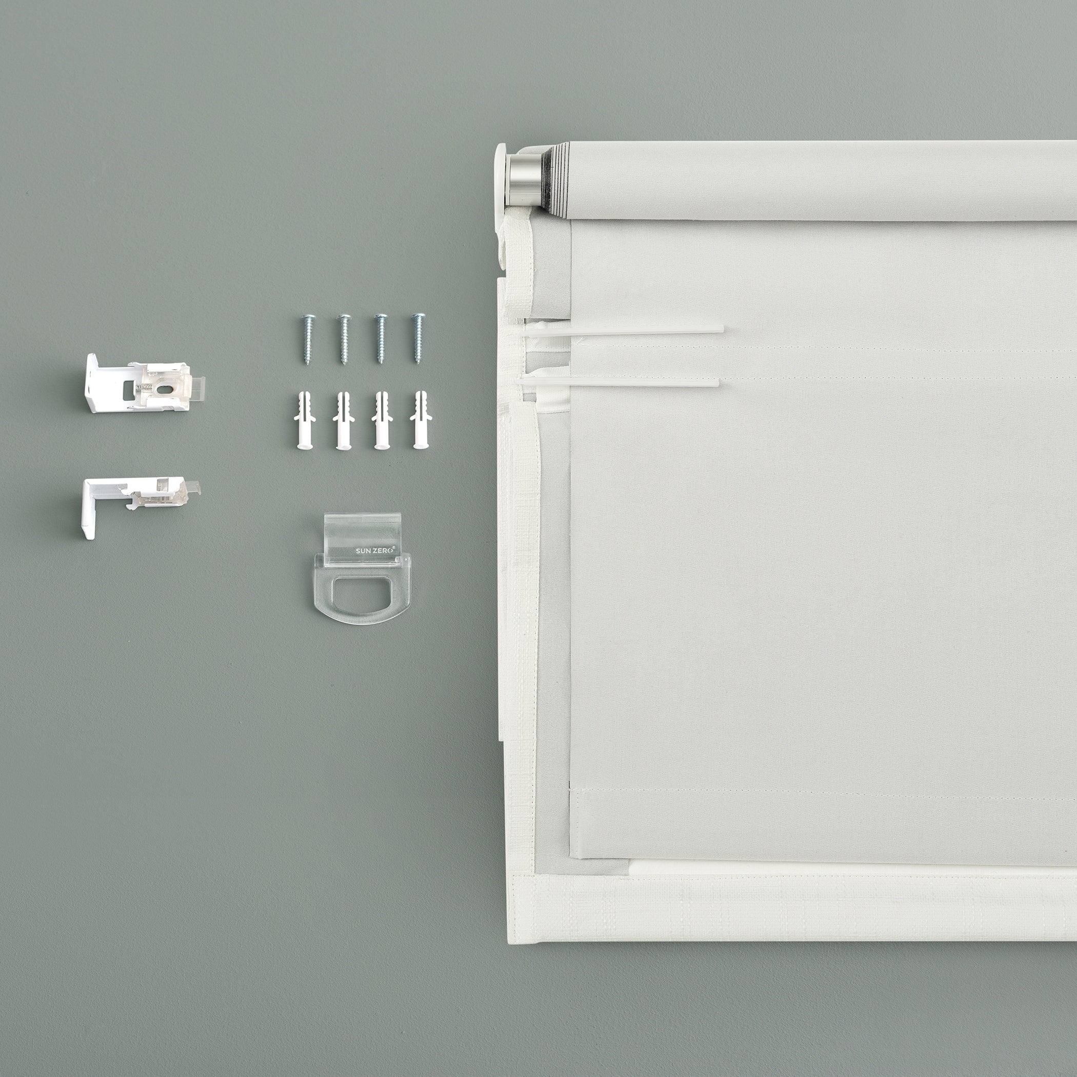 Featuring a subtle crosshatch textured fabric, Sun Zero Somerton Textureds add sophisticated style and function to windows in any room for your home. Sun Zero Total Blackout technology is laboratory tested to block out 100% of light, reduce outside noise by up to 50%, and decrease energy lost through your windows by up to 45%. Comfort is optimized with thermal properties that help keep summer heat and winter chill out of your home. Best for Kids Certified cordless design with included handle pull for easy adjustment. Use in your entertainment room to eliminate screen glare and reduce distracting outside noise, or in your bedroom for enhanced privacy and a sounder, more uninterrupted sleep. Mounting hardware included for inside or outside mount as desired.