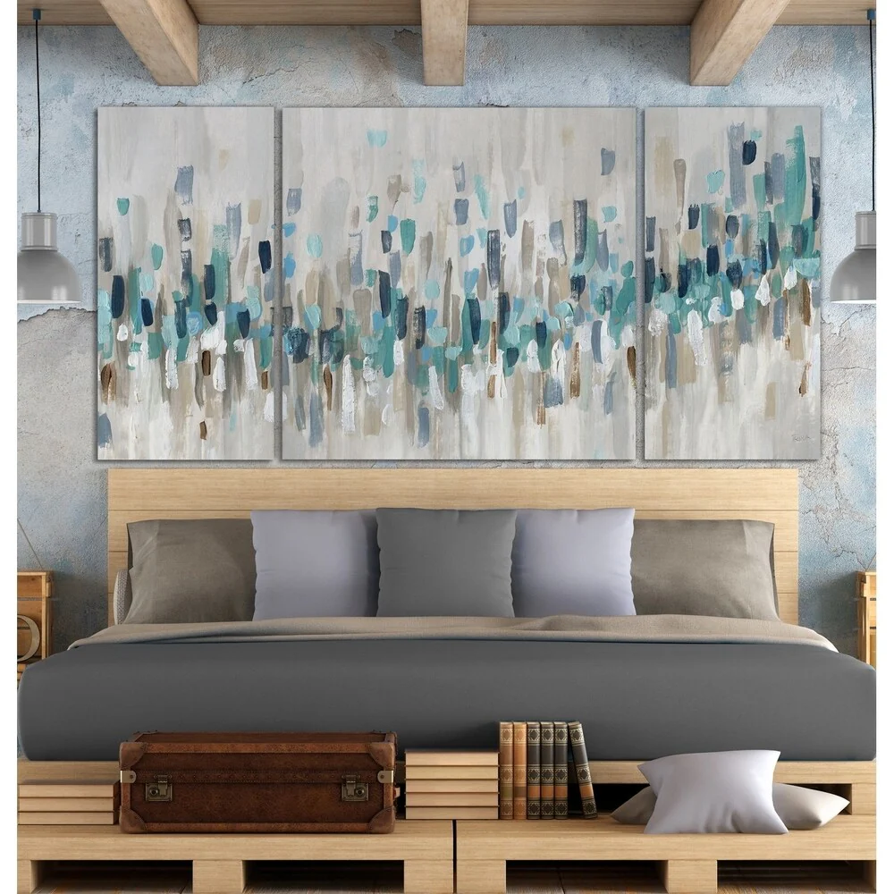 Add a touch of tranquility to your living space with 'Blue Staccato', a premium wall art set featuring vertical splashes of calming blue and grey tones. Perfectly balancing modernity with tradition, this three-panel art set utilizes Giclee ink technology for printing vibrant colors on hand-wrapped canvas, making it a stunning centerpiece for any room.