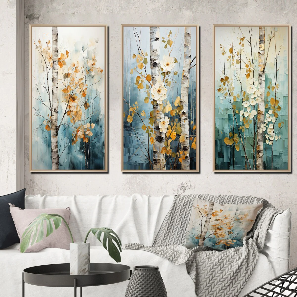 - Subject : Tree Birch Canvas Set Of 2; Floral Wall Set Decor