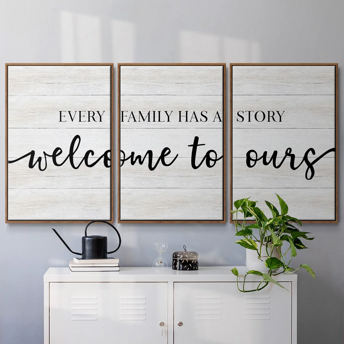 Family Story Framed Premium Gallery Wrapped Canvas A hand stretched Canvas mounted in a 2'' Thick Floater Frame3 SIZES AVAILABLEOverall Size - 17x25 each pieceOverall Size - 25x37 each pieceOverall Size - 27x41 each pieceEach piece is made to order.Built to LastEach piece comes ready to hangSolid stretcherSolid FrameFade and Water resistantMade domestically.
