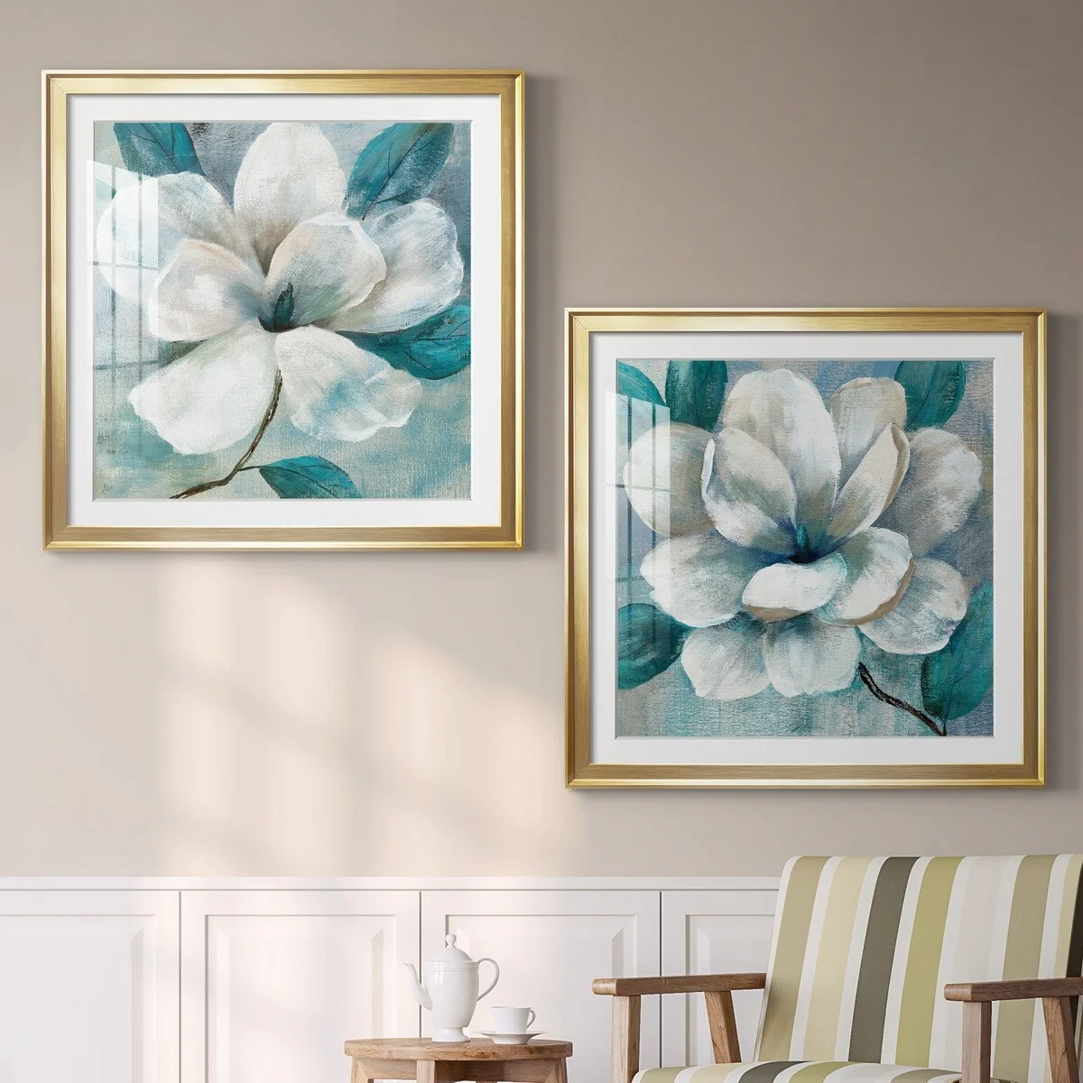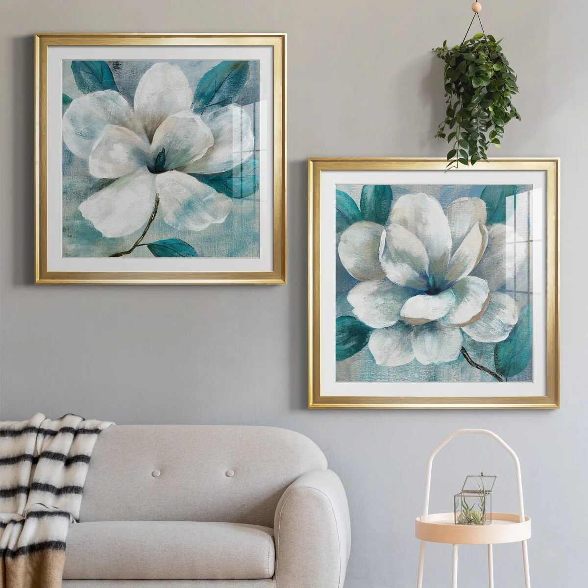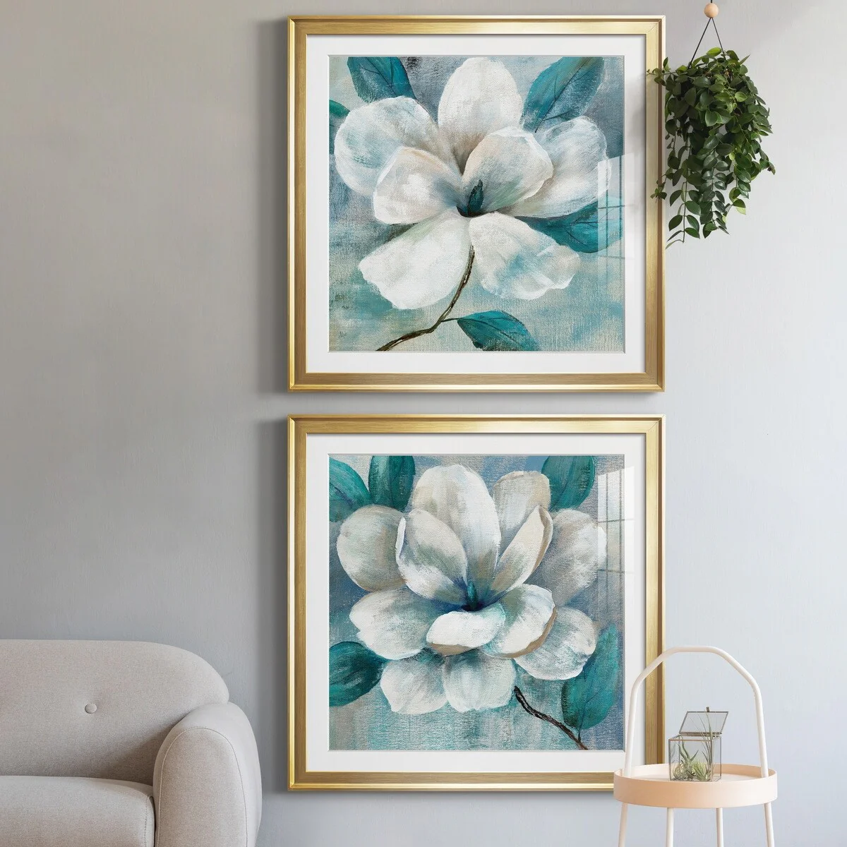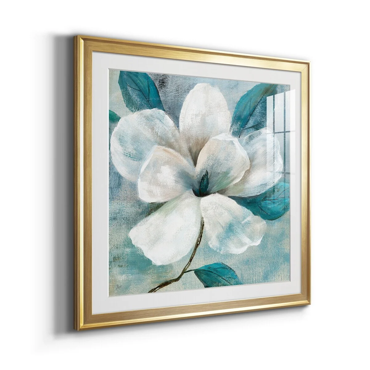 Teal Magnolia I Premium Framed Print - Ready to Hang A Premium Framed Print created to last.Framed in distressed wood and available in an array of sizes and colorsFeaturing a beveled a solid wood stretcher bar, each piece comes ready to hand4 SIZES AVAILABLE34.5''X34.5'' - Overall Size30.5'X30.5'' - Overall Size26.5''x26.5'' - Overall Size22''x22'' - Overall Size18.5''x18.5'' - Overall SizeEach piece is made to order.Each piece comes with hanging hardware.Made in the USAReady to HangGiclee Paper PrintAcrylic GlassBeveled Matt Board